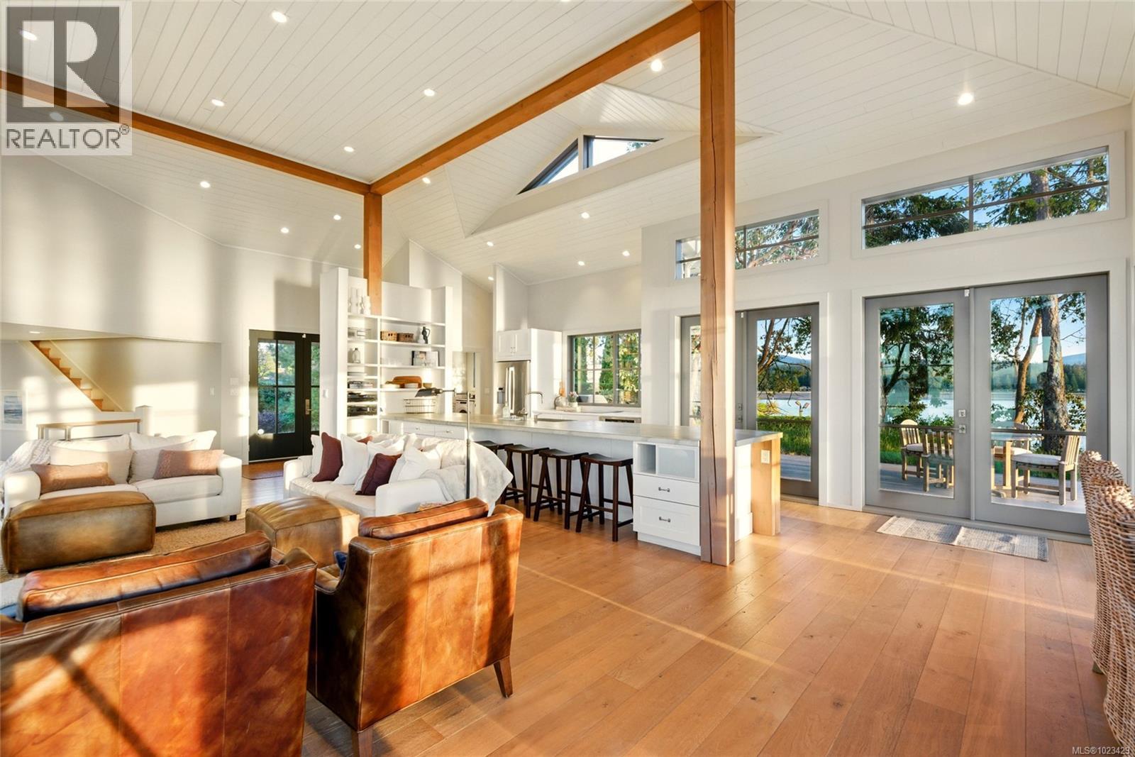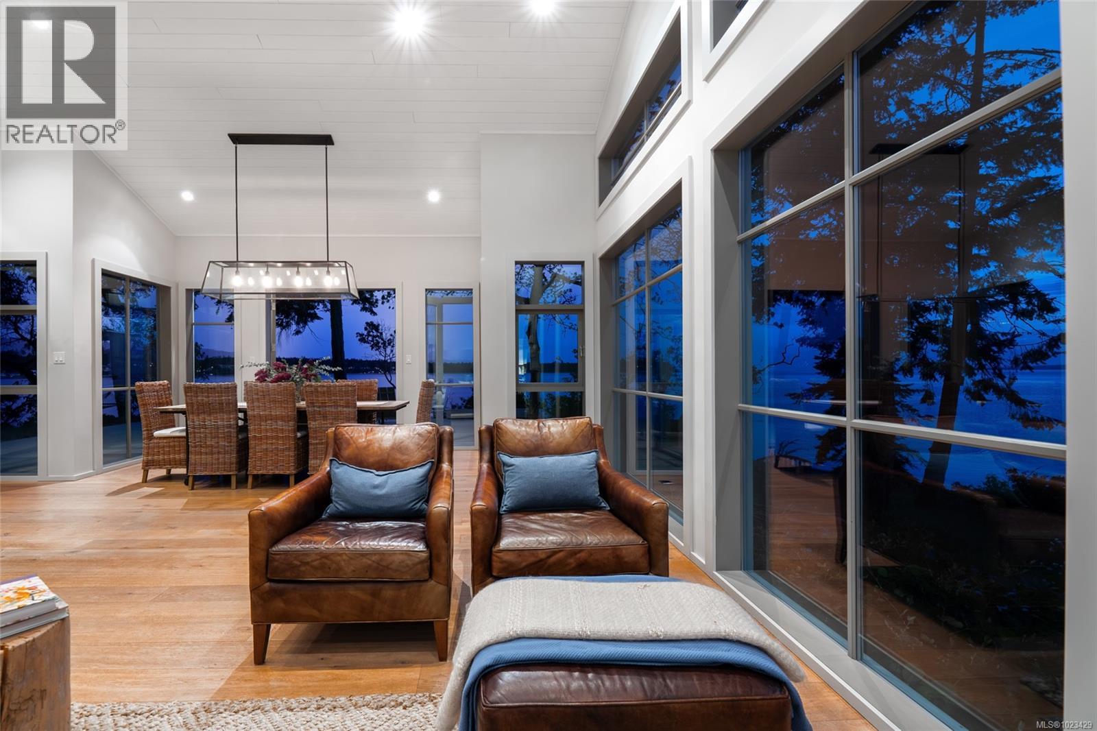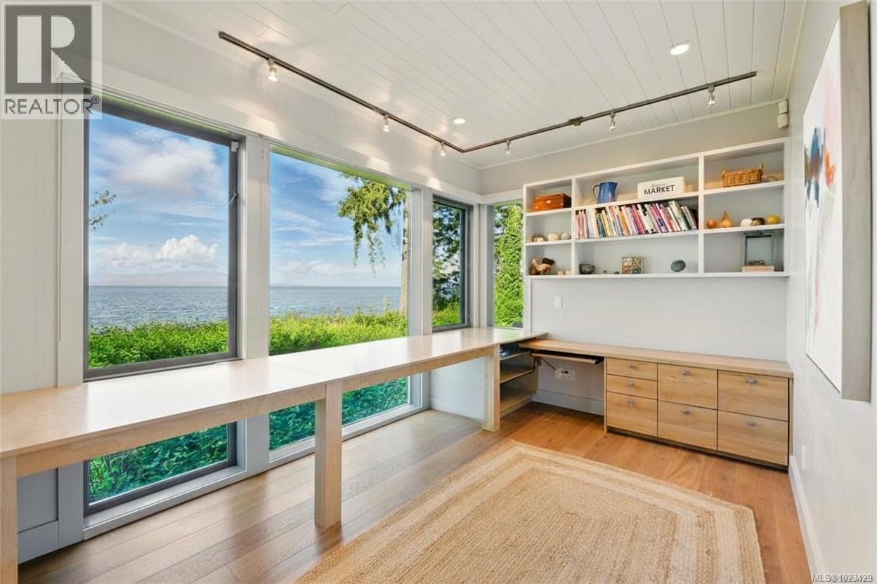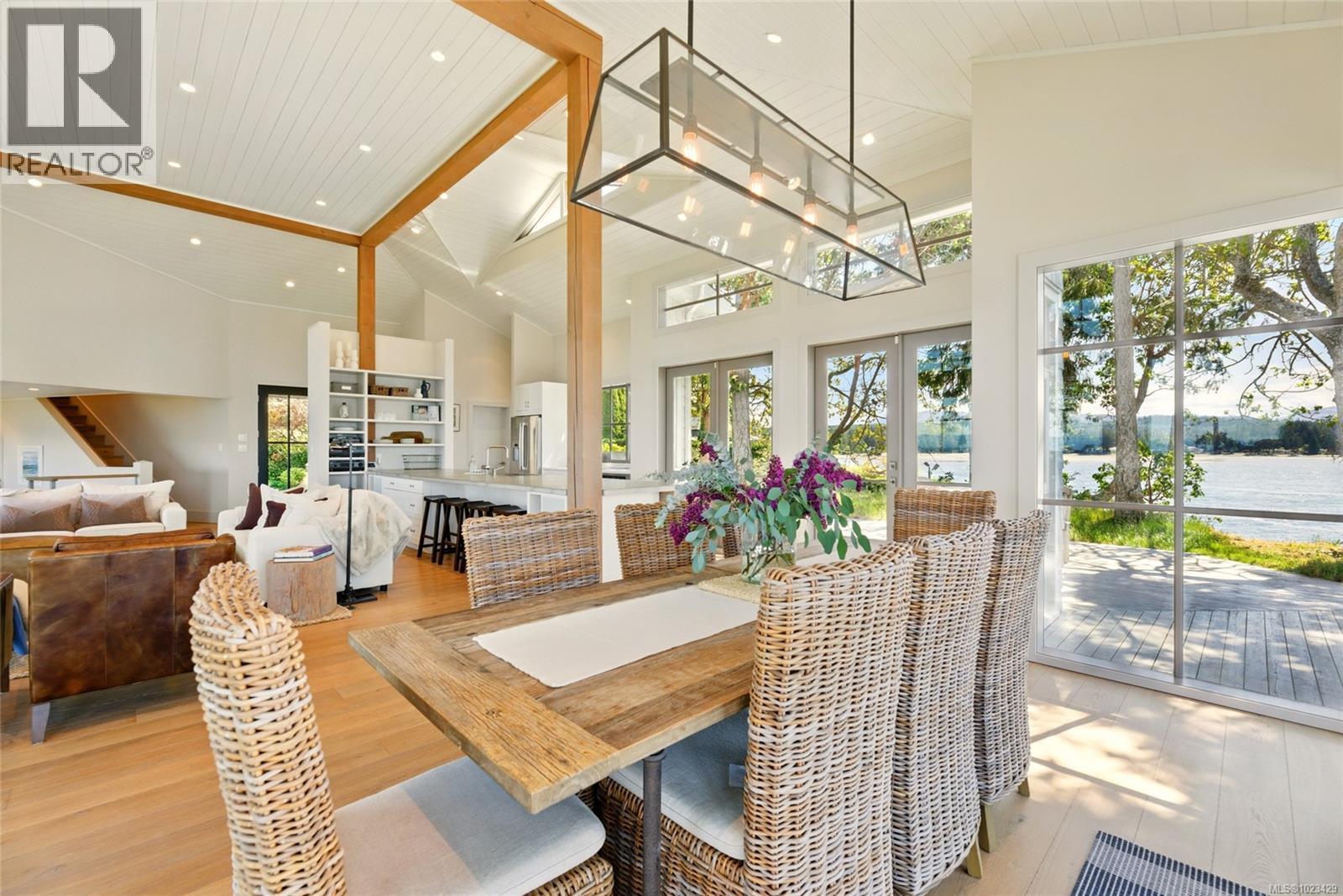 At the secluded terminus of Madrona Point, where Nanoose Bay meets the Salish Sea, lies a custom waterfront residence of rare distinction. Drawing inspiration from classic Cape Cod design, this home occupies an irreplaceable 0.5-acre parcel bordered by parkland and mature coastal growth. The result is a naturally protected sanctuary that feels deeply connected to its surroundings—an ideal primary residence or an elevated coastal escape. The interior unfolds with impressive scale and warmth. Painted pine tongue-and-groove ceilings rise to 14 feet, accented by hand-finished fir beams, while engineered hardwood and radiant in-floor heating provide enduring comfort. The open-concept main level is anchored by a dramatic 12-foot custom concrete island, creating a natural hub for gathering. Living and dining spaces are framed by floor-to-ceiling windows that draw in uninterrupted ocean views and the soothing presence of the sea, complemented by a cozy wood-burning fireplace. Accommodations include two spacious primary suites, each featuring walk-in closets and spa-like ensuites, offering flexibility for single-level living or a private upper-floor retreat. A covered breezeway connects the main house to a charming guest cottage, complete with a loft that sleeps four and a northeast-facing deck—perfect for sunrise views. The outdoor experience is defined by sweeping 270-degree vistas and frequent wildlife sightings. The calm, protected waters invite year-round paddle boarding, kayaking, and diving. Irrigated garden beds cascade toward the shoreline, where a private boat lift accommodates a 20-foot vessel. Located just 10 minutes from Qualicum Beach Airport and 20 minutes from Nanaimo’s ferry and Helijet services, this property represents a rare and artful expression of West Coast living. (id:2469)