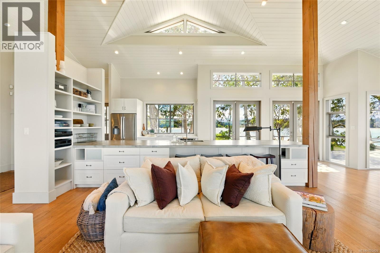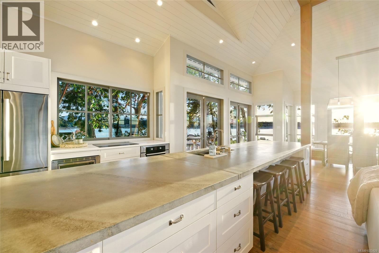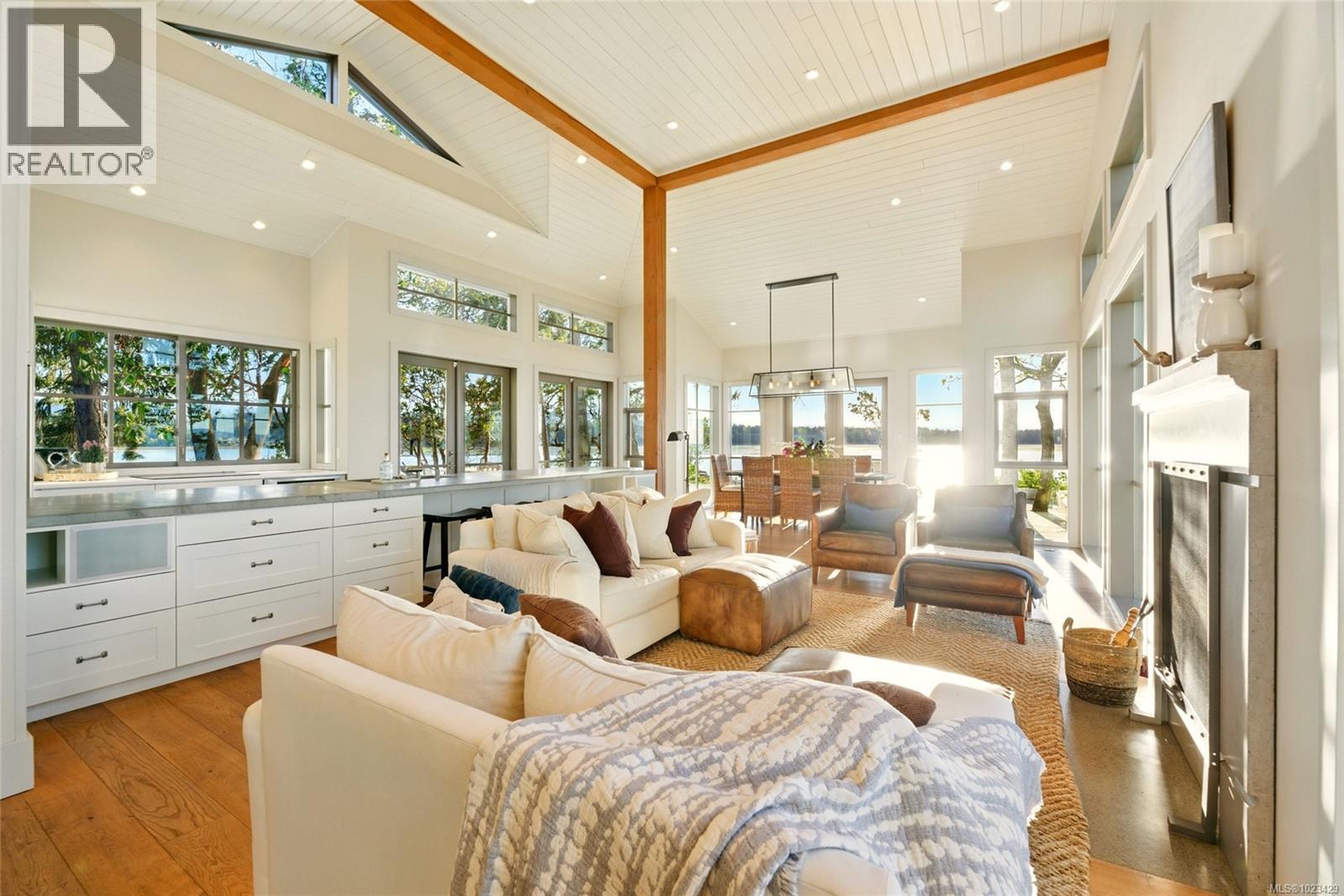 At the secluded terminus of Madrona Point, where Nanoose Bay meets the Salish Sea, lies a custom waterfront residence of rare distinction. Drawing inspiration from classic Cape Cod design, this home occupies an irreplaceable 0.5-acre parcel bordered by parkland and mature coastal growth. The result is a naturally protected sanctuary that feels deeply connected to its surroundings—an ideal primary residence or an elevated coastal escape. The interior unfolds with impressive scale and warmth. Painted pine tongue-and-groove ceilings rise to 14 feet, accented by hand-finished fir beams, while engineered hardwood and radiant in-floor heating provide enduring comfort. The open-concept main level is anchored by a dramatic 12-foot custom concrete island, creating a natural hub for gathering. Living and dining spaces are framed by floor-to-ceiling windows that draw in uninterrupted ocean views and the soothing presence of the sea, complemented by a cozy wood-burning fireplace. Accommodations include two spacious primary suites, each featuring walk-in closets and spa-like ensuites, offering flexibility for single-level living or a private upper-floor retreat. A covered breezeway connects the main house to a charming guest cottage, complete with a loft that sleeps four and a northeast-facing deck—perfect for sunrise views. The outdoor experience is defined by sweeping 270-degree vistas and frequent wildlife sightings. The calm, protected waters invite year-round paddle boarding, kayaking, and diving. Irrigated garden beds cascade toward the shoreline, where a private boat lift accommodates a 20-foot vessel. Located just 10 minutes from Qualicum Beach Airport and 20 minutes from Nanaimo’s ferry and Helijet services, this property represents a rare and artful expression of West Coast living. (id:2469)