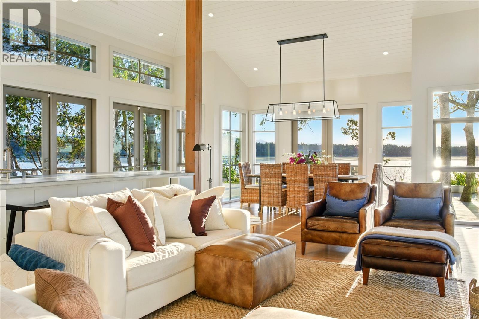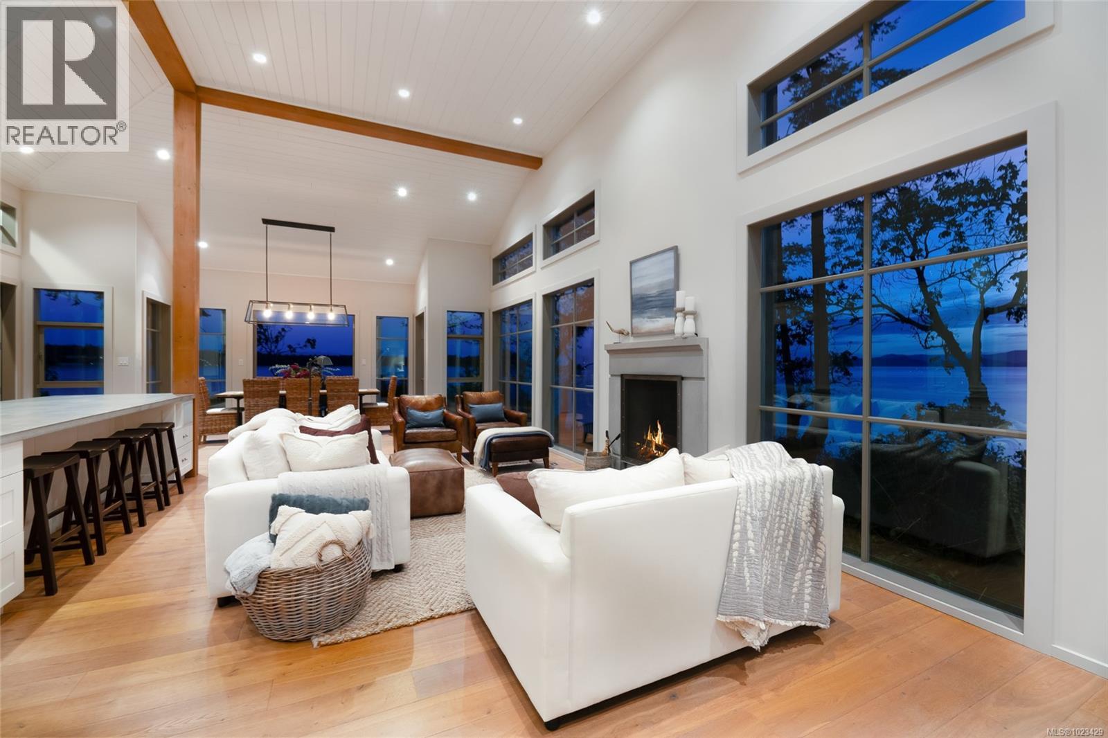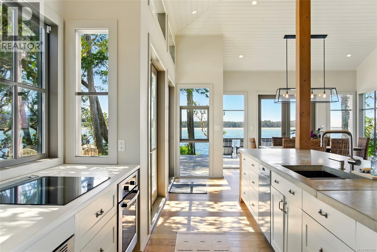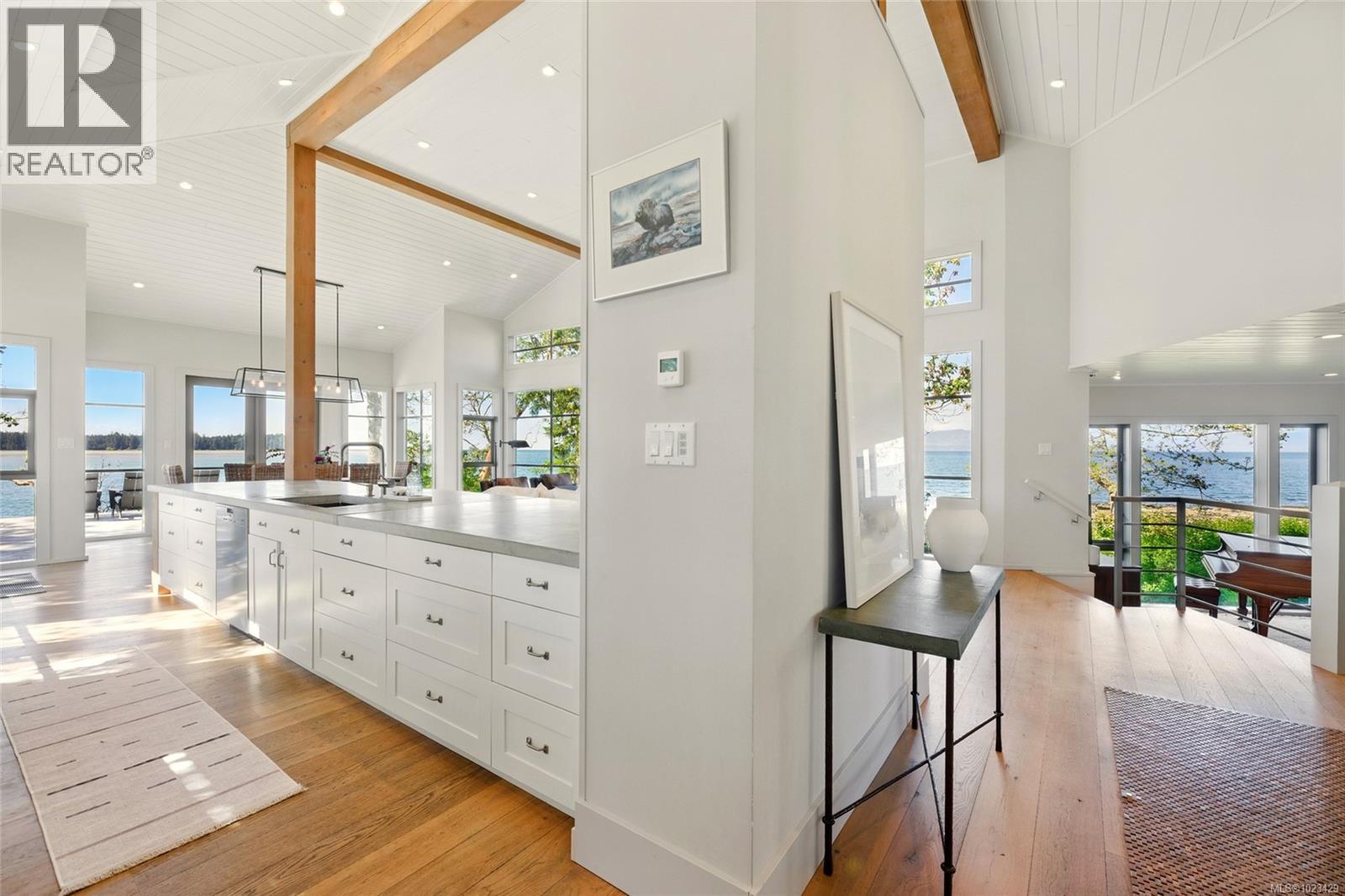 At the secluded terminus of Madrona Point, where Nanoose Bay meets the Salish Sea, lies a custom waterfront residence of rare distinction. Drawing inspiration from classic Cape Cod design, this home occupies an irreplaceable 0.5-acre parcel bordered by parkland and mature coastal growth. The result is a naturally protected sanctuary that feels deeply connected to its surroundings—an ideal primary residence or an elevated coastal escape. The interior unfolds with impressive scale and warmth. Painted pine tongue-and-groove ceilings rise to 14 feet, accented by hand-finished fir beams, while engineered hardwood and radiant in-floor heating provide enduring comfort. The open-concept main level is anchored by a dramatic 12-foot custom concrete island, creating a natural hub for gathering. Living and dining spaces are framed by floor-to-ceiling windows that draw in uninterrupted ocean views and the soothing presence of the sea, complemented by a cozy wood-burning fireplace. Accommodations include two spacious primary suites, each featuring walk-in closets and spa-like ensuites, offering flexibility for single-level living or a private upper-floor retreat. A covered breezeway connects the main house to a charming guest cottage, complete with a loft that sleeps four and a northeast-facing deck—perfect for sunrise views. The outdoor experience is defined by sweeping 270-degree vistas and frequent wildlife sightings. The calm, protected waters invite year-round paddle boarding, kayaking, and diving. Irrigated garden beds cascade toward the shoreline, where a private boat lift accommodates a 20-foot vessel. Located just 10 minutes from Qualicum Beach Airport and 20 minutes from Nanaimo’s ferry and Helijet services, this property represents a rare and artful expression of West Coast living. (id:2469)