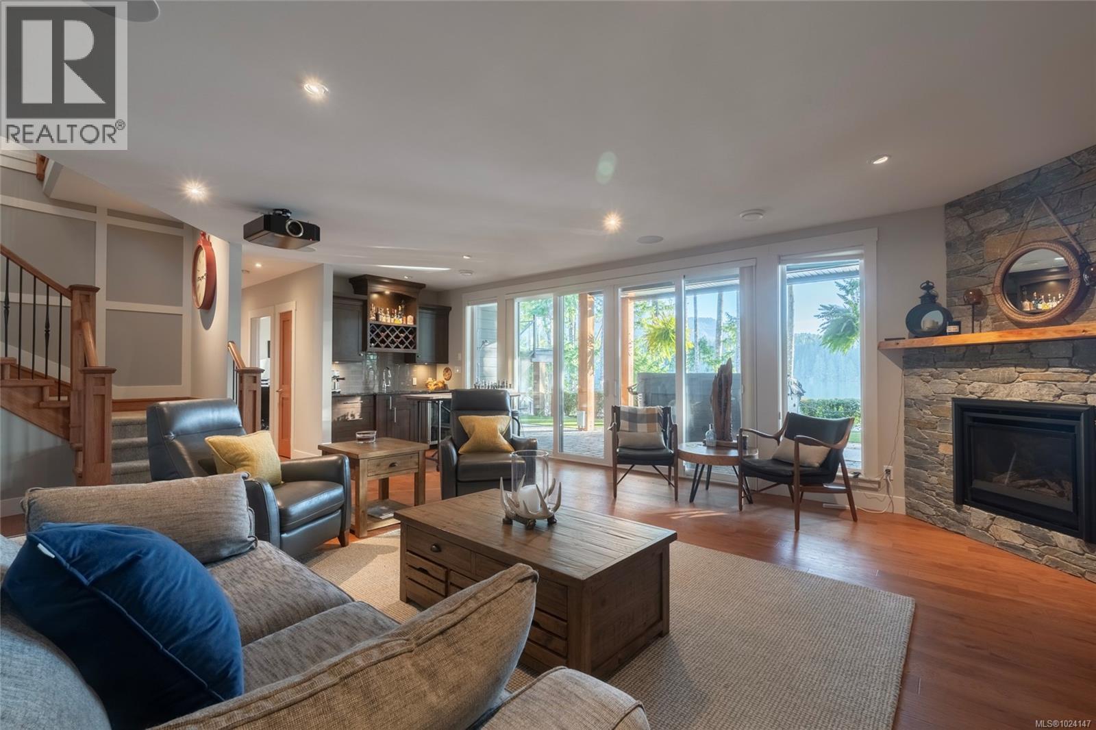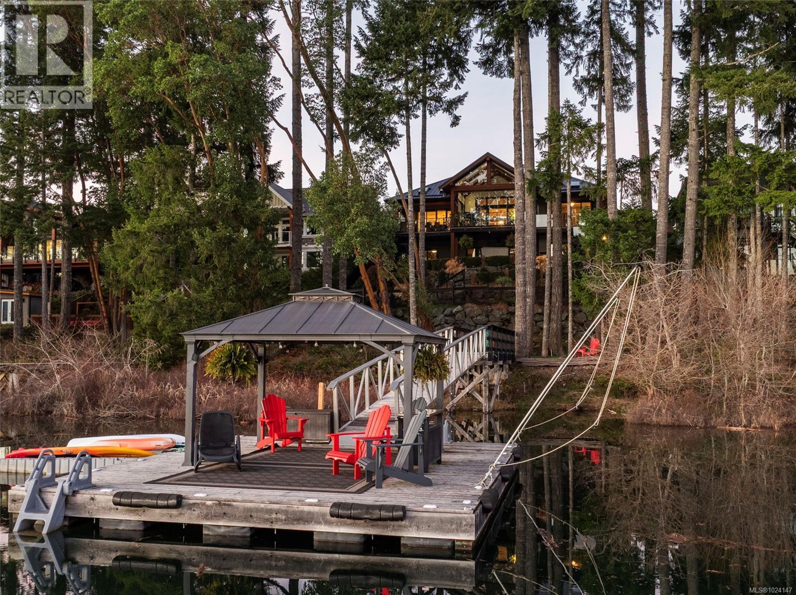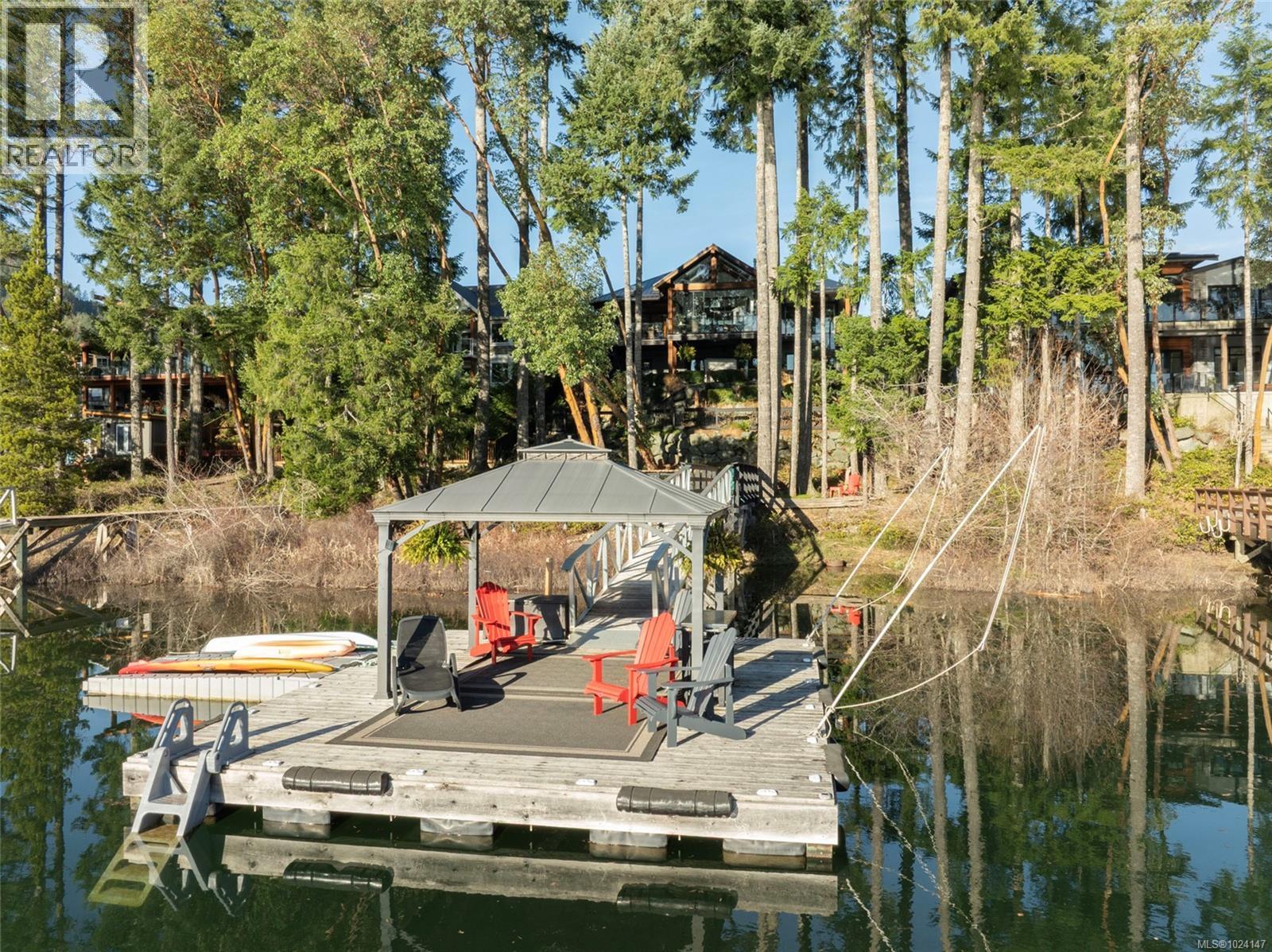 Walk-on waterfront in the highly sought-after Woodland Shores lakefront community. Custom-built level-entry walk-out w/ exceptional accessibility, design. Approx ½ acre lot featuring 4+1 bedrooms & 4 baths, including a main-floor primary bedroom w/ private balcony access. Designed for long-term livability, entertaining & accessibility w/ residential elevator. Regional water & sewer. Oversize triple-car garage w/ epoxy floors, EV outlet & RV parking. Exceptional lakefront features include 24’x24’ floating dock w/ gazebo, 50’ gangway + 50’ walkway, dual stair ladders, 2 ShorePorts for PWC, stone beach w/ gradual walk-in access & upgraded log boom. Fully fenced yard + lower-level outdoor entertainment bar w/ power, live-edge bar top & beverage centre. Covered ground-level patio, infinity edge hot tub & outdoor shower. Outdoor kitchen w/ granite counters, refrigerator & Napoleon propane BBQ. Upper deck w/ heaters, roller screens & glass railings maximizing views. Long-life metal roof, cement board siding & western red cedar accents. Interior features; prefinished hickory hardwood flooring, curved stairwell w/ iron railings, 2 stone propane fireplaces & extensive natural light from 12 skylights. Lower-level family room w/ full wet bar & 110” projection screen. Bright open kitchen w/ stone countertops, abundant cabinetry & oversized island, Sub-Zero refrigerator & full Wolf appliance package. Mechanical & smart systems include heat pump HVAC w/ cooling, HRV, central vacuum, irrigation w/ Rachio controller, Sonos audio (5 zones), HD security cameras, alarm system, LED landscape lighting & Control4 wiring. 2024 three-season sunroom w/ Jøtul 3-sided propane fireplace & Lumen retractable glass system. Cummins generator w/ automatic transfer switch. Rare Cowichan Lake waterfront built for comfort, recreation & long-term enjoyment. Call or email Sean McLintock for more info 250-729-1766 or sean@seanmclintock.com (All info/data believed to be accurate. Verify if fundamental) (id:2469)