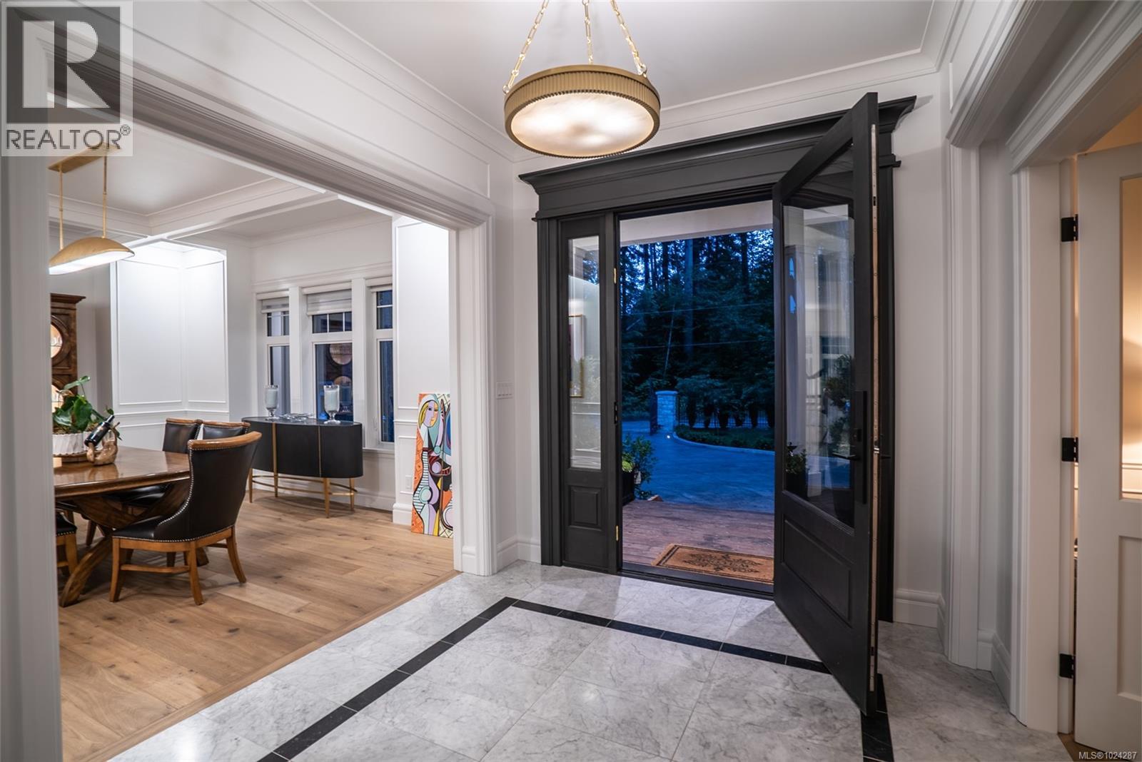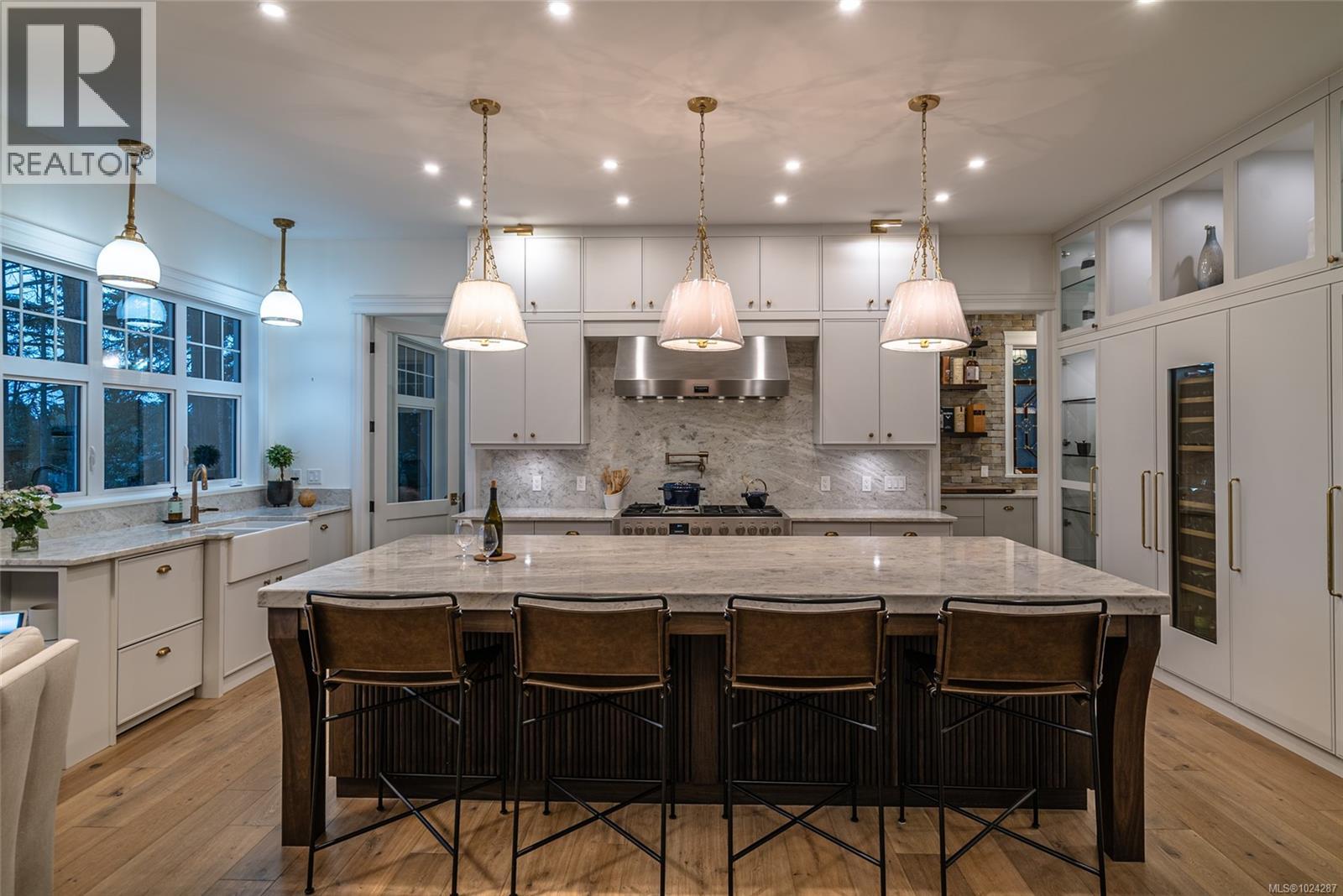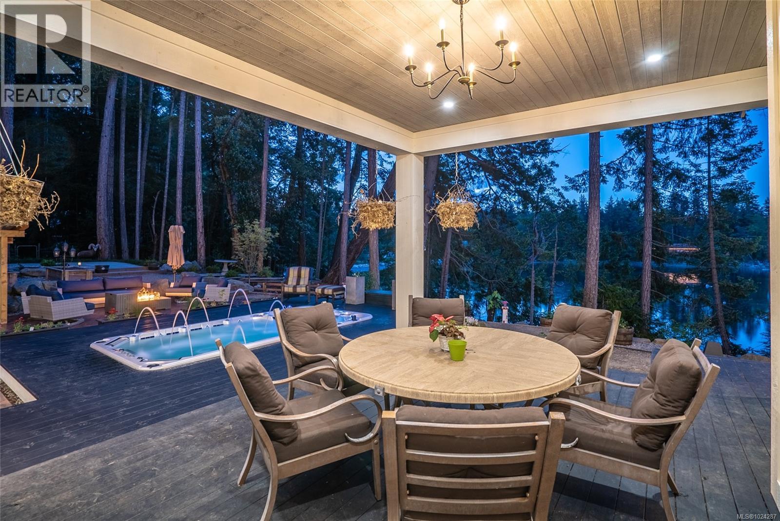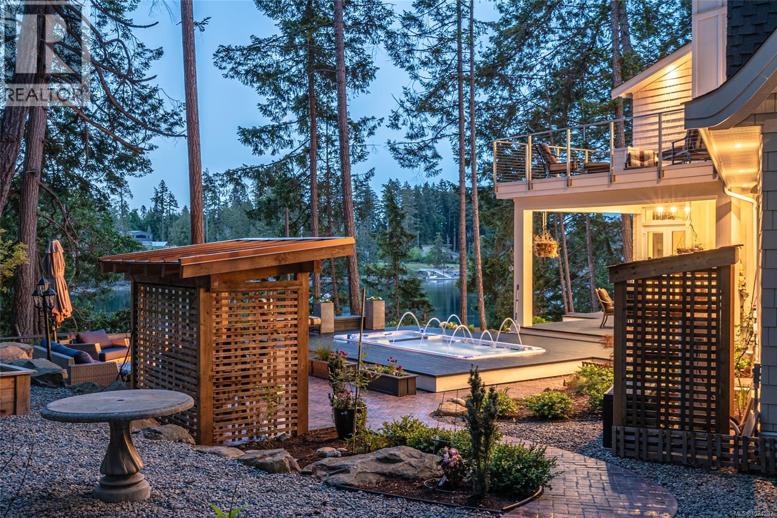3 year old Oceanfront home tucked down a private lane. The elegant waterfront masterpiece blends modern classical coastal design with luxury. Nestled in tranquil protected “Evening Cove” and offering excellent private access to the beach plus own anchoring Buoy. This spectacular home boasts over 6000 sqft of opulent living space plus a 700 sqft garage so room for everything. Five bedrooms, 6 bathrooms, kitchen absolute showpiece with custom built walnut wrapped milled cabinetry. Appliances befitting this home three door Trio Liebherr fridge, freezer, wine fridge, Fisher Paykel double drawer dishwasher and Fulgor 48 inch stove. You’ll love the spectacular stone fireplace, Russian Oak floors and grand staircase. Multi use flex suite over garage plus a lovely legal one bedroom in part of lower level. Beautiful grounds including amazing swim spa by waters edge, stamped driveway and walks, huge deck space(s). Some of the warmest ocean waters North of California, great crabbing, prawning and fishing within minutes, 10 minutes to airport, golf, 25 minutes to ferry. Too many other amazing features and finishings to list here on this gorgeous ¾ acre property, Paradise! (id:2469)