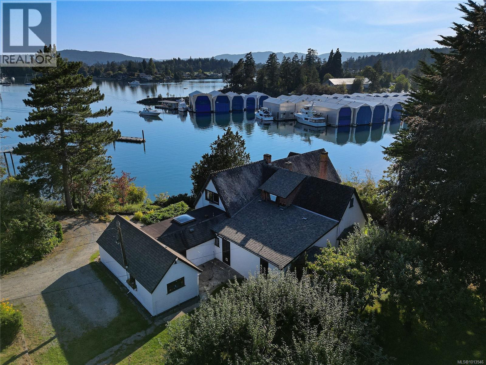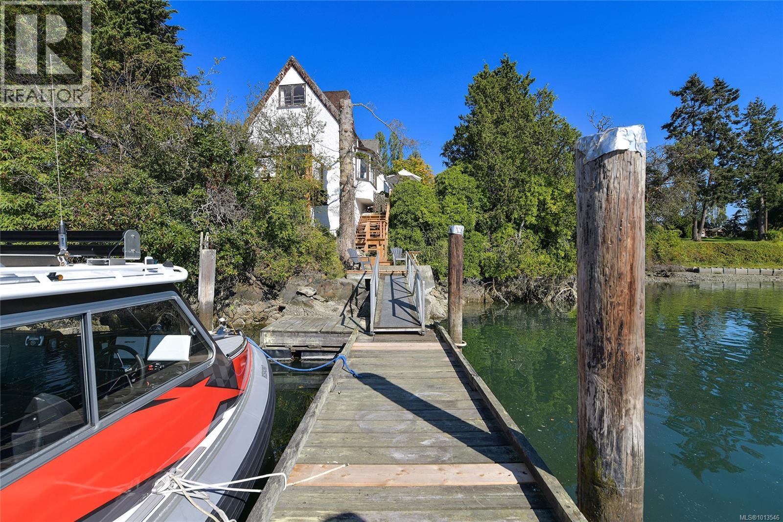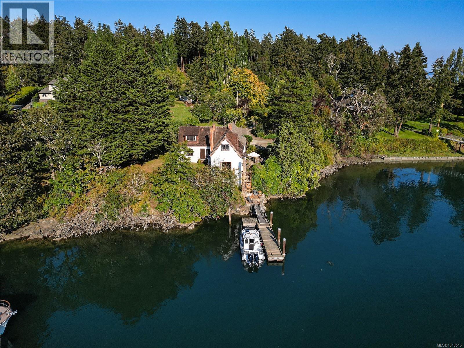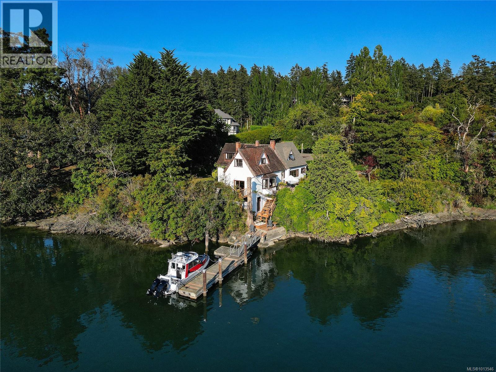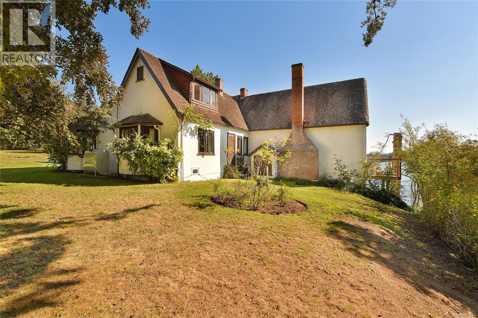 Two acre unique waterfront with a character home, private dock, orchard, stable, workshop and cottage. Rich in history and brimming with potential, this property offers many opportunities, including subdivision possibilities or simply enjoying the private sanctuary. In the same family for over 50 years, this historic gem captures your heart the moment you arrive. Originally built in 1934 for Esther Tryon,the home is perfectly situated on the lot for views and sunshine! The view along with the local sandstone rock garden and perennial borders, set the stage for the main house.This 1930s period home, designed by renowned architect Hubert Savage features distinctive cedar curved eaves reminiscent of thatched roofs and is perched on a promontory overlooking the bay with south-facing views. From the dock, your waterfront adventures to Tsehum Harbour & the Gulf Islands await. The house is beautifully integrated into the lush landscape, offering a skylit breakfast room, a charming 1930s kitchen, and a living room with sweeping views of the bay. A spacious music room, perfect for social gatherings, opens to a balcony for enjoying evening sun. The primary area includes a deco-style study with custom joinery, a private bathroom,and a cozy built-in day bed, all adjoining the main bedroom with views of the rose garden, personal bathroom, and a private library space. Upstairs, you'll find three sunny, country-style bedrooms and a bathroom centred around a shared living area.This is a rare opportunity to acquire a delightful period home, ready for you to expand your life and pursue your passions.Outbuildings, currently set up as pottery and weaving studios, could easily be converted back to hobby farm use or reimagined to suit your needs. The cottage, a quaint clapperboard house, is perfect for guests, relatives, or caretakers. Nestled among heritage apple, plum, and quince trees, this property invites you to create your own legacy in a truly magical setting. (id:2469)
