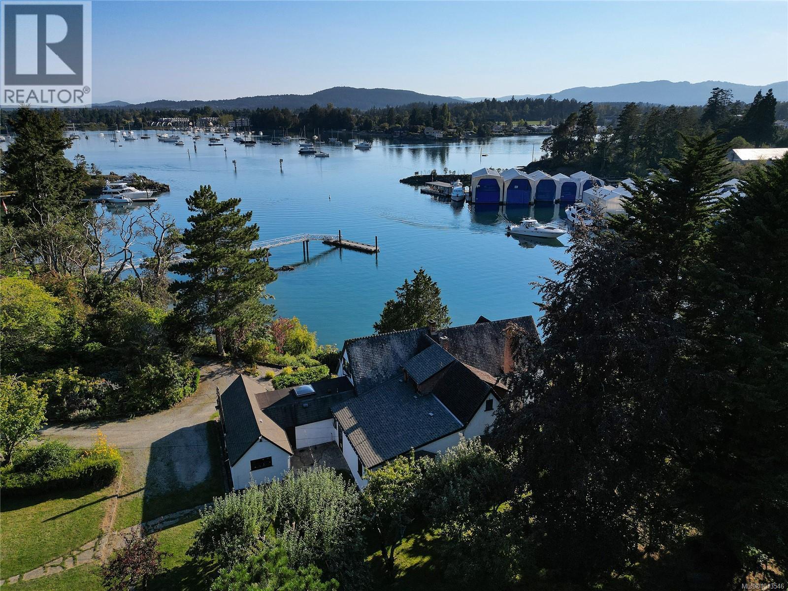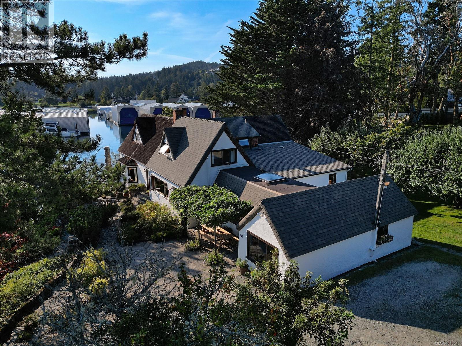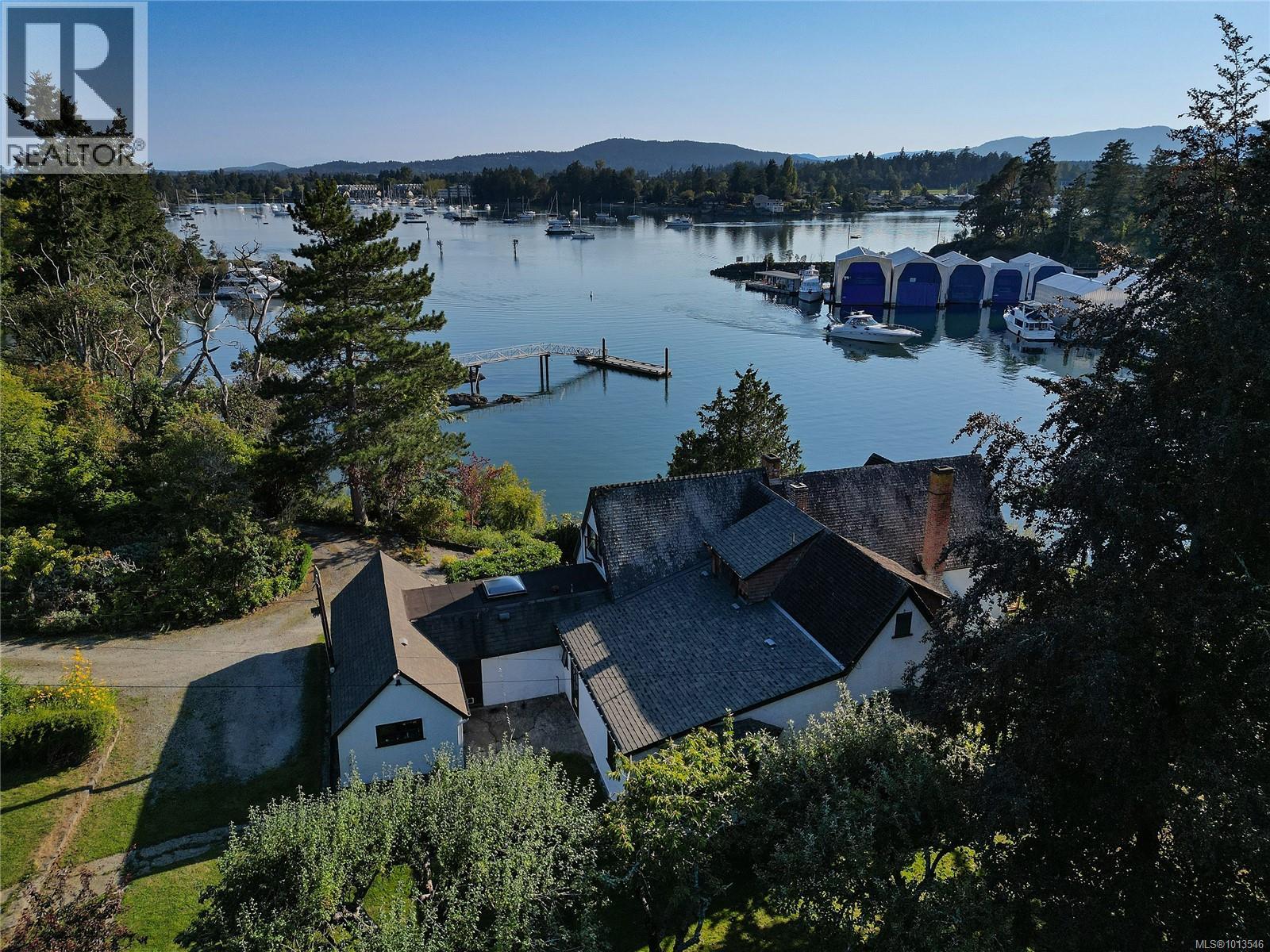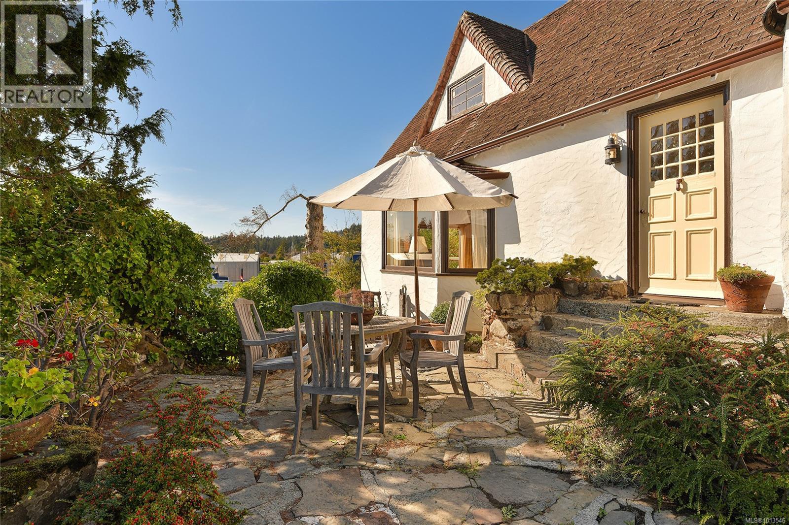 Two acre unique waterfront with a character home, private dock, orchard, stable, workshop and cottage. Rich in history and brimming with potential, this property offers many opportunities, including subdivision possibilities or simply enjoying the private sanctuary. In the same family for over 50 years, this historic gem captures your heart the moment you arrive. Originally built in 1934 for Esther Tryon,the home is perfectly situated on the lot for views and sunshine! The view along with the local sandstone rock garden and perennial borders, set the stage for the main house.This 1930s period home, designed by renowned architect Hubert Savage features distinctive cedar curved eaves reminiscent of thatched roofs and is perched on a promontory overlooking the bay with south-facing views. From the dock, your waterfront adventures to Tsehum Harbour & the Gulf Islands await. The house is beautifully integrated into the lush landscape, offering a skylit breakfast room, a charming 1930s kitchen, and a living room with sweeping views of the bay. A spacious music room, perfect for social gatherings, opens to a balcony for enjoying evening sun. The primary area includes a deco-style study with custom joinery, a private bathroom,and a cozy built-in day bed, all adjoining the main bedroom with views of the rose garden, personal bathroom, and a private library space. Upstairs, you'll find three sunny, country-style bedrooms and a bathroom centred around a shared living area.This is a rare opportunity to acquire a delightful period home, ready for you to expand your life and pursue your passions.Outbuildings, currently set up as pottery and weaving studios, could easily be converted back to hobby farm use or reimagined to suit your needs. The cottage, a quaint clapperboard house, is perfect for guests, relatives, or caretakers. Nestled among heritage apple, plum, and quince trees, this property invites you to create your own legacy in a truly magical setting. (id:2469)