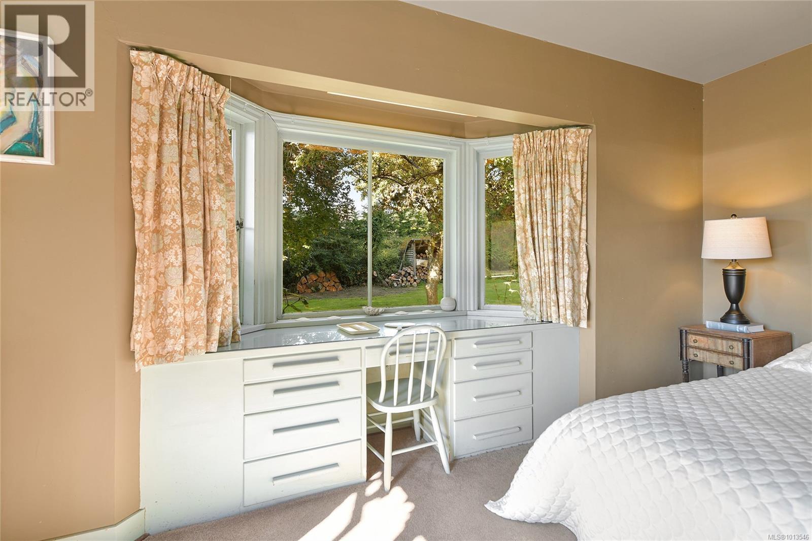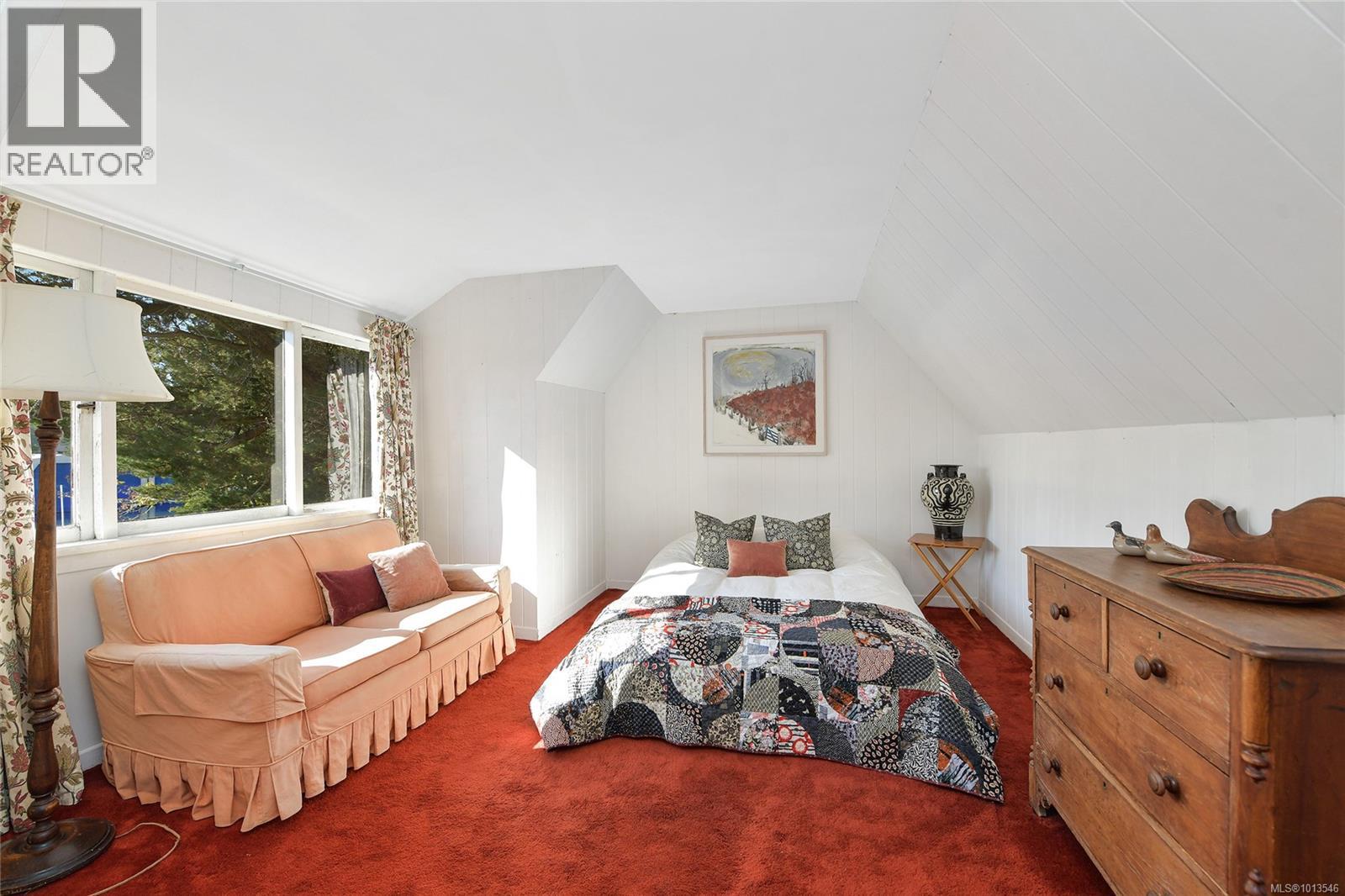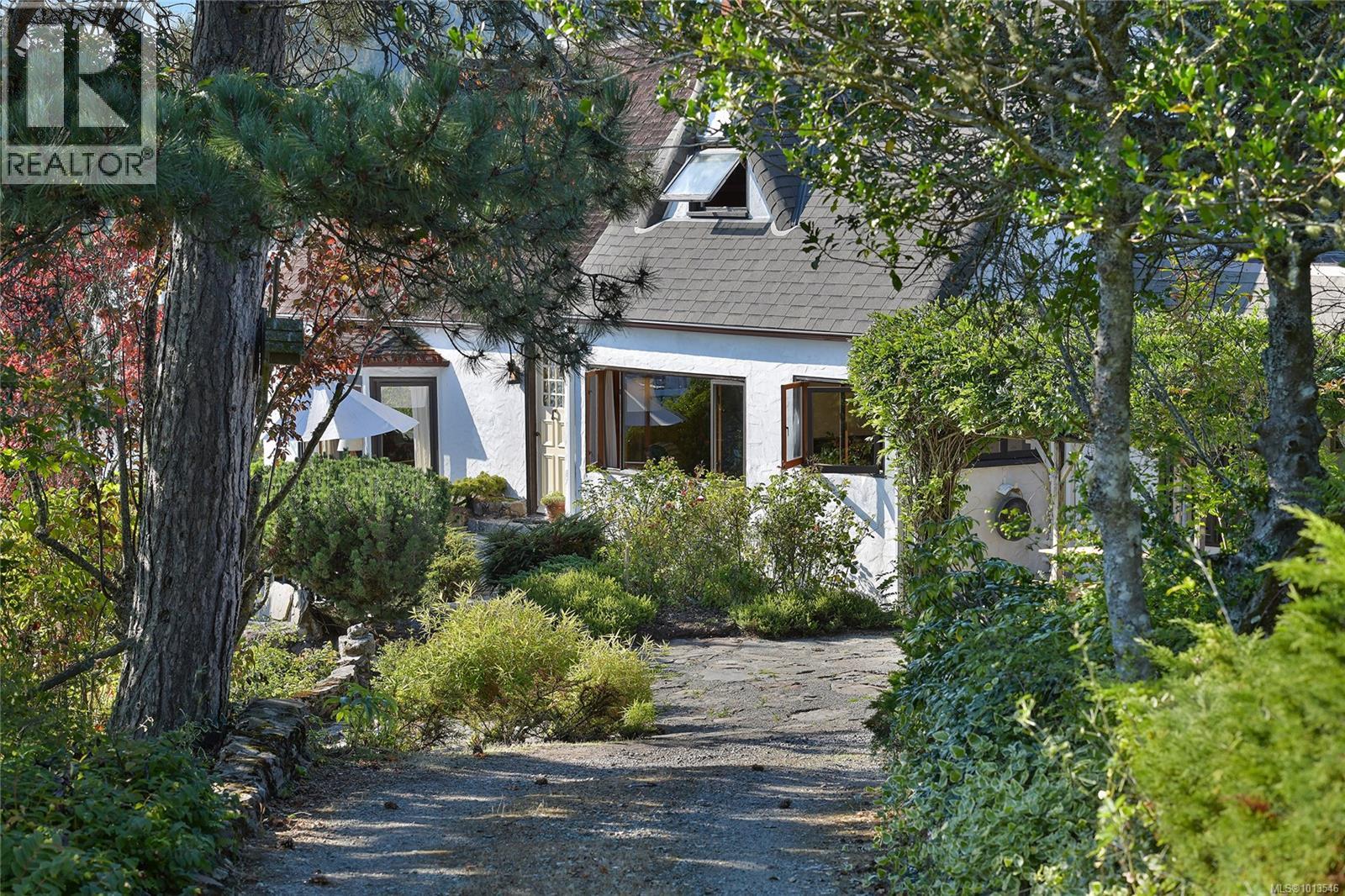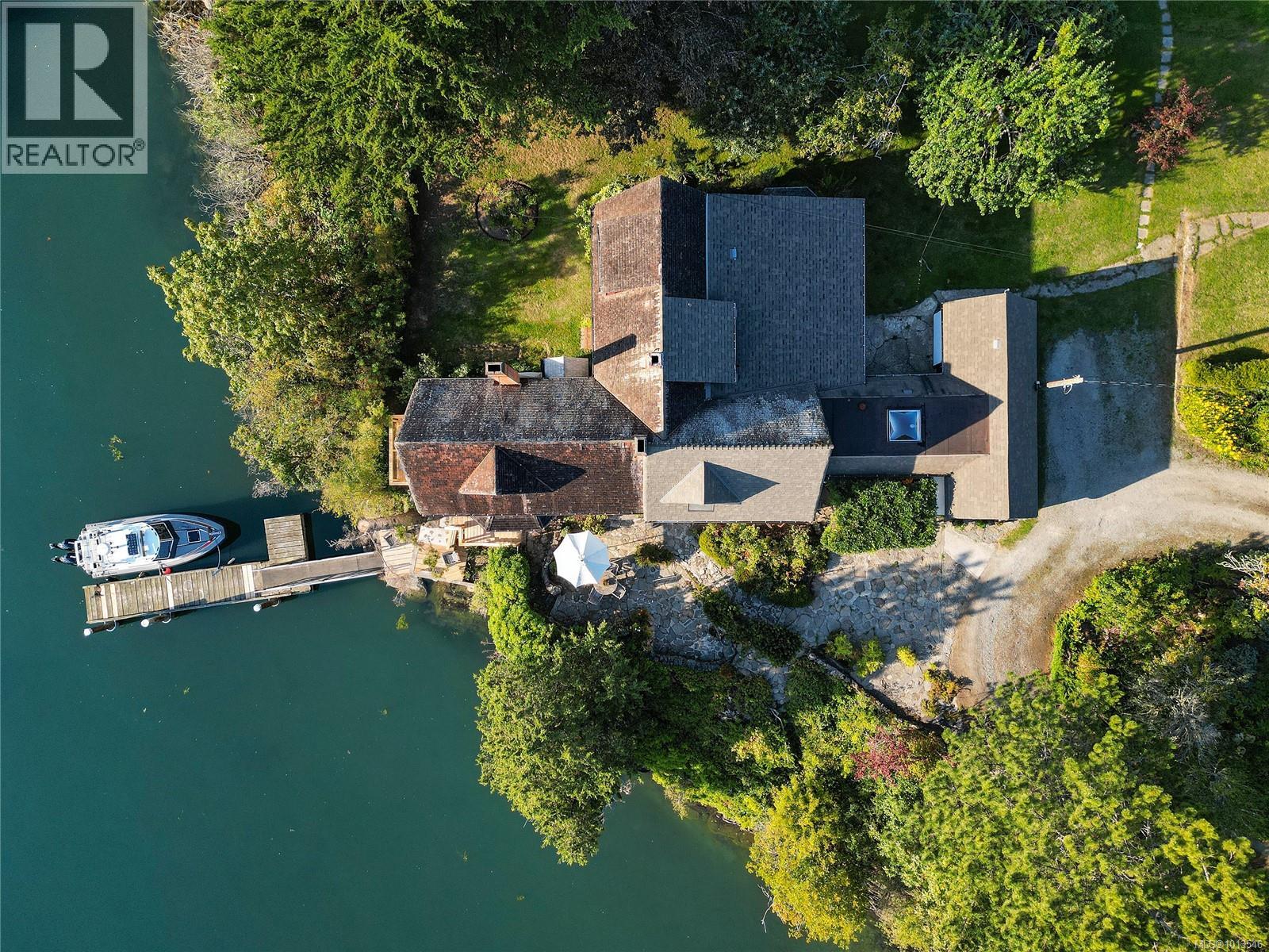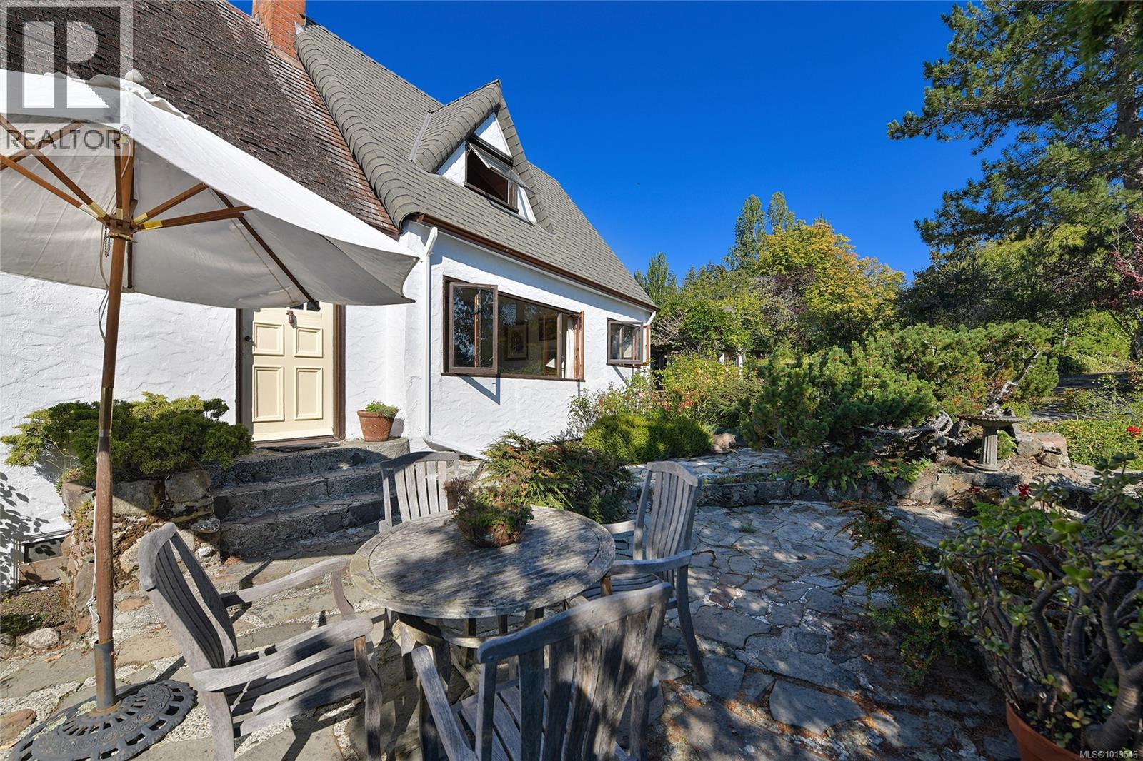 Two acre unique waterfront with a character home, private dock, orchard, stable, workshop and cottage. Rich in history and brimming with potential, this property offers many opportunities, including subdivision possibilities or simply enjoying the private sanctuary. In the same family for over 50 years, this historic gem captures your heart the moment you arrive. Originally built in 1934 for Esther Tryon,the home is perfectly situated on the lot for views and sunshine! The view along with the local sandstone rock garden and perennial borders, set the stage for the main house.This 1930s period home, designed by renowned architect Hubert Savage features distinctive cedar curved eaves reminiscent of thatched roofs and is perched on a promontory overlooking the bay with south-facing views. From the dock, your waterfront adventures to Tsehum Harbour & the Gulf Islands await. The house is beautifully integrated into the lush landscape, offering a skylit breakfast room, a charming 1930s kitchen, and a living room with sweeping views of the bay. A spacious music room, perfect for social gatherings, opens to a balcony for enjoying evening sun. The primary area includes a deco-style study with custom joinery, a private bathroom,and a cozy built-in day bed, all adjoining the main bedroom with views of the rose garden, personal bathroom, and a private library space. Upstairs, you'll find three sunny, country-style bedrooms and a bathroom centred around a shared living area.This is a rare opportunity to acquire a delightful period home, ready for you to expand your life and pursue your passions.Outbuildings, currently set up as pottery and weaving studios, could easily be converted back to hobby farm use or reimagined to suit your needs. The cottage, a quaint clapperboard house, is perfect for guests, relatives, or caretakers. Nestled among heritage apple, plum, and quince trees, this property invites you to create your own legacy in a truly magical setting. (id:2469)