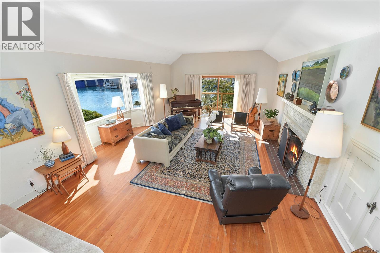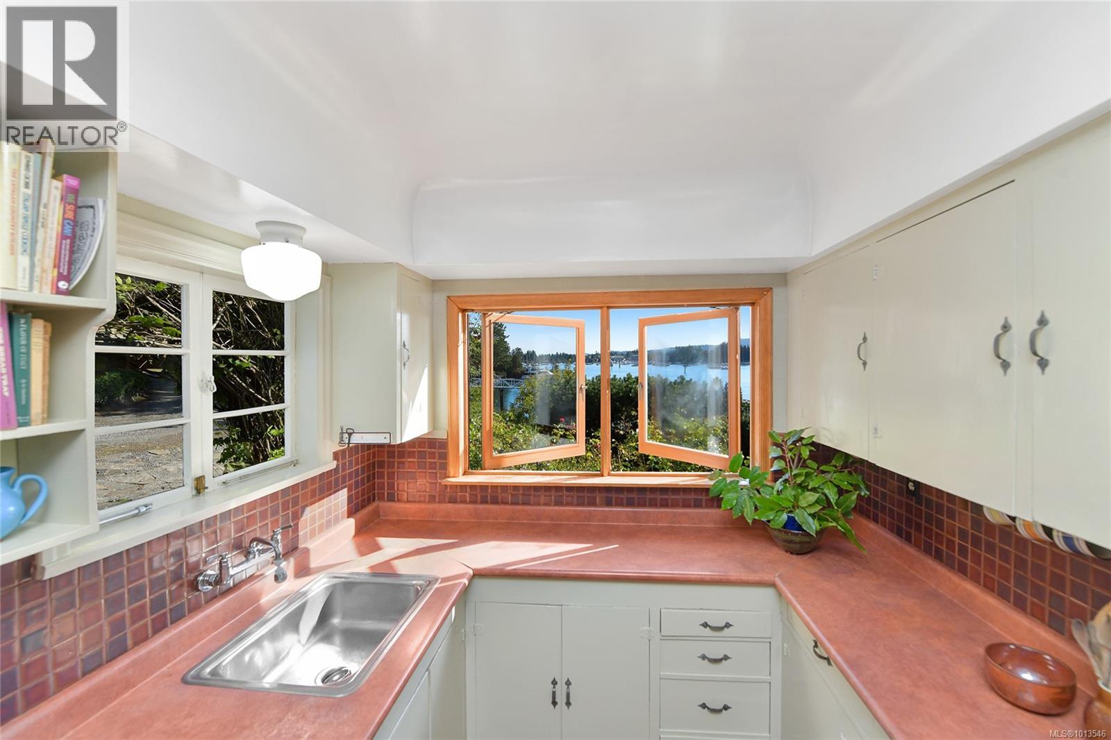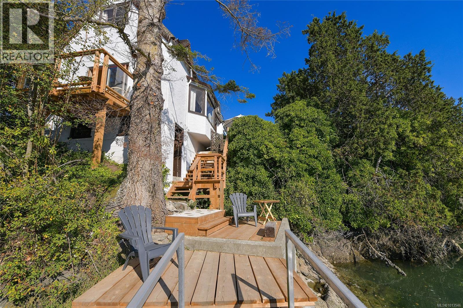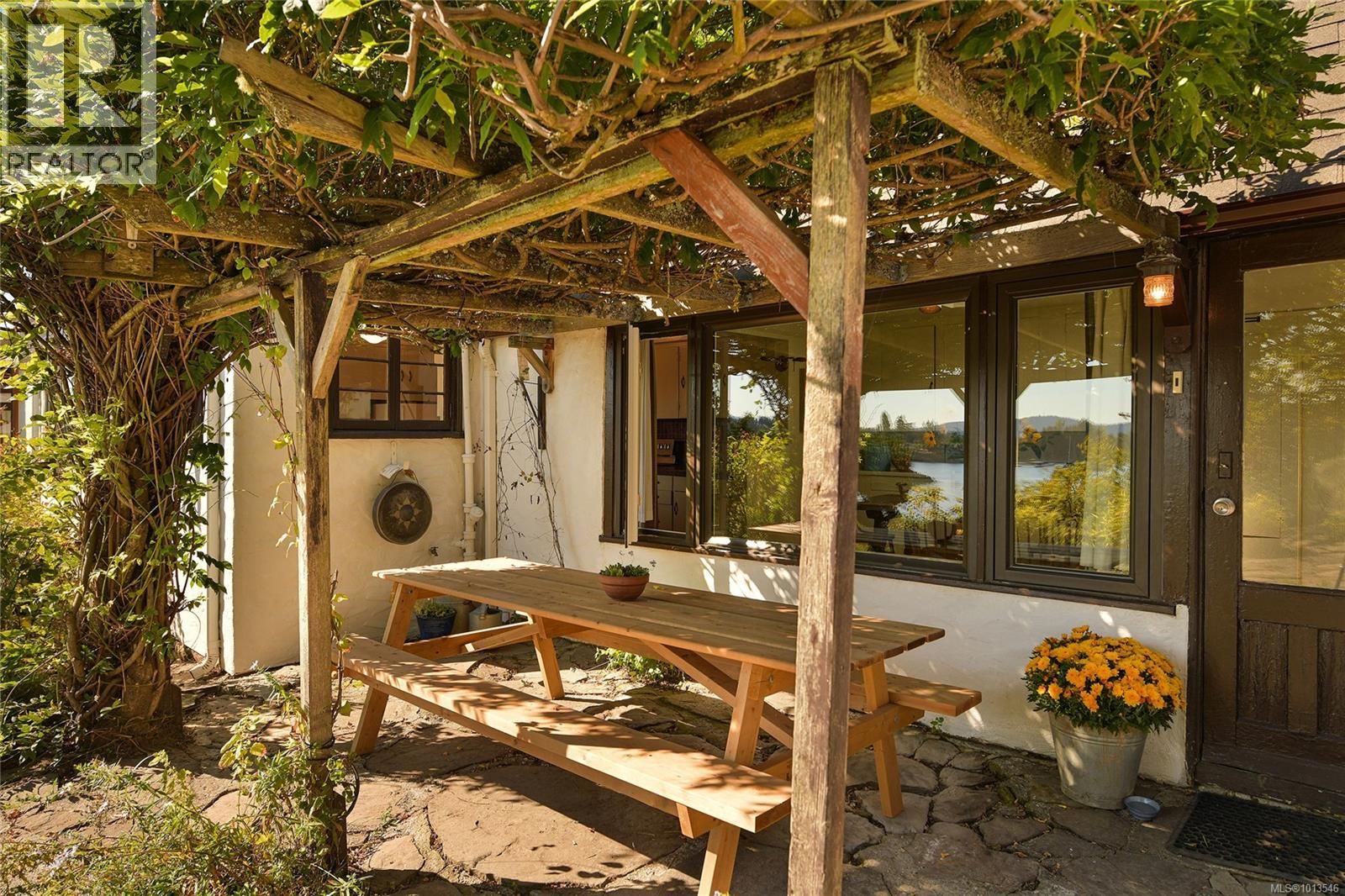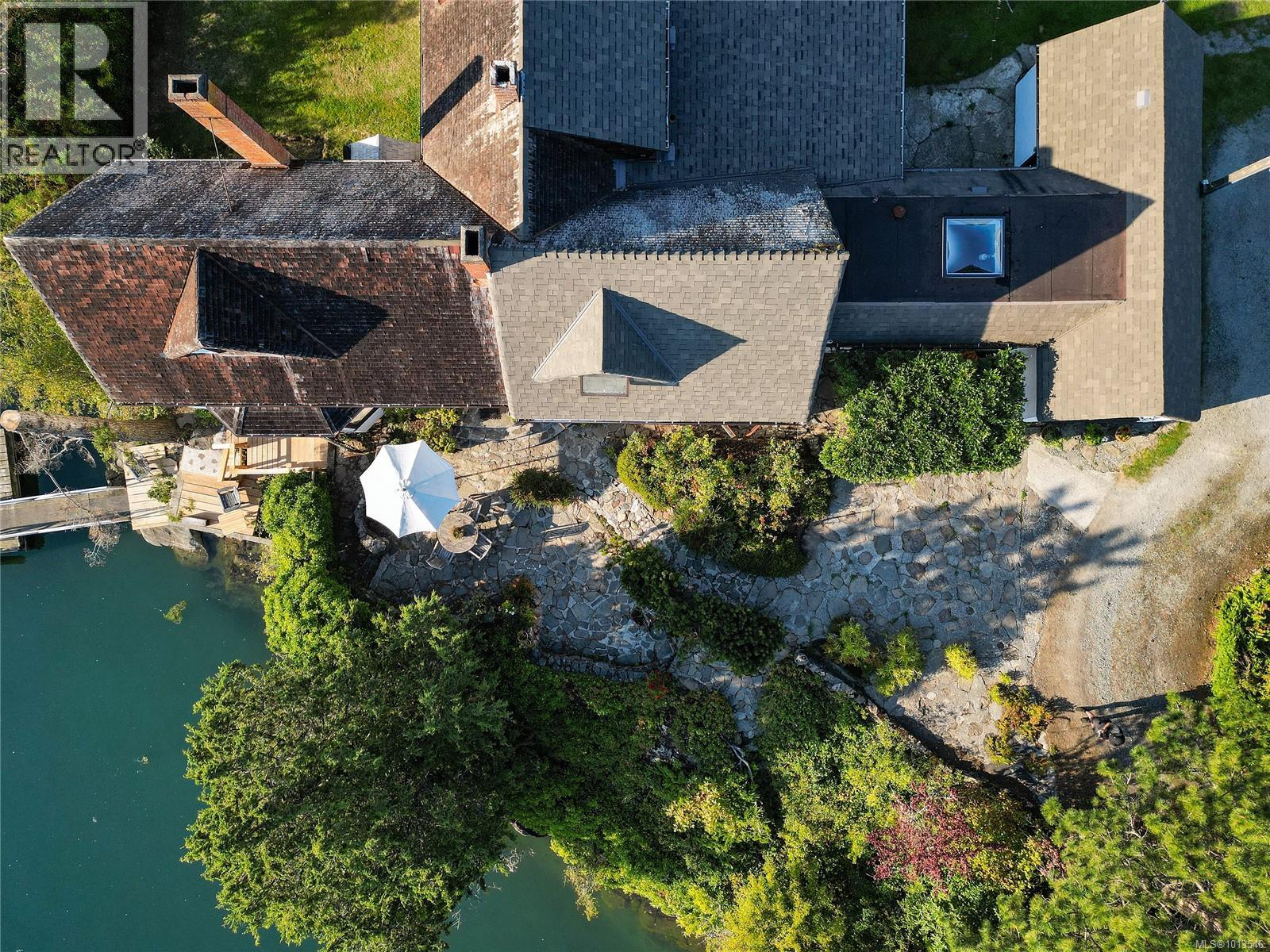 Two acre unique waterfront with a character home, private dock, orchard, stable, workshop and cottage. Rich in history and brimming with potential, this property offers many opportunities, including subdivision possibilities or simply enjoying the private sanctuary. In the same family for over 50 years, this historic gem captures your heart the moment you arrive. Originally built in 1934 for Esther Tryon,the home is perfectly situated on the lot for views and sunshine! The view along with the local sandstone rock garden and perennial borders, set the stage for the main house.This 1930s period home, designed by renowned architect Hubert Savage features distinctive cedar curved eaves reminiscent of thatched roofs and is perched on a promontory overlooking the bay with south-facing views. From the dock, your waterfront adventures to Tsehum Harbour & the Gulf Islands await. The house is beautifully integrated into the lush landscape, offering a skylit breakfast room, a charming 1930s kitchen, and a living room with sweeping views of the bay. A spacious music room, perfect for social gatherings, opens to a balcony for enjoying evening sun. The primary area includes a deco-style study with custom joinery, a private bathroom,and a cozy built-in day bed, all adjoining the main bedroom with views of the rose garden, personal bathroom, and a private library space. Upstairs, you'll find three sunny, country-style bedrooms and a bathroom centred around a shared living area.This is a rare opportunity to acquire a delightful period home, ready for you to expand your life and pursue your passions.Outbuildings, currently set up as pottery and weaving studios, could easily be converted back to hobby farm use or reimagined to suit your needs. The cottage, a quaint clapperboard house, is perfect for guests, relatives, or caretakers. Nestled among heritage apple, plum, and quince trees, this property invites you to create your own legacy in a truly magical setting. (id:2469)