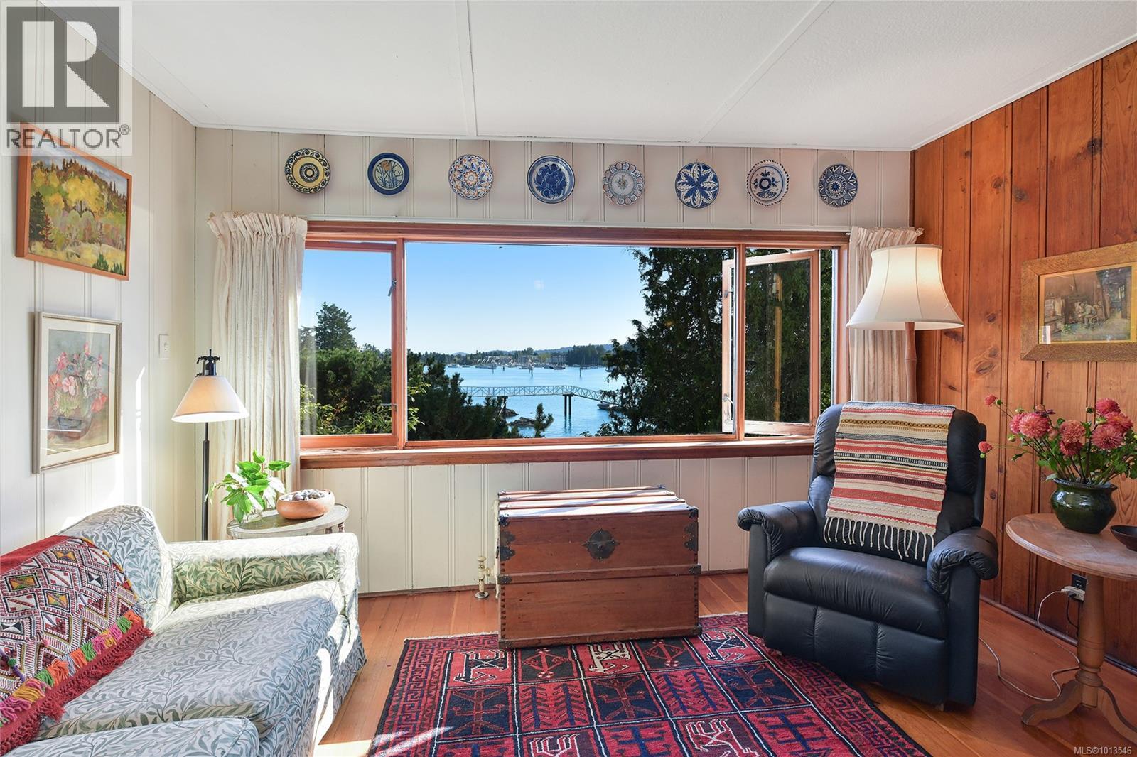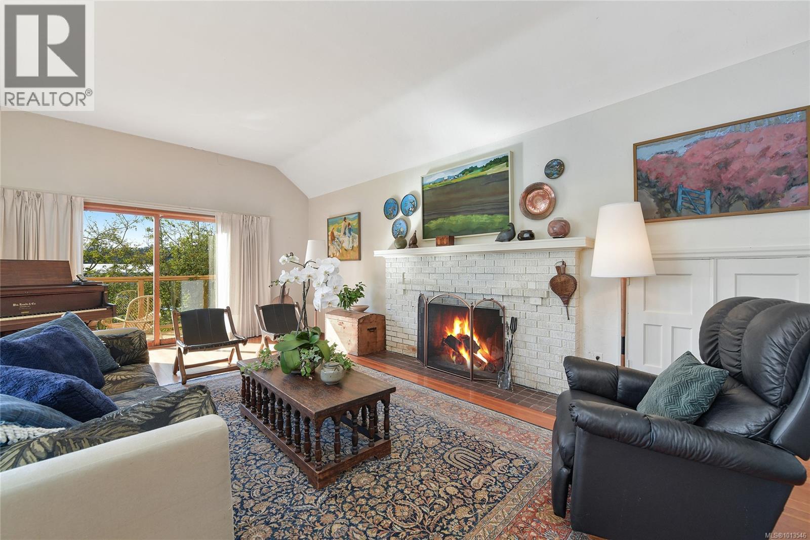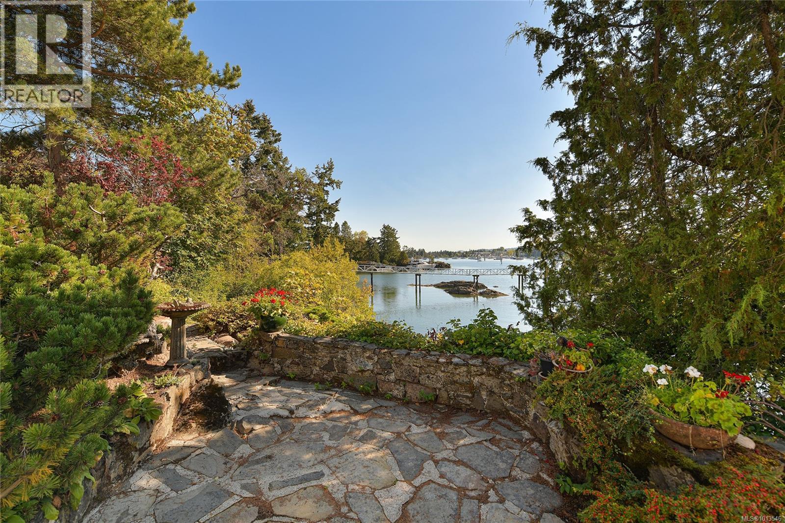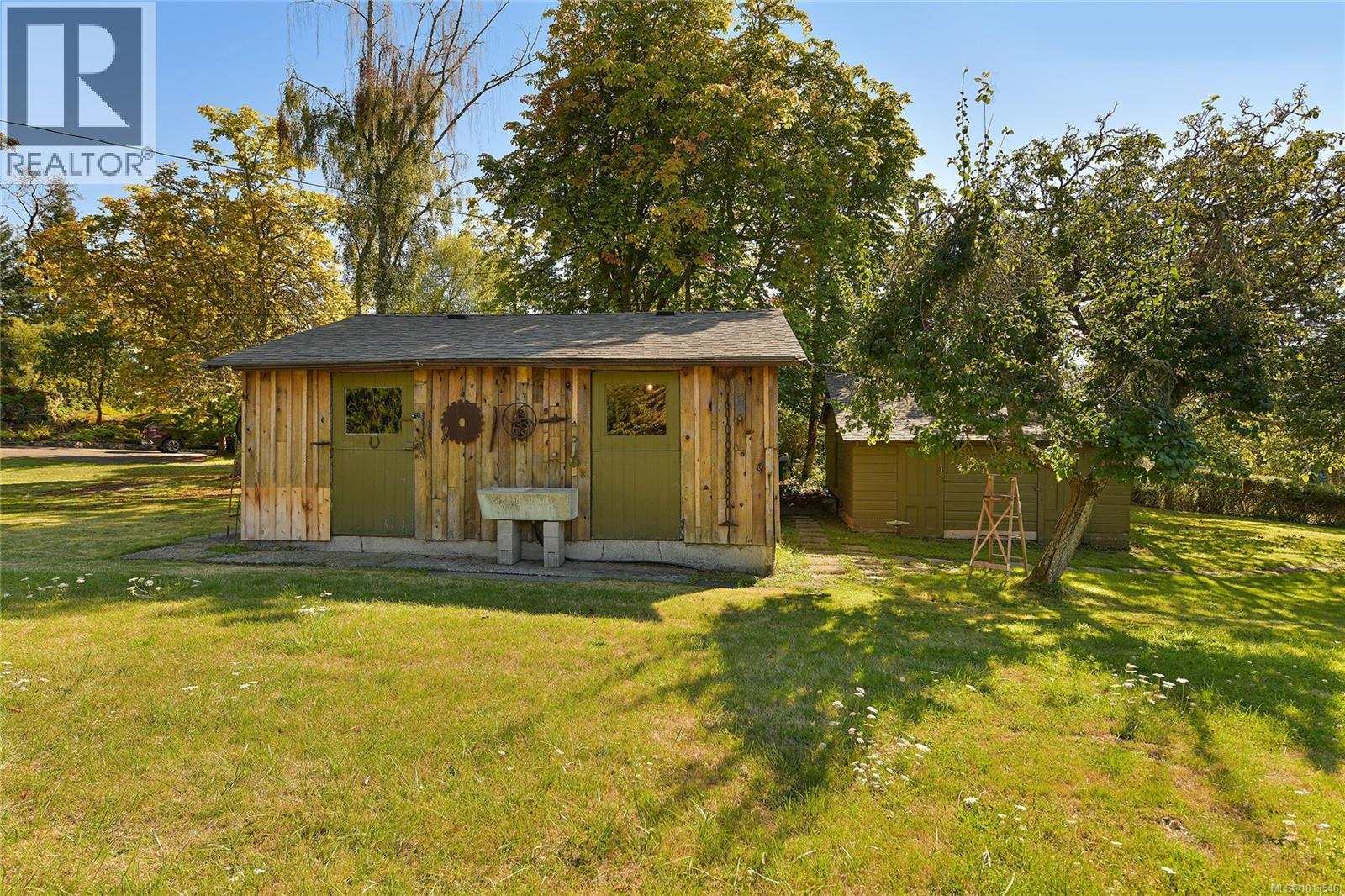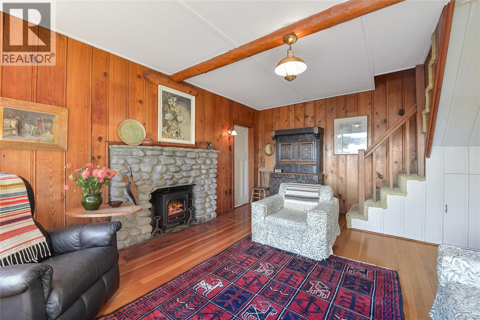 Two acre unique waterfront with a character home, private dock, orchard, stable, workshop and cottage. Rich in history and brimming with potential, this property offers many opportunities, including subdivision possibilities or simply enjoying the private sanctuary. In the same family for over 50 years, this historic gem captures your heart the moment you arrive. Originally built in 1934 for Esther Tryon,the home is perfectly situated on the lot for views and sunshine! The view along with the local sandstone rock garden and perennial borders, set the stage for the main house.This 1930s period home, designed by renowned architect Hubert Savage features distinctive cedar curved eaves reminiscent of thatched roofs and is perched on a promontory overlooking the bay with south-facing views. From the dock, your waterfront adventures to Tsehum Harbour & the Gulf Islands await. The house is beautifully integrated into the lush landscape, offering a skylit breakfast room, a charming 1930s kitchen, and a living room with sweeping views of the bay. A spacious music room, perfect for social gatherings, opens to a balcony for enjoying evening sun. The primary area includes a deco-style study with custom joinery, a private bathroom,and a cozy built-in day bed, all adjoining the main bedroom with views of the rose garden, personal bathroom, and a private library space. Upstairs, you'll find three sunny, country-style bedrooms and a bathroom centred around a shared living area.This is a rare opportunity to acquire a delightful period home, ready for you to expand your life and pursue your passions.Outbuildings, currently set up as pottery and weaving studios, could easily be converted back to hobby farm use or reimagined to suit your needs. The cottage, a quaint clapperboard house, is perfect for guests, relatives, or caretakers. Nestled among heritage apple, plum, and quince trees, this property invites you to create your own legacy in a truly magical setting. (id:2469)