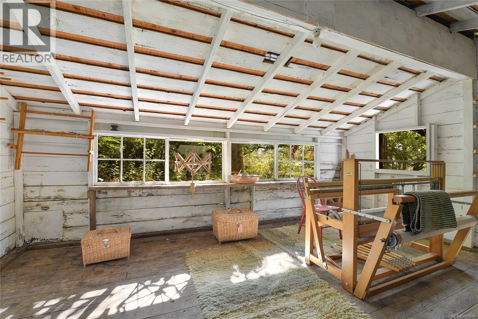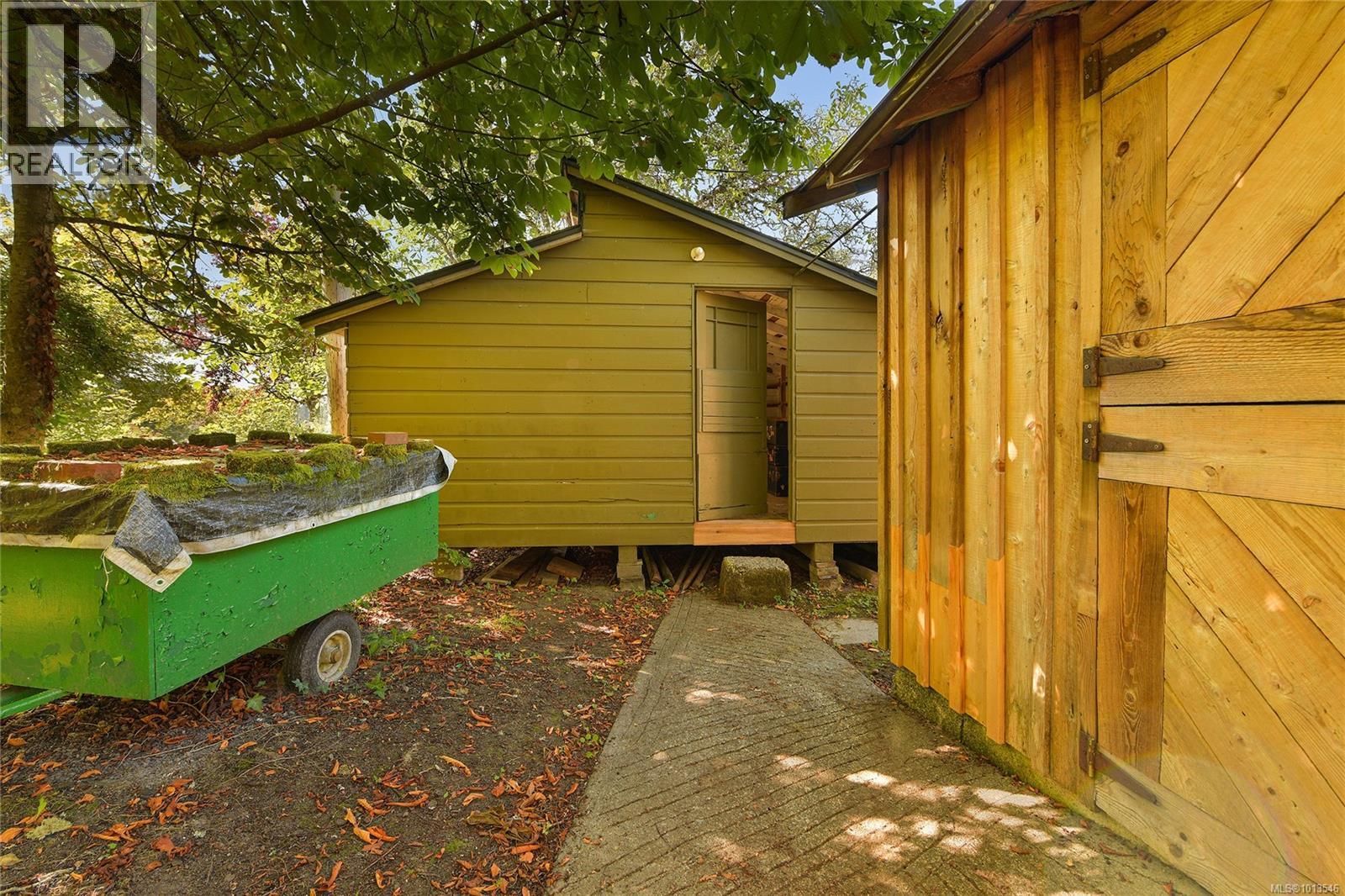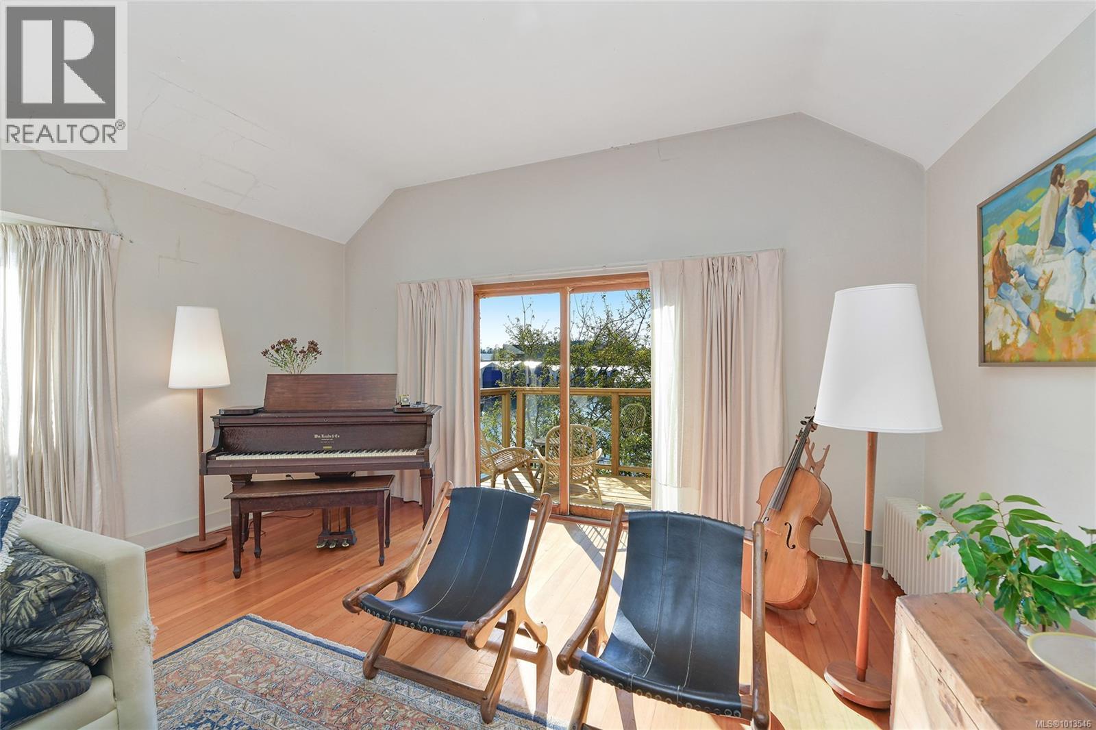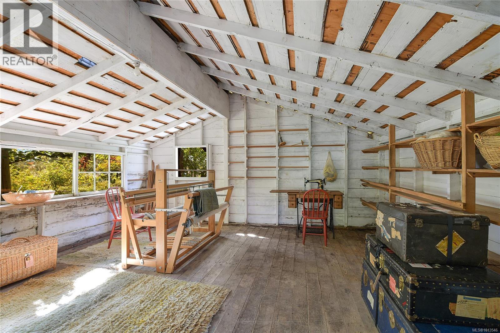 Two acre unique waterfront with a character home, private dock, orchard, stable, workshop and cottage. Rich in history and brimming with potential, this property offers many opportunities, including subdivision possibilities or simply enjoying the private sanctuary. In the same family for over 50 years, this historic gem captures your heart the moment you arrive. Originally built in 1934 for Esther Tryon,the home is perfectly situated on the lot for views and sunshine! The view along with the local sandstone rock garden and perennial borders, set the stage for the main house.This 1930s period home, designed by renowned architect Hubert Savage features distinctive cedar curved eaves reminiscent of thatched roofs and is perched on a promontory overlooking the bay with south-facing views. From the dock, your waterfront adventures to Tsehum Harbour & the Gulf Islands await. The house is beautifully integrated into the lush landscape, offering a skylit breakfast room, a charming 1930s kitchen, and a living room with sweeping views of the bay. A spacious music room, perfect for social gatherings, opens to a balcony for enjoying evening sun. The primary area includes a deco-style study with custom joinery, a private bathroom,and a cozy built-in day bed, all adjoining the main bedroom with views of the rose garden, personal bathroom, and a private library space. Upstairs, you'll find three sunny, country-style bedrooms and a bathroom centred around a shared living area.This is a rare opportunity to acquire a delightful period home, ready for you to expand your life and pursue your passions.Outbuildings, currently set up as pottery and weaving studios, could easily be converted back to hobby farm use or reimagined to suit your needs. The cottage, a quaint clapperboard house, is perfect for guests, relatives, or caretakers. Nestled among heritage apple, plum, and quince trees, this property invites you to create your own legacy in a truly magical setting. (id:2469)