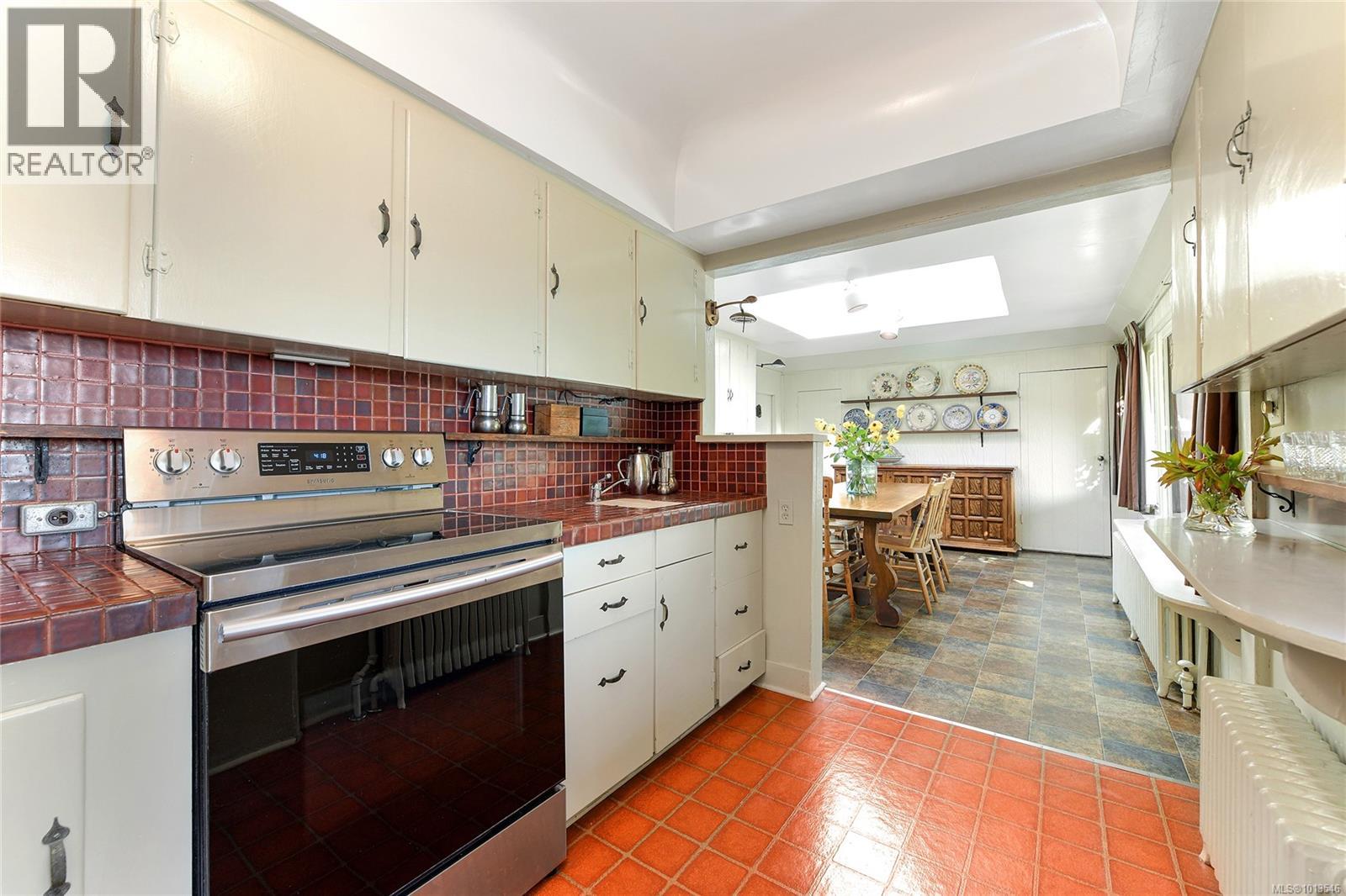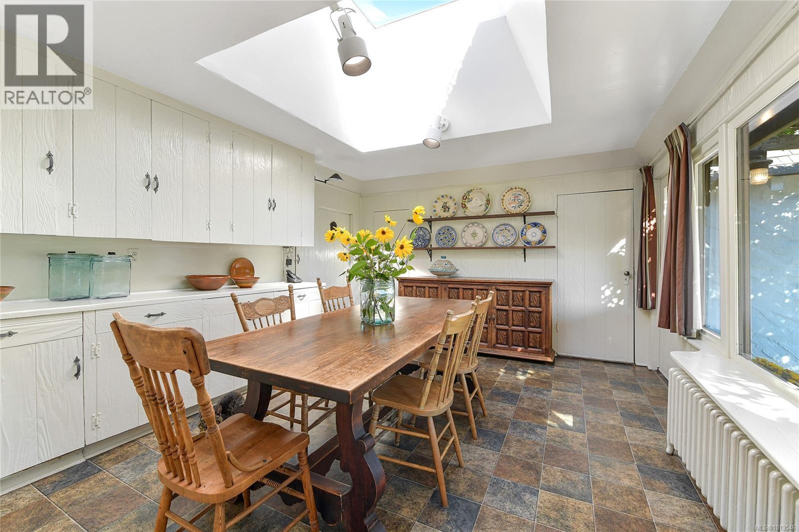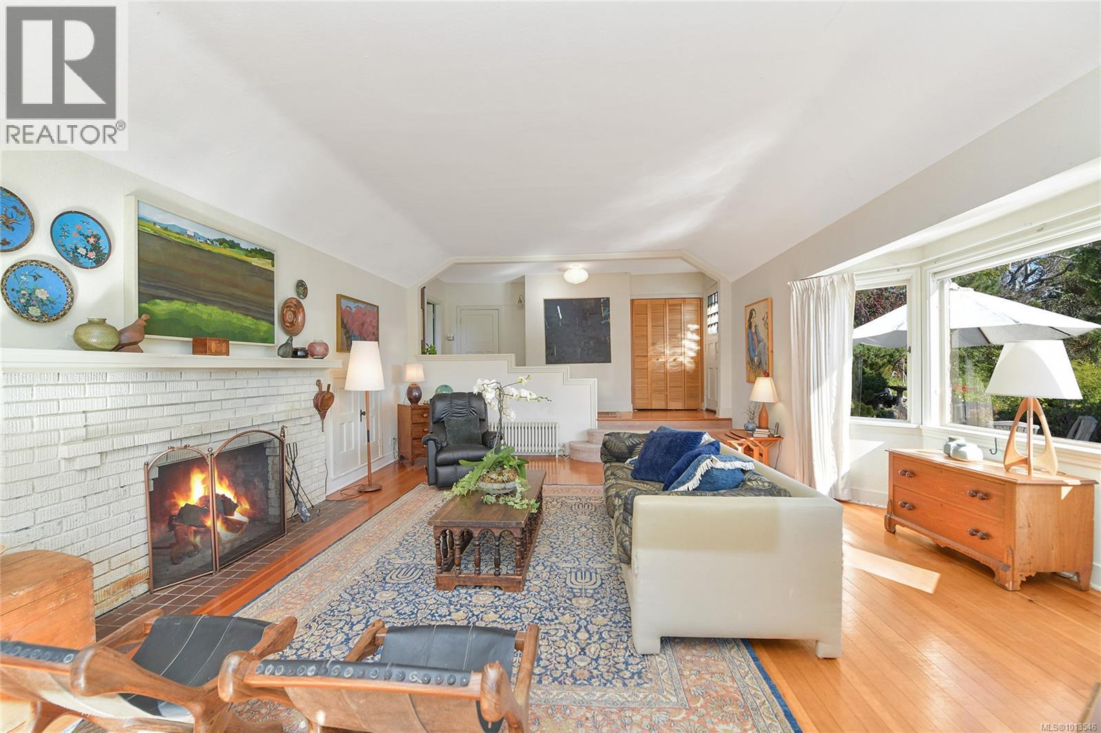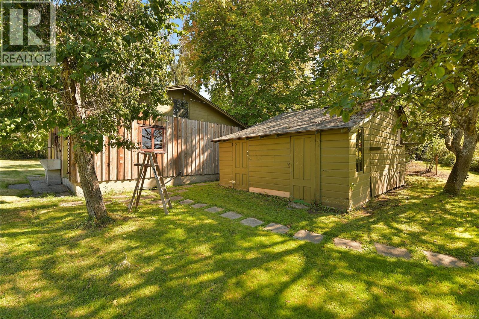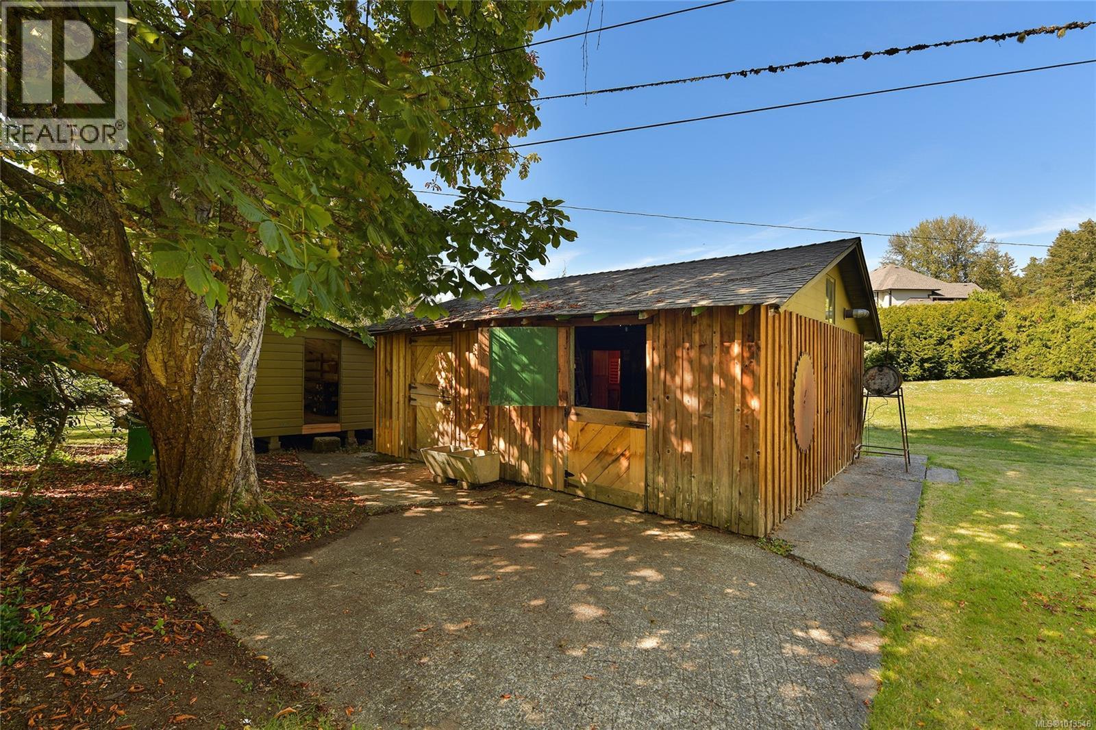 Two acre unique waterfront with a character home, private dock, orchard, stable, workshop and cottage. Rich in history and brimming with potential, this property offers many opportunities, including subdivision possibilities or simply enjoying the private sanctuary. In the same family for over 50 years, this historic gem captures your heart the moment you arrive. Originally built in 1934 for Esther Tryon,the home is perfectly situated on the lot for views and sunshine! The view along with the local sandstone rock garden and perennial borders, set the stage for the main house.This 1930s period home, designed by renowned architect Hubert Savage features distinctive cedar curved eaves reminiscent of thatched roofs and is perched on a promontory overlooking the bay with south-facing views. From the dock, your waterfront adventures to Tsehum Harbour & the Gulf Islands await. The house is beautifully integrated into the lush landscape, offering a skylit breakfast room, a charming 1930s kitchen, and a living room with sweeping views of the bay. A spacious music room, perfect for social gatherings, opens to a balcony for enjoying evening sun. The primary area includes a deco-style study with custom joinery, a private bathroom,and a cozy built-in day bed, all adjoining the main bedroom with views of the rose garden, personal bathroom, and a private library space. Upstairs, you'll find three sunny, country-style bedrooms and a bathroom centred around a shared living area.This is a rare opportunity to acquire a delightful period home, ready for you to expand your life and pursue your passions.Outbuildings, currently set up as pottery and weaving studios, could easily be converted back to hobby farm use or reimagined to suit your needs. The cottage, a quaint clapperboard house, is perfect for guests, relatives, or caretakers. Nestled among heritage apple, plum, and quince trees, this property invites you to create your own legacy in a truly magical setting. (id:2469)
