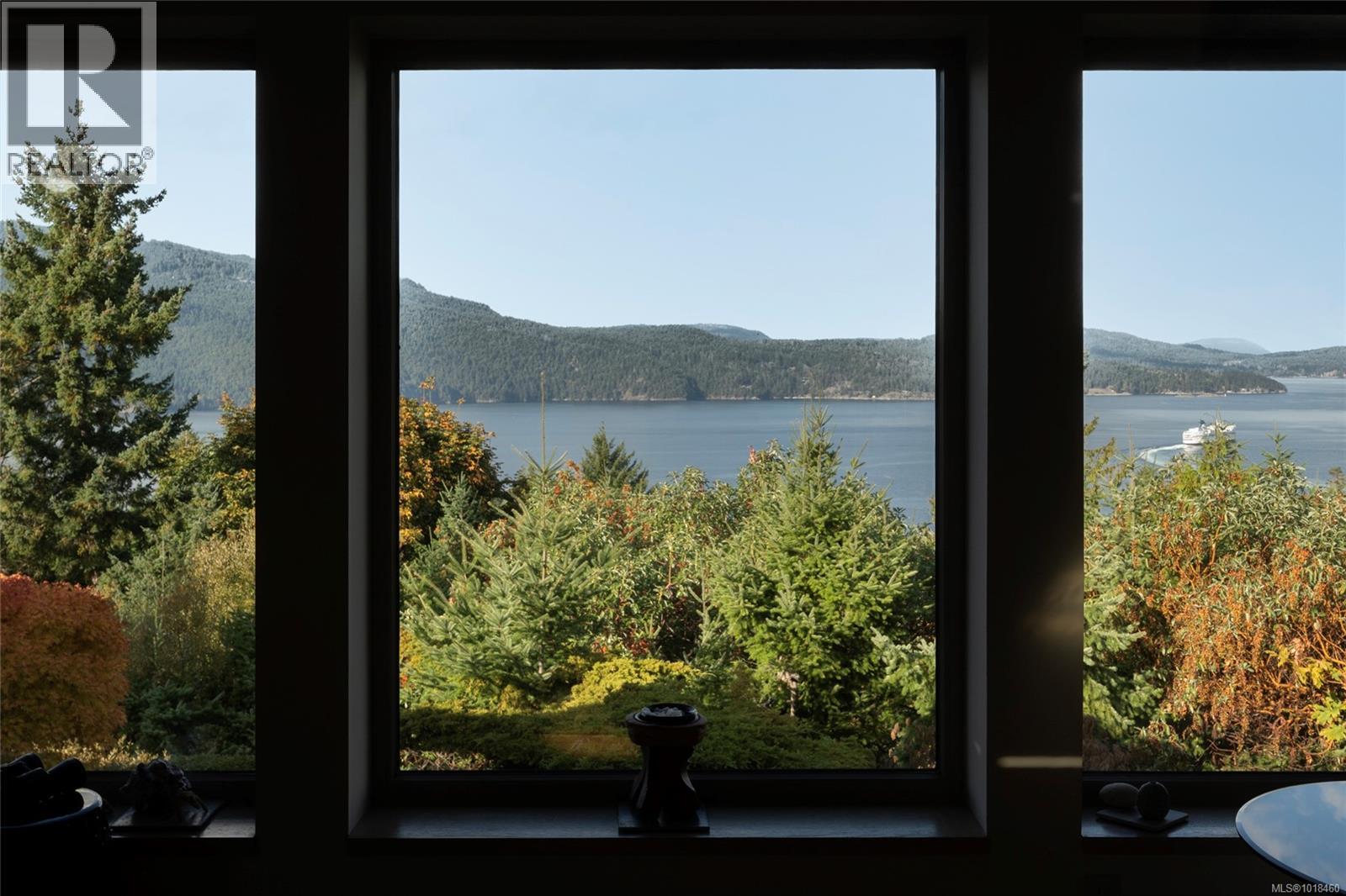 This exceptional residence, envisioned and designed by renowned Canadian architectural designer Klaus Hoffman, sits atop a beautifully elevated property offering sweeping 180° views of the Salish Sea—from Salt Spring Island to the distant mountains, & northward toward Maple Bay and Duncan. Carefully chosen for its light exposure & natural beauty, the home is immersed in tranquility & surrounded by nature. The home blends into its lush surroundings, with a mature, sculpted rock garden and landscape of Arbutus, Pine, Cedar, Eucalyptus & flowering trees—including Magnolia, Lilac, Rhodos, Roses, and Peonies. Backing onto Sycamore Park for added privacy, the grounds also feature a tranquil water pond, fenced vegetable garden, & a full irrigation system. A visionary custom structure, the house was constructed with architectural precision, utilizing a reinforced frame to reduce EMF exposure & ensure enduring safety on its rocky foundation. Inside, bamboo flooring, EuroLine windows & doors, and radiant floor hot water heating set a refined tone. The gourmet kitchen, crafted by an award-winning designer, includes rift-cut oak cabinetry, granite counters, double convection ovens, a Dacor cooktop, and Miele dishwasher. A wine room, private office, and bar add functionality and elegance. The home also includes a private 1-bedroom suite with full kitchen, laundry, and private entrance—ideal for guests or extended family. Additional upgrades include a new certified asphalt roof (2023), eight skylights, new interior paint on main level (2025), EV charger with monitor, whole-home & garage surge protectors, propane fireplace, hot water tanks (2025), professional landscaping & an advanced security system & direct fire alarm. Located just minutes to the ferry, airport, highway & the town of Sidney, this rare offering combines privacy, design pedigree, and breathtaking views in one of North Saanich’s most desirable settings. Zoning allows for an additional guest or caregiver cottage. (id:2469)
