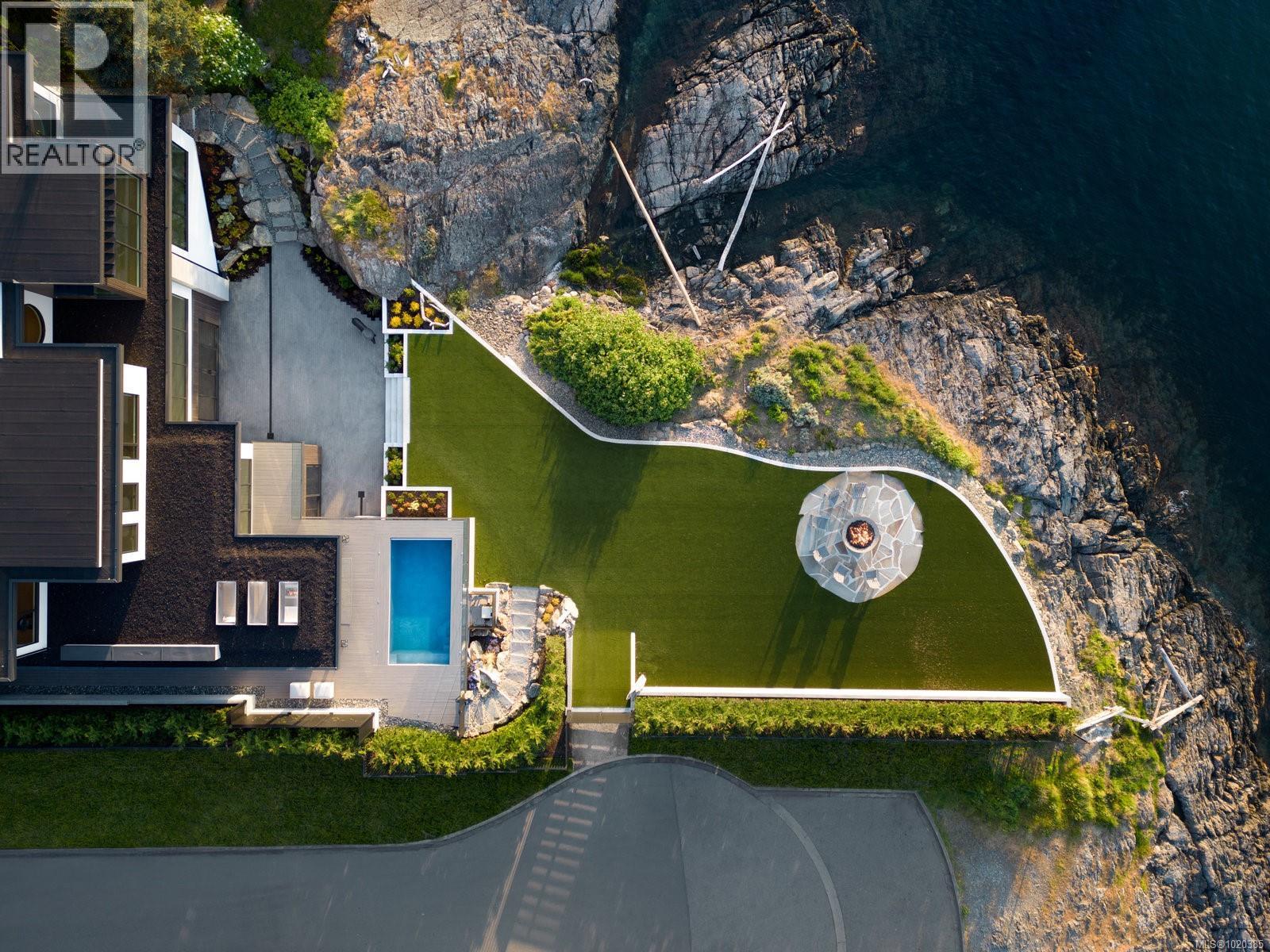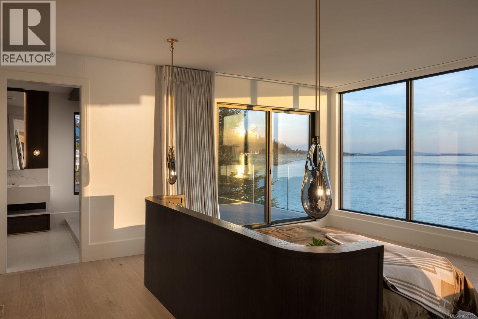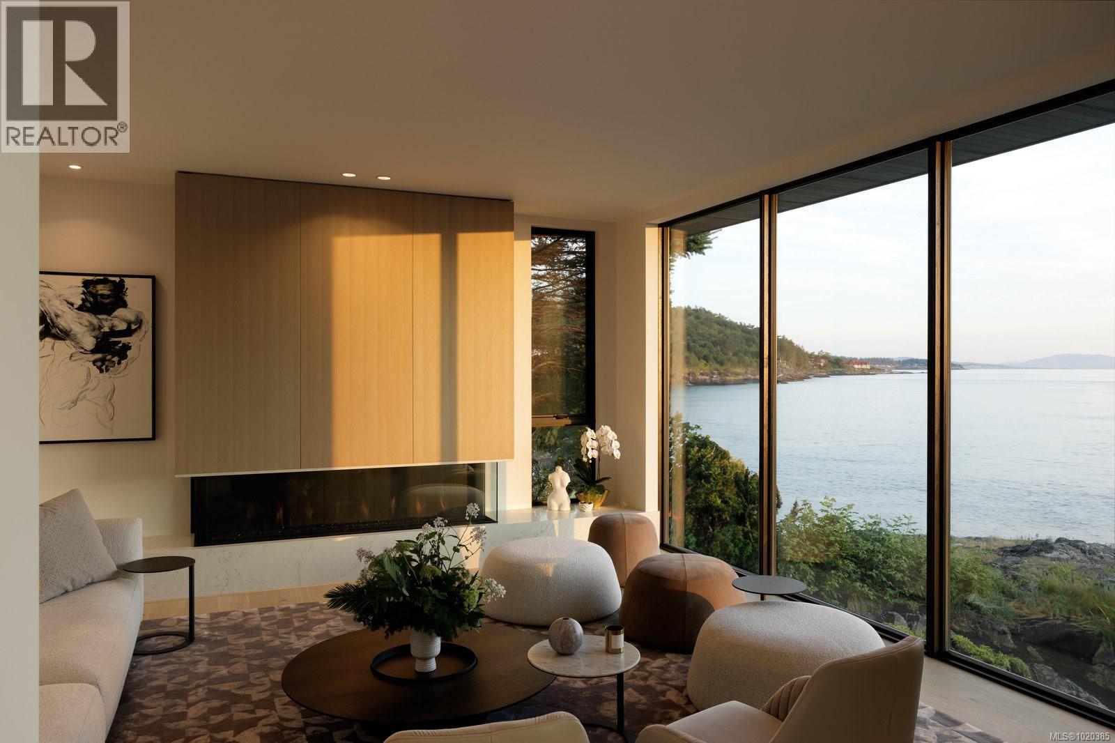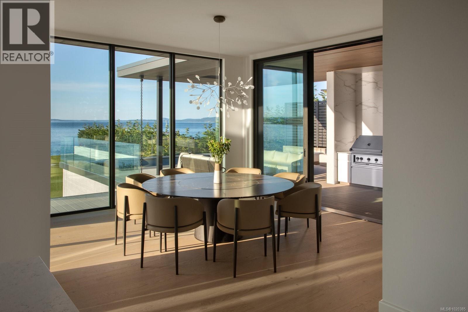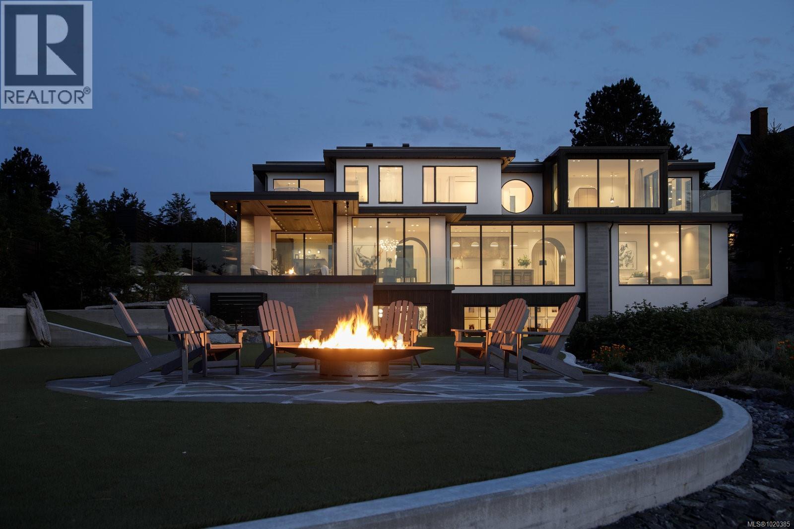 Experience Unparalleled Luxury at Vista del Mare. Perfectly positioned on over half an acre of prime waterfront in the prestigious Ten Mile Point, this architectural masterpiece by Robert Blaney, brought to life by Terry Johal Developments, promises to leave you breathless. Winner of 4 CARE Awards, including Best Single Family Detached Home, Best Innovative Feature, Best Primary Suite and Best Custom Millwork. Step into grandeur with 10-foot ceilings and a show-stopping steel and white oak floating spiral staircase that sets the tone for the rest of this captivating home. The expansive floor-to-ceiling windows on all three levels not only flood the interior with natural light but also offer uninterrupted views of Haro Strait and San Juan Island, making every room a visual delight. The neutral colour palette, accented by targeted designer lighting, creates an ambiance that is both clean and invigorating. The main floor's open-plan design maximizes these ocean views, seamlessly integrating the living, dining, and kitchen areas for effortless entertaining and everyday living. The sky-lit covered patio, adjacent to your complete outdoor kitchen with a deluxe Hestan grill and Fontana Forni pizza oven - imported from Italy- allows for al fresco dining with the backdrop of stunning seascapes, with the occasional killer whale and aurora borealis sighting. Enjoy a dip in the heated pool, followed by a rinse in the outdoor shower. Car enthusiasts will appreciate the attached three-car garage, equipped with two vehicle elevators. Above the garage, a separate, well-insulated guest suite offers a private living area, bedroom, and full bath. (id:2469)