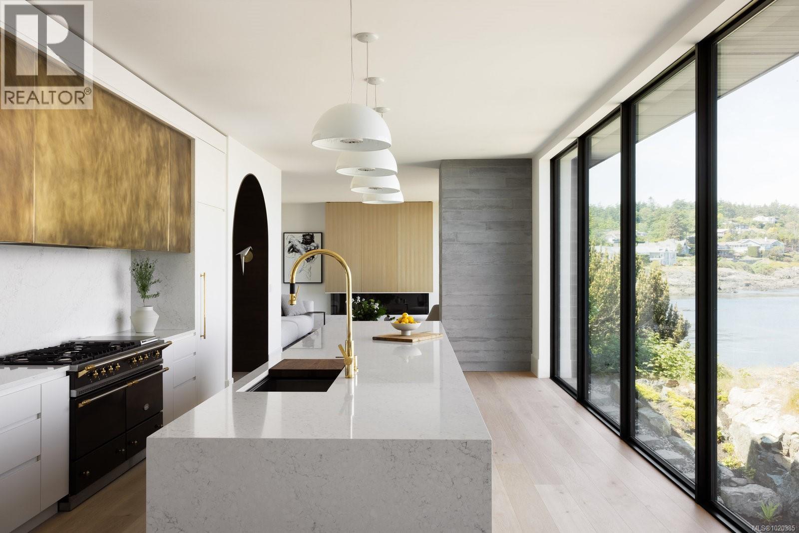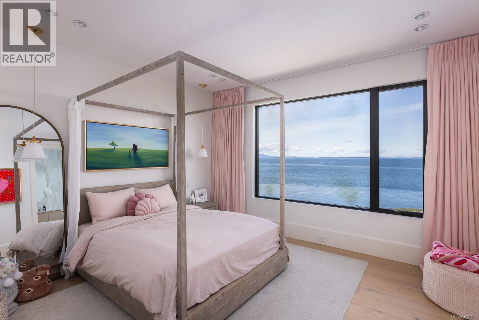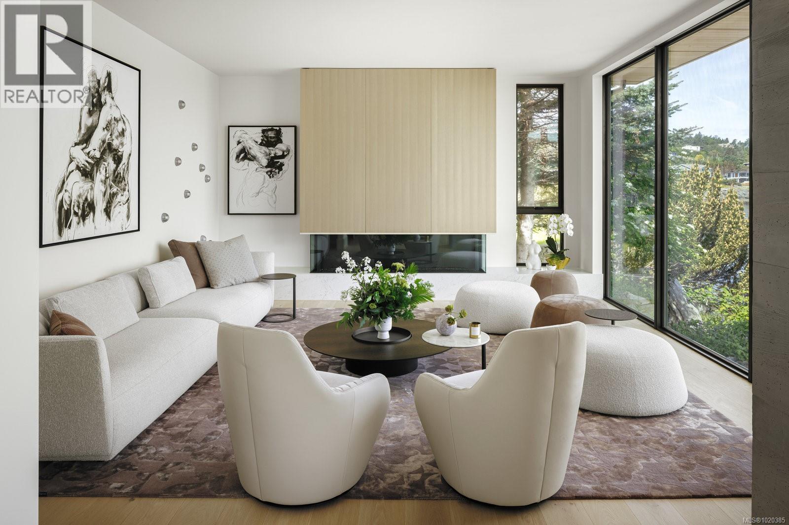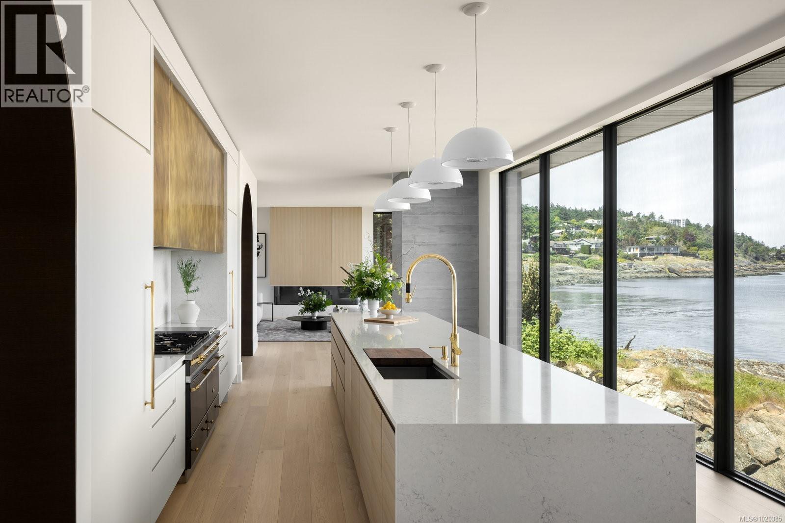Experience Unparalleled Luxury at Vista del Mare. Perfectly positioned on over half an acre of prime waterfront in the prestigious Ten Mile Point, this architectural masterpiece by Robert Blaney, brought to life by Terry Johal Developments, promises to leave you breathless. Winner of 4 CARE Awards, including Best Single Family Detached Home, Best Innovative Feature, Best Primary Suite and Best Custom Millwork. Step into grandeur with 10-foot ceilings and a show-stopping steel and white oak floating spiral staircase that sets the tone for the rest of this captivating home. The expansive floor-to-ceiling windows on all three levels not only flood the interior with natural light but also offer uninterrupted views of Haro Strait and San Juan Island, making every room a visual delight. The neutral colour palette, accented by targeted designer lighting, creates an ambiance that is both clean and invigorating. The main floor's open-plan design maximizes these ocean views, seamlessly integrating the living, dining, and kitchen areas for effortless entertaining and everyday living. The sky-lit covered patio, adjacent to your complete outdoor kitchen with a deluxe Hestan grill and Fontana Forni pizza oven - imported from Italy- allows for al fresco dining with the backdrop of stunning seascapes, with the occasional killer whale and aurora borealis sighting. Enjoy a dip in the heated pool, followed by a rinse in the outdoor shower. Car enthusiasts will appreciate the attached three-car garage, equipped with two vehicle elevators. Above the garage, a separate, well-insulated guest suite offers a private living area, bedroom, and full bath. (id:2469)