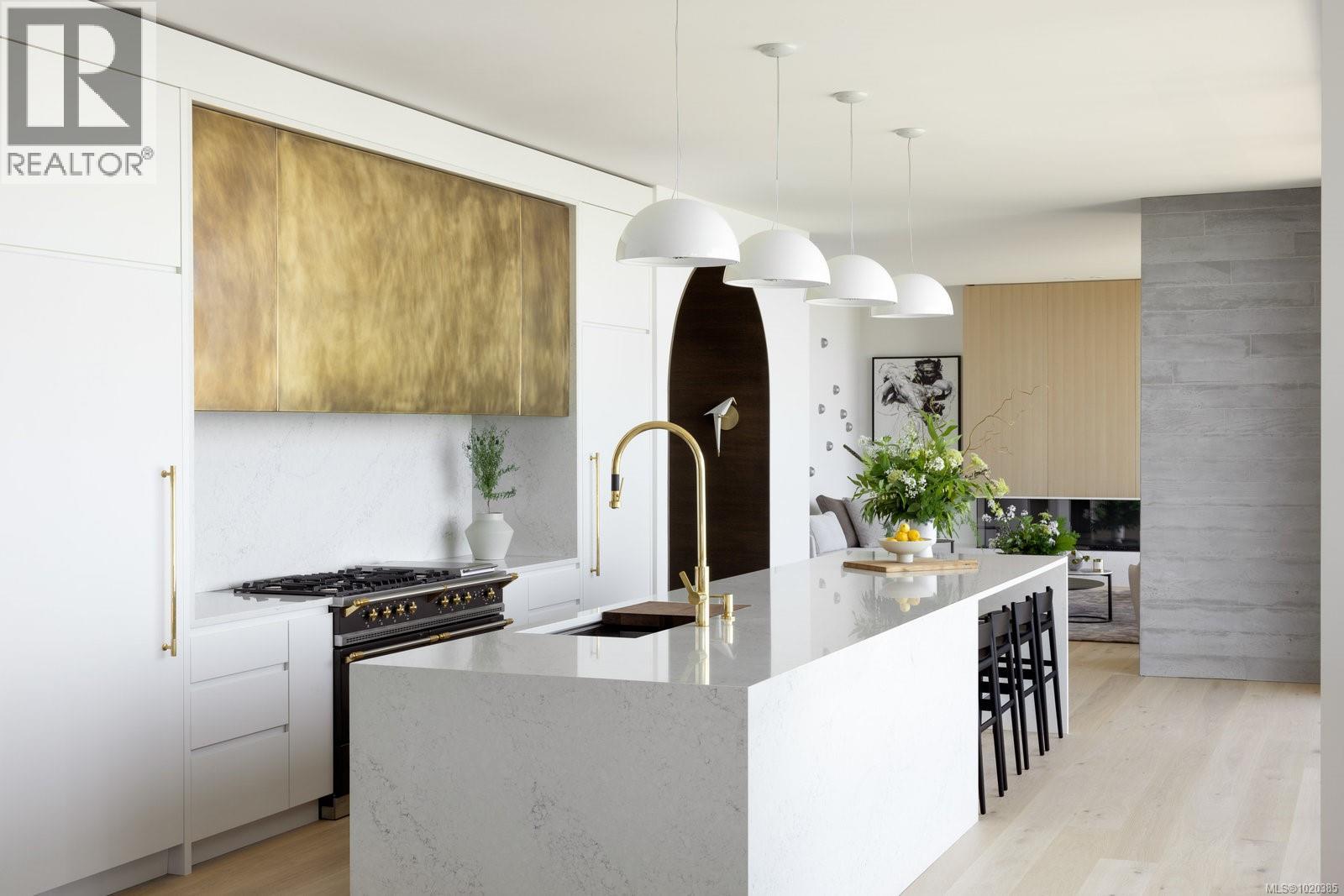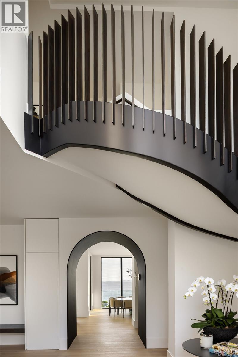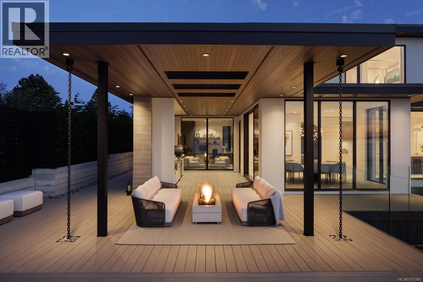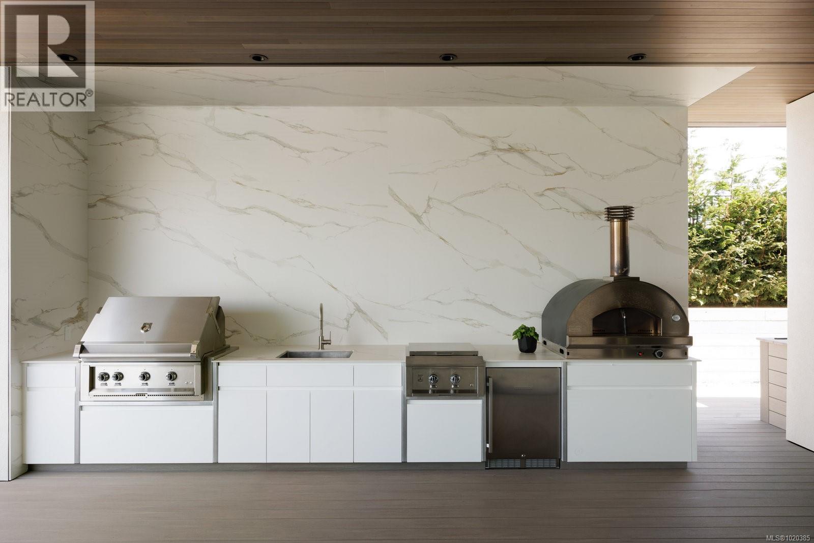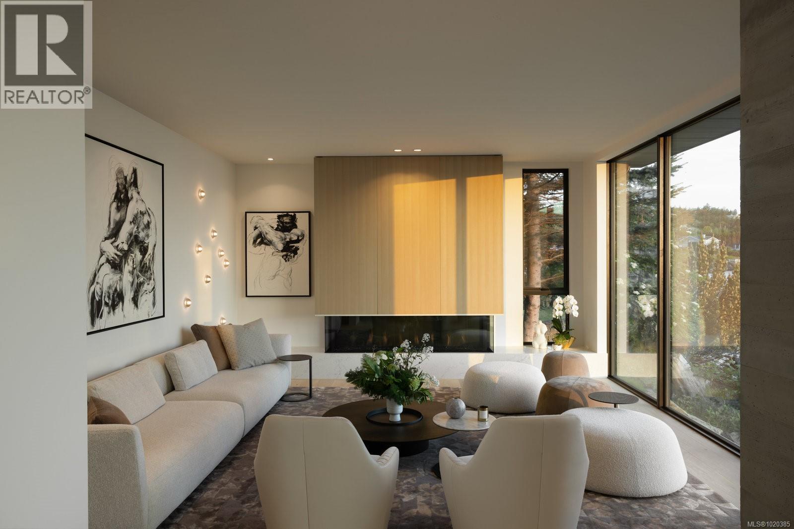 Experience Unparalleled Luxury at Vista del Mare. Perfectly positioned on over half an acre of prime waterfront in the prestigious Ten Mile Point, this architectural masterpiece by Robert Blaney, brought to life by Terry Johal Developments, promises to leave you breathless. Winner of 4 CARE Awards, including Best Single Family Detached Home, Best Innovative Feature, Best Primary Suite and Best Custom Millwork. Step into grandeur with 10-foot ceilings and a show-stopping steel and white oak floating spiral staircase that sets the tone for the rest of this captivating home. The expansive floor-to-ceiling windows on all three levels not only flood the interior with natural light but also offer uninterrupted views of Haro Strait and San Juan Island, making every room a visual delight. The neutral colour palette, accented by targeted designer lighting, creates an ambiance that is both clean and invigorating. The main floor's open-plan design maximizes these ocean views, seamlessly integrating the living, dining, and kitchen areas for effortless entertaining and everyday living. The sky-lit covered patio, adjacent to your complete outdoor kitchen with a deluxe Hestan grill and Fontana Forni pizza oven - imported from Italy- allows for al fresco dining with the backdrop of stunning seascapes, with the occasional killer whale and aurora borealis sighting. Enjoy a dip in the heated pool, followed by a rinse in the outdoor shower. Car enthusiasts will appreciate the attached three-car garage, equipped with two vehicle elevators. Above the garage, a separate, well-insulated guest suite offers a private living area, bedroom, and full bath. (id:2469)