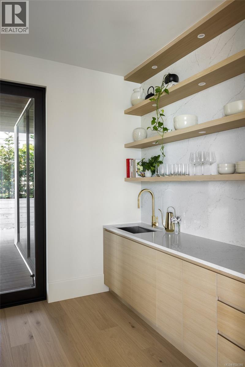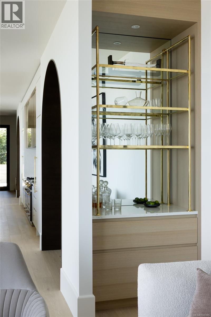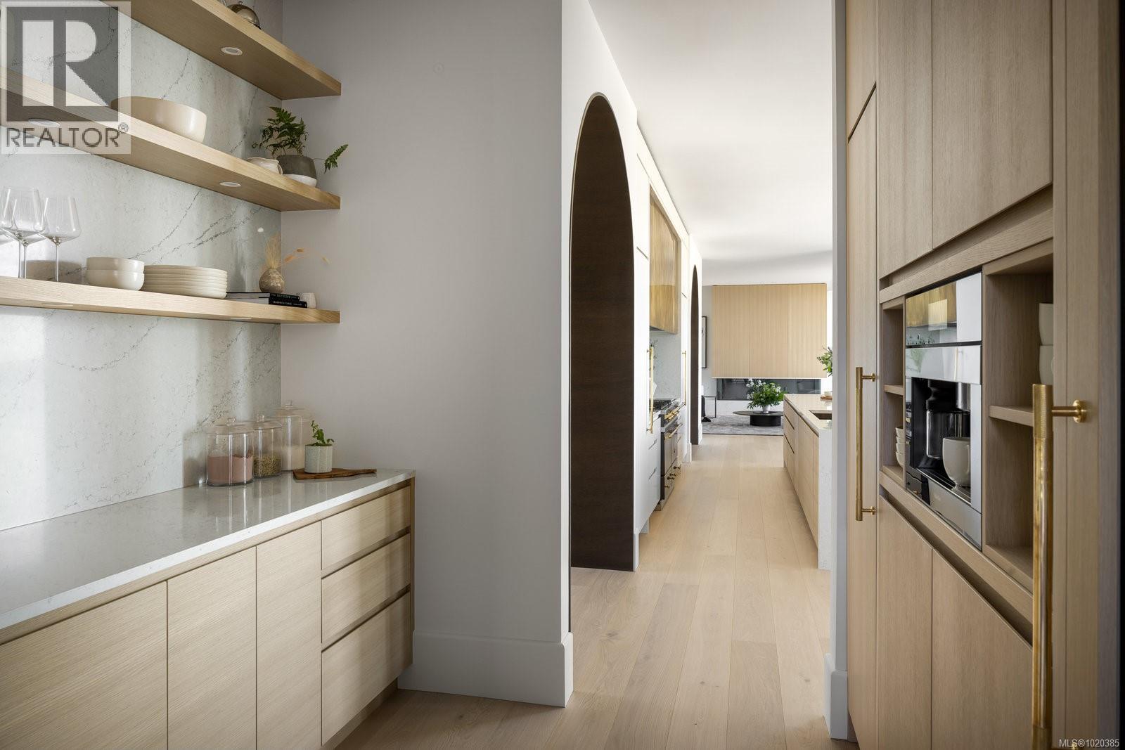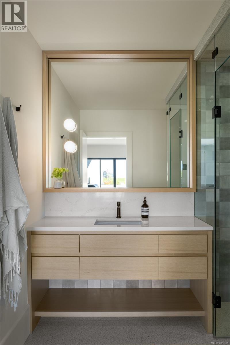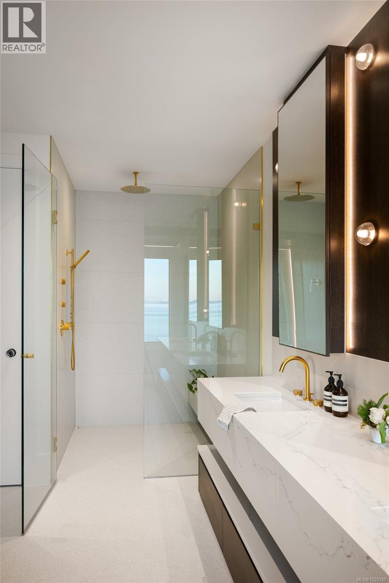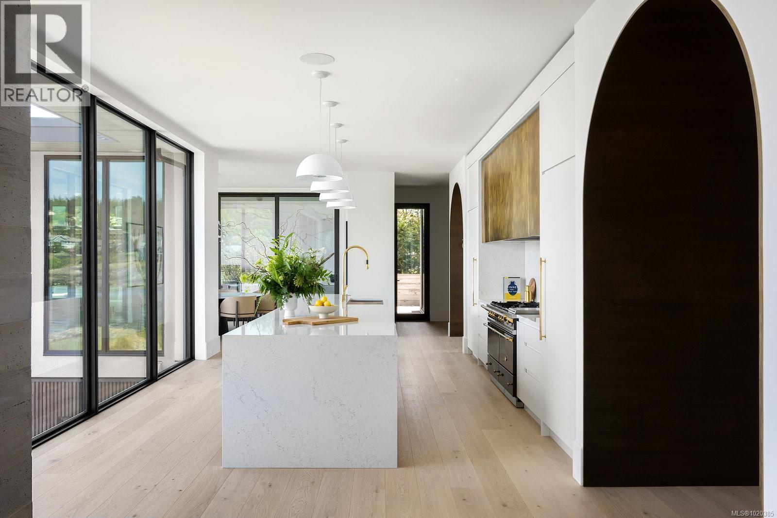 Experience Unparalleled Luxury at Vista del Mare. Perfectly positioned on over half an acre of prime waterfront in the prestigious Ten Mile Point, this architectural masterpiece by Robert Blaney, brought to life by Terry Johal Developments, promises to leave you breathless. Winner of 4 CARE Awards, including Best Single Family Detached Home, Best Innovative Feature, Best Primary Suite and Best Custom Millwork. Step into grandeur with 10-foot ceilings and a show-stopping steel and white oak floating spiral staircase that sets the tone for the rest of this captivating home. The expansive floor-to-ceiling windows on all three levels not only flood the interior with natural light but also offer uninterrupted views of Haro Strait and San Juan Island, making every room a visual delight. The neutral colour palette, accented by targeted designer lighting, creates an ambiance that is both clean and invigorating. The main floor's open-plan design maximizes these ocean views, seamlessly integrating the living, dining, and kitchen areas for effortless entertaining and everyday living. The sky-lit covered patio, adjacent to your complete outdoor kitchen with a deluxe Hestan grill and Fontana Forni pizza oven - imported from Italy- allows for al fresco dining with the backdrop of stunning seascapes, with the occasional killer whale and aurora borealis sighting. Enjoy a dip in the heated pool, followed by a rinse in the outdoor shower. Car enthusiasts will appreciate the attached three-car garage, equipped with two vehicle elevators. Above the garage, a separate, well-insulated guest suite offers a private living area, bedroom, and full bath. (id:2469)