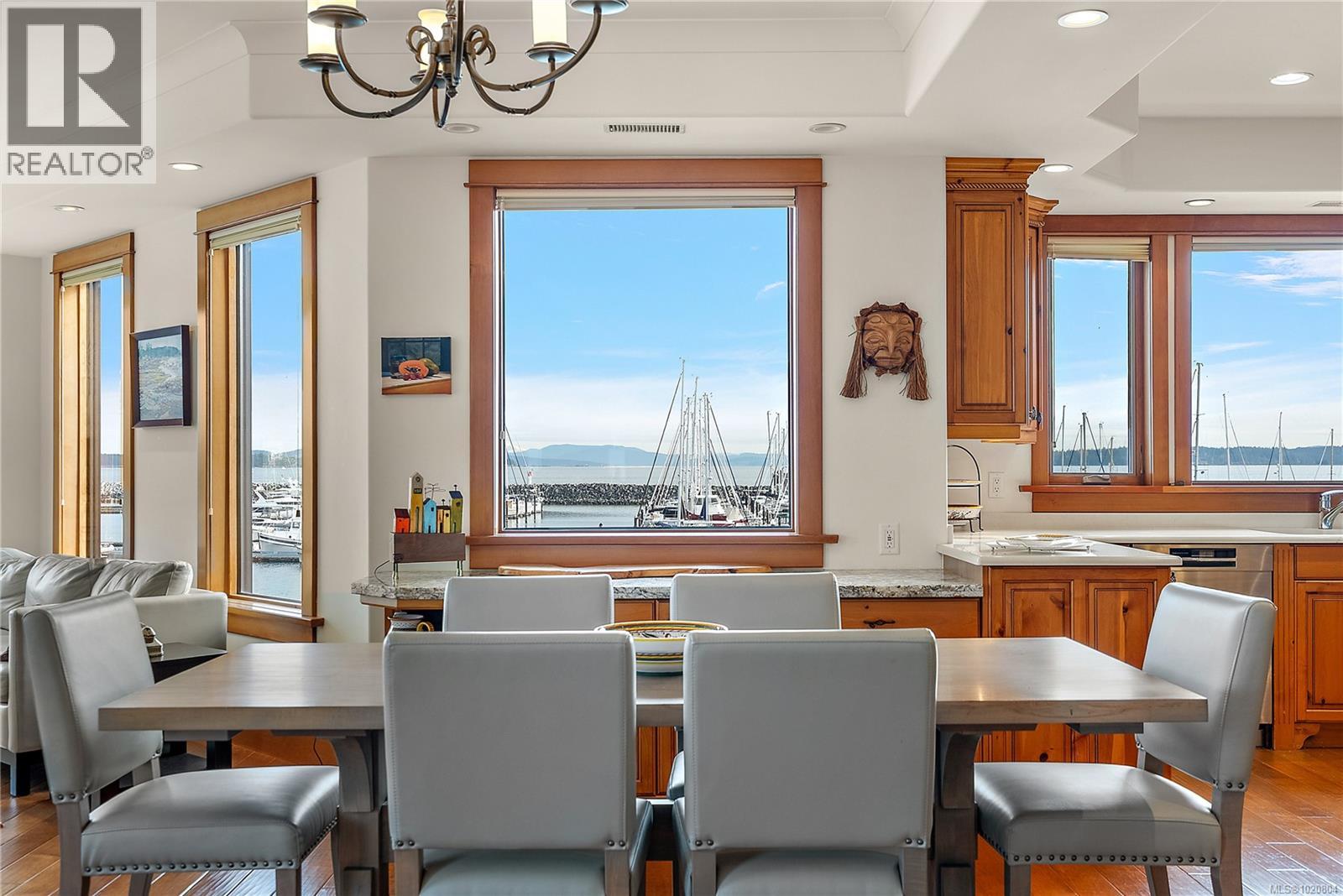 Exceptional Waterfront Living in the Heart of Sidney! This custom-built, one-owner waterfront half duplex offers over 2,800 sq. ft. of luxurious living, designed and constructed in 2007 to above-average standards and commercial-grade specifications. Designed for the owner to age in place, this remarkable home includes an elevator providing easy access between both levels, making it ideal for those seeking convenience, accessibility, and long-term comfort. Every detail of this home exudes quality. Step inside and be captivated by breathtaking views of the marina, Mt. Baker, and the ever-changing marine activity from nearly every room. The chef’s kitchen is a culinary masterpiece, featuring custom-built cabinetry, a Wolf dual-fuel range, wine fridge, and a Tuscan-inspired design that blends warmth and sophistication. The spacious floor plan offers 3 bedrooms and 2.5 bathrooms, including a beautiful primary suite that opens to the waterfront. A private wine cellar adds to the home’s appeal, as does the massive 1,300+ sq. ft. interlocking brick patio—perfect for entertaining, gardening, or simply relaxing by the sea. Enjoy covered outdoor dining with built-in gas heaters and speakers, allowing for year-round enjoyment of this exceptional seaside setting. This property’s thoughtful layout makes it ideal for a home-based business, a live-in caregiver, or multi-generational living, offering both privacy and flexibility. Located steps from Sidney’s vibrant downtown, you’ll love being within easy reach of shops, restaurants, cafés, brew pubs, the cinema, and all the charm this seaside community offers. Homes of this caliber are rarely available. Experience waterfront living beyond compare. A truly special home within an exceptional building—crafted with care, designed for comfort, and positioned for breathtaking beauty. (id:2469)