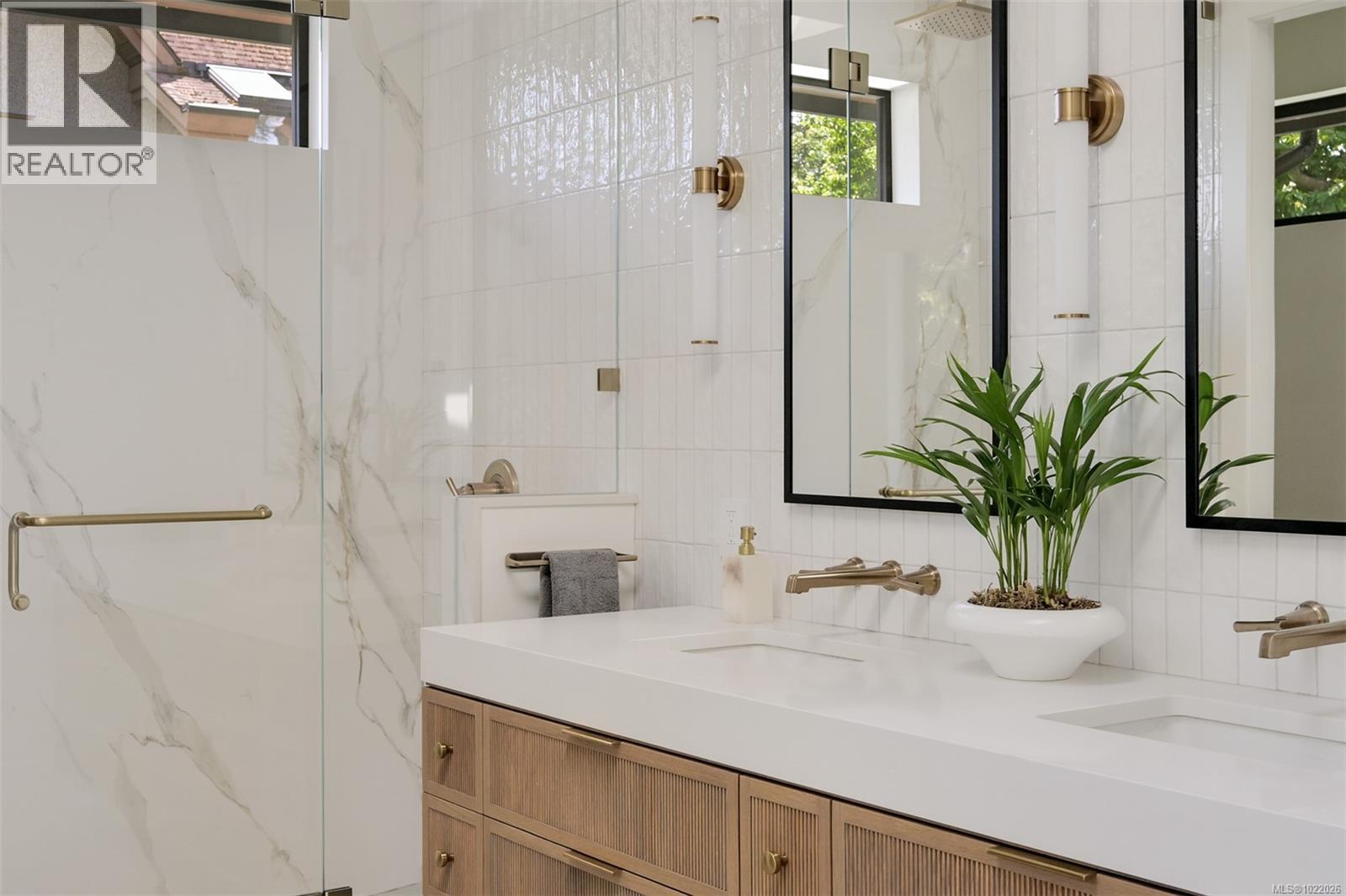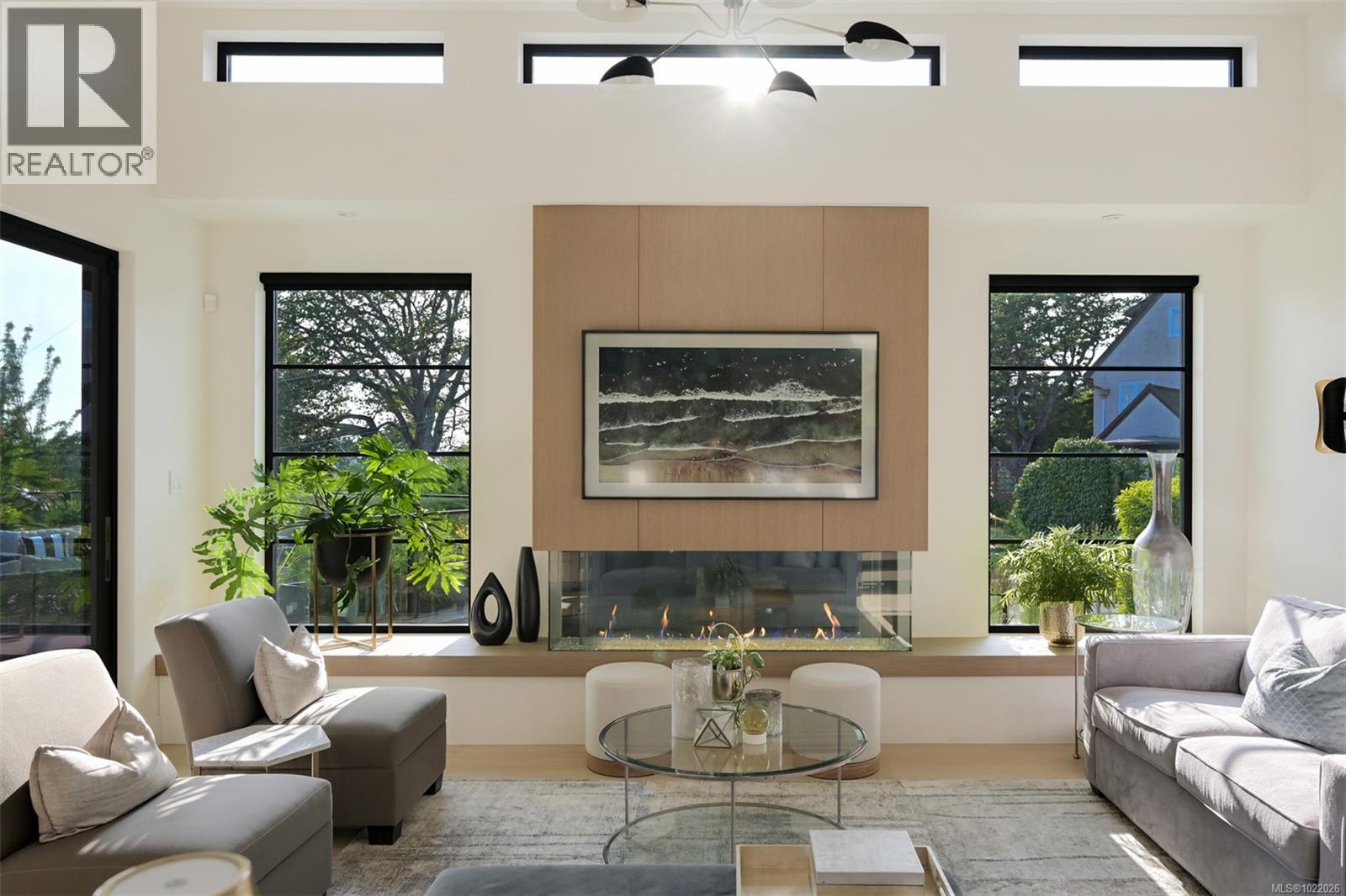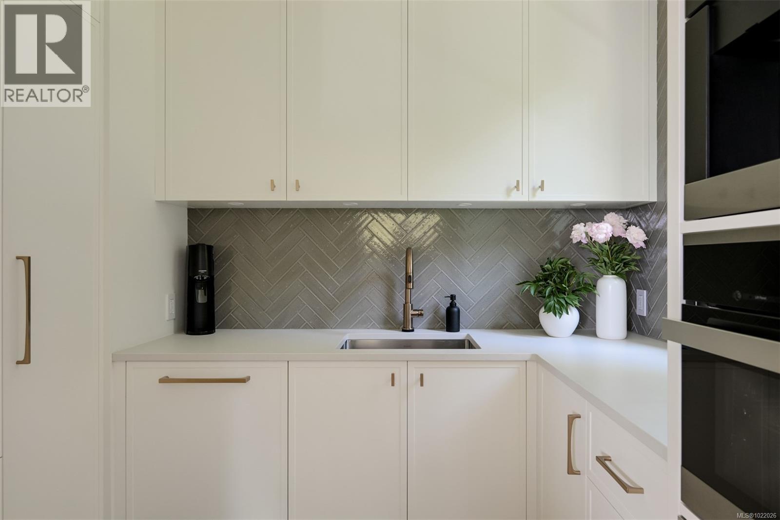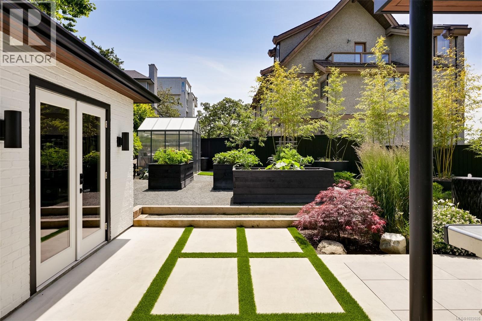 Architectural Sophistication in Prestigious Rockland Positioned in the heart of historic Rockland in a park-like setting, this 4,500 sq. ft. custom-built residence is a masterclass in contemporary design & refined craftsmanship. Built by Coast Prestige Homes & designed by Robert Blaney Design, this 5-bed, 5-bath home blends timeless luxury w/modern livability in one of Victoria’s most desirable neighbourhoods. Set on a beautifully landscaped property, the home makes a bold first impression w/its clean architectural lines & surrounding greenery. Inside, expansive windows flood the interiors w/light, enhancing the home's airy flow & sophisticated aesthetic. A striking gas fireplace anchors the main living area, where elegance meets everyday comfort. The gourmet kitchen is a chef’s dream, featuring a large central island, panel-ready Sub-Zero fridge, Wolf range, Miele steam oven & built-in coffee system, three sinks, dual Bosch dishwashers & a spacious walk-in pantry. A custom banquette dining area & adjacent bar —complete w/dual beverage fridges—elevate the entertaining experience. Seamlessly connected to the kitchen, a covered outdoor terrace offers year-round enjoyment w/patio heaters, lighting, integrated audio, plumbed gas for fire feature & BBQ & more. The fenced private yard includes beautiful gardens, architectural hardscaping, raised garden beds & a custom shed mirroring the home’s aesthetic. Upstairs, the primary suite is a luxurious sanctuary featuring ocean views, a private balcony, spa-inspired ensuite w/freestanding soaker tub, double rain shower, dual vanities, & his-and-hers dressing rooms. Two additional bedrooms, a designer bathroom, & a stylish laundry room complete the upper level. The lower level offers incredible versatility w/a flex room, gym, family room, full bath, & a custom mudroom w/direct access to the oversized double garage. A rare opportunity to own a custom residence of this caliber in an iconic Victoria location. (id:2469)