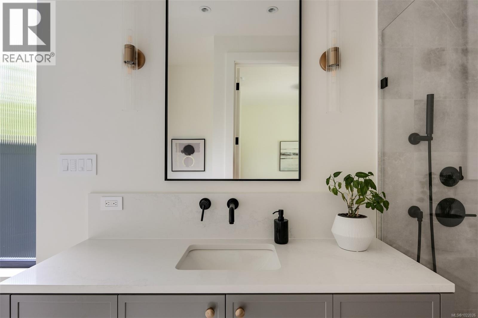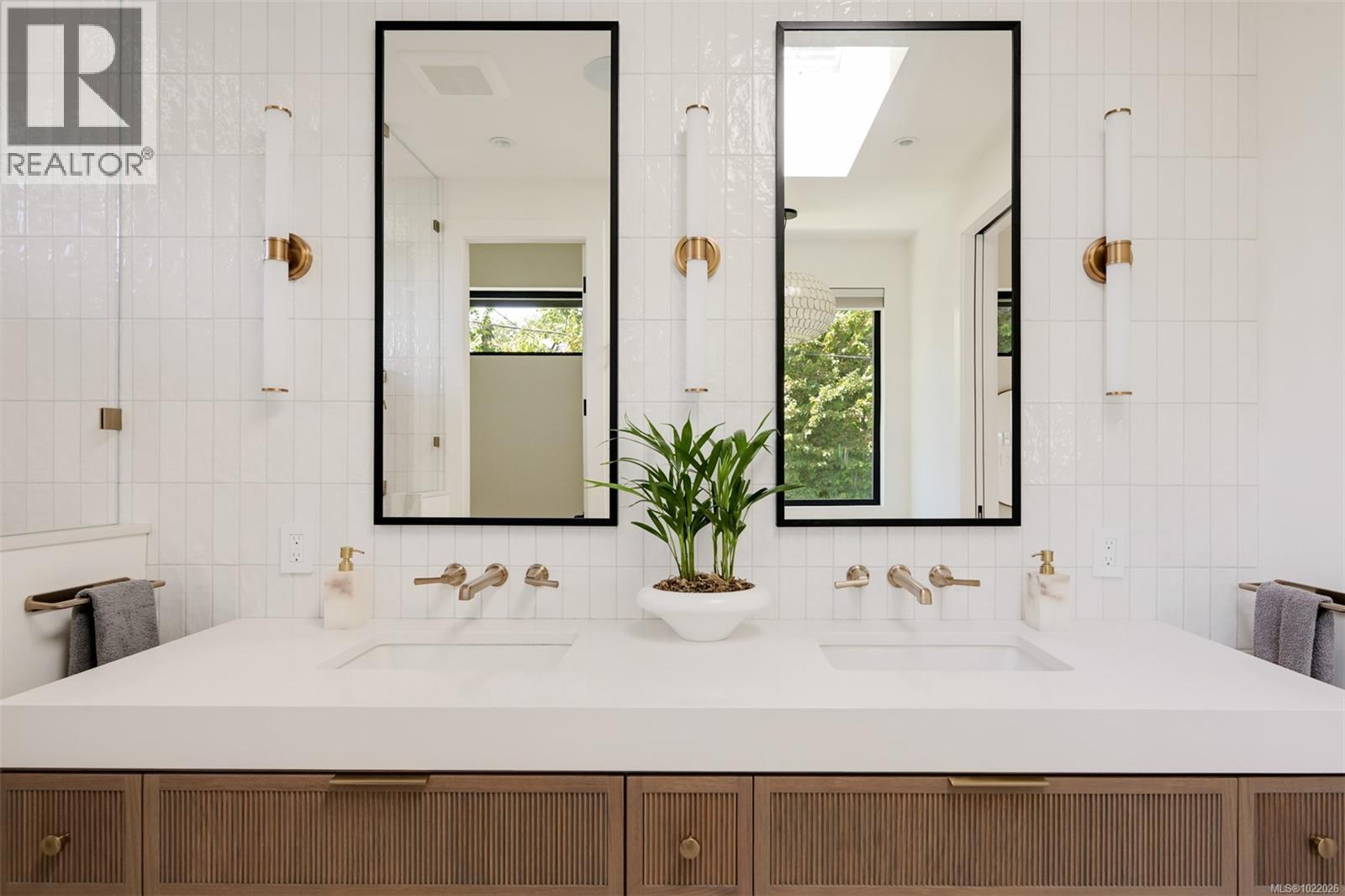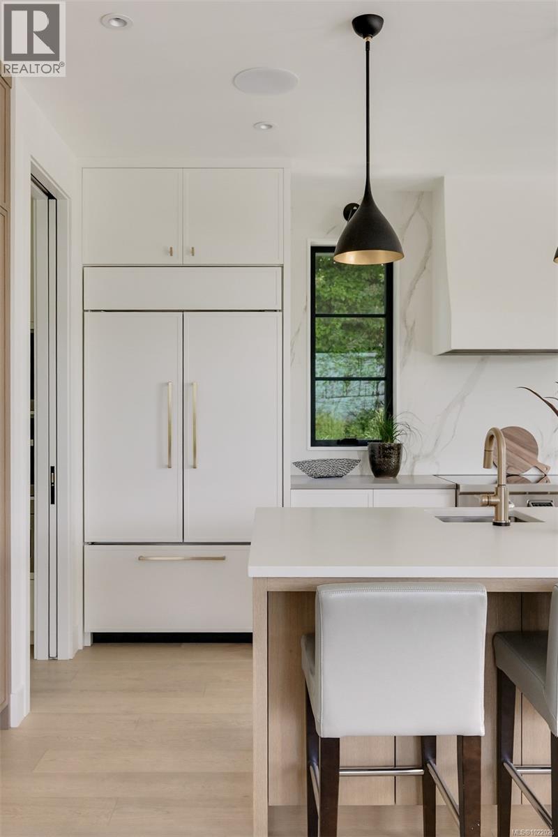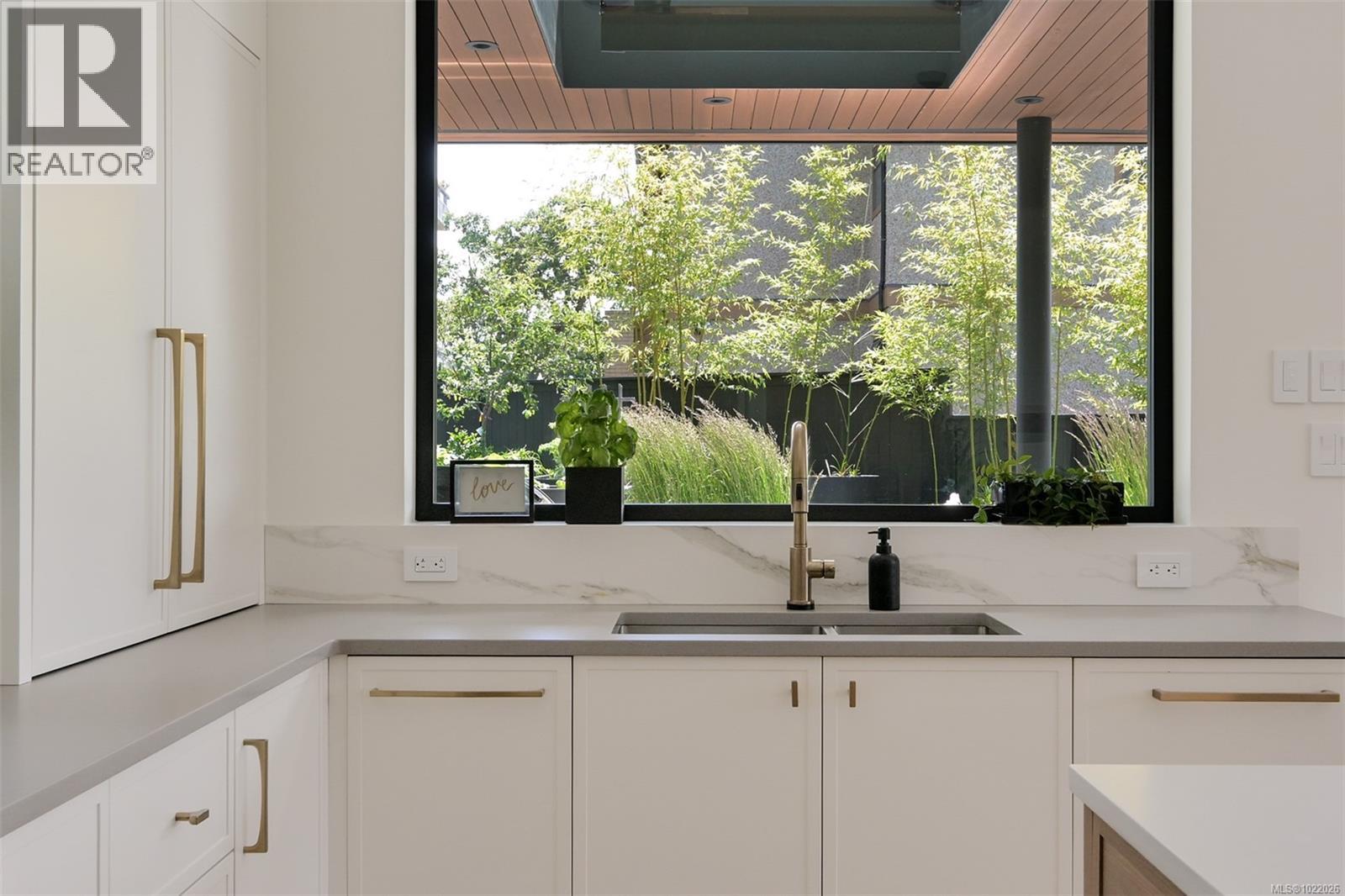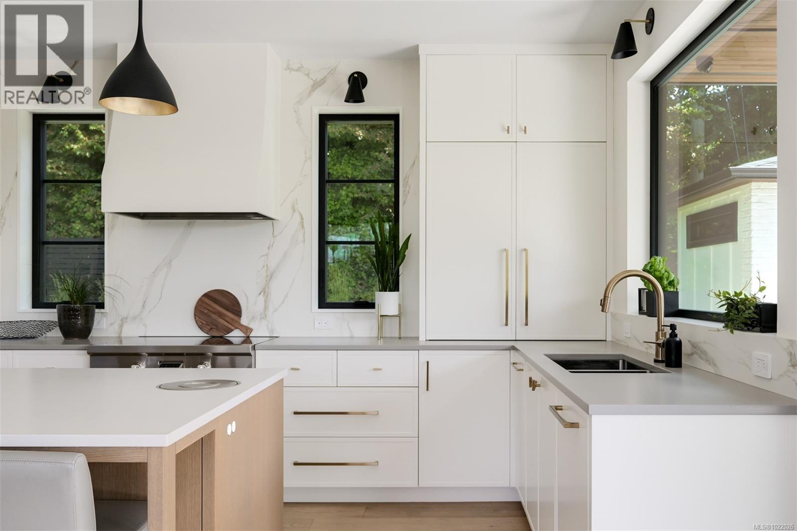 Architectural Sophistication in Prestigious Rockland Positioned in the heart of historic Rockland in a park-like setting, this 4,500 sq. ft. custom-built residence is a masterclass in contemporary design & refined craftsmanship. Built by Coast Prestige Homes & designed by Robert Blaney Design, this 5-bed, 5-bath home blends timeless luxury w/modern livability in one of Victoria’s most desirable neighbourhoods. Set on a beautifully landscaped property, the home makes a bold first impression w/its clean architectural lines & surrounding greenery. Inside, expansive windows flood the interiors w/light, enhancing the home's airy flow & sophisticated aesthetic. A striking gas fireplace anchors the main living area, where elegance meets everyday comfort. The gourmet kitchen is a chef’s dream, featuring a large central island, panel-ready Sub-Zero fridge, Wolf range, Miele steam oven & built-in coffee system, three sinks, dual Bosch dishwashers & a spacious walk-in pantry. A custom banquette dining area & adjacent bar —complete w/dual beverage fridges—elevate the entertaining experience. Seamlessly connected to the kitchen, a covered outdoor terrace offers year-round enjoyment w/patio heaters, lighting, integrated audio, plumbed gas for fire feature & BBQ & more. The fenced private yard includes beautiful gardens, architectural hardscaping, raised garden beds & a custom shed mirroring the home’s aesthetic. Upstairs, the primary suite is a luxurious sanctuary featuring ocean views, a private balcony, spa-inspired ensuite w/freestanding soaker tub, double rain shower, dual vanities, & his-and-hers dressing rooms. Two additional bedrooms, a designer bathroom, & a stylish laundry room complete the upper level. The lower level offers incredible versatility w/a flex room, gym, family room, full bath, & a custom mudroom w/direct access to the oversized double garage. A rare opportunity to own a custom residence of this caliber in an iconic Victoria location. (id:2469)