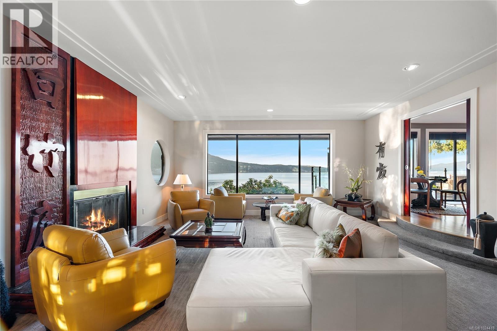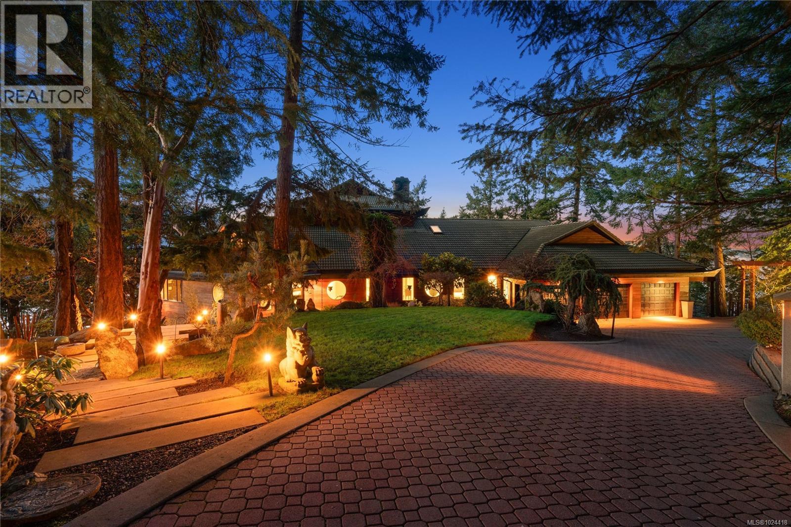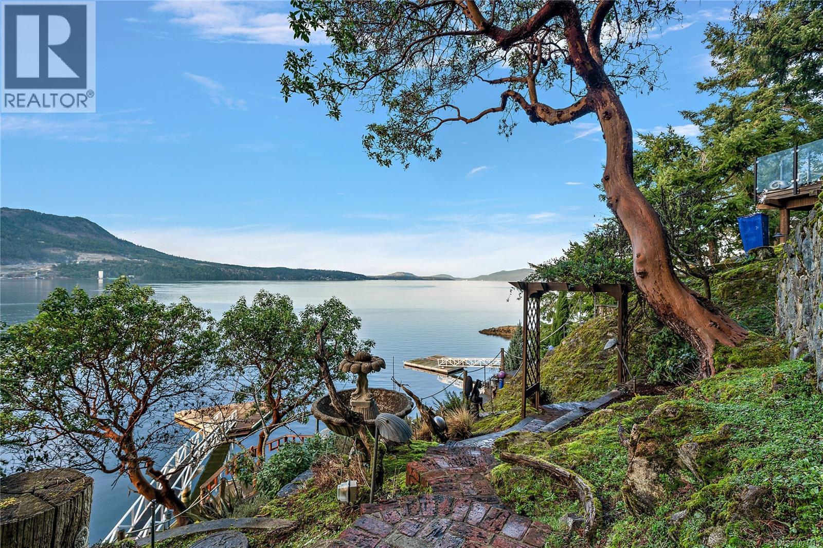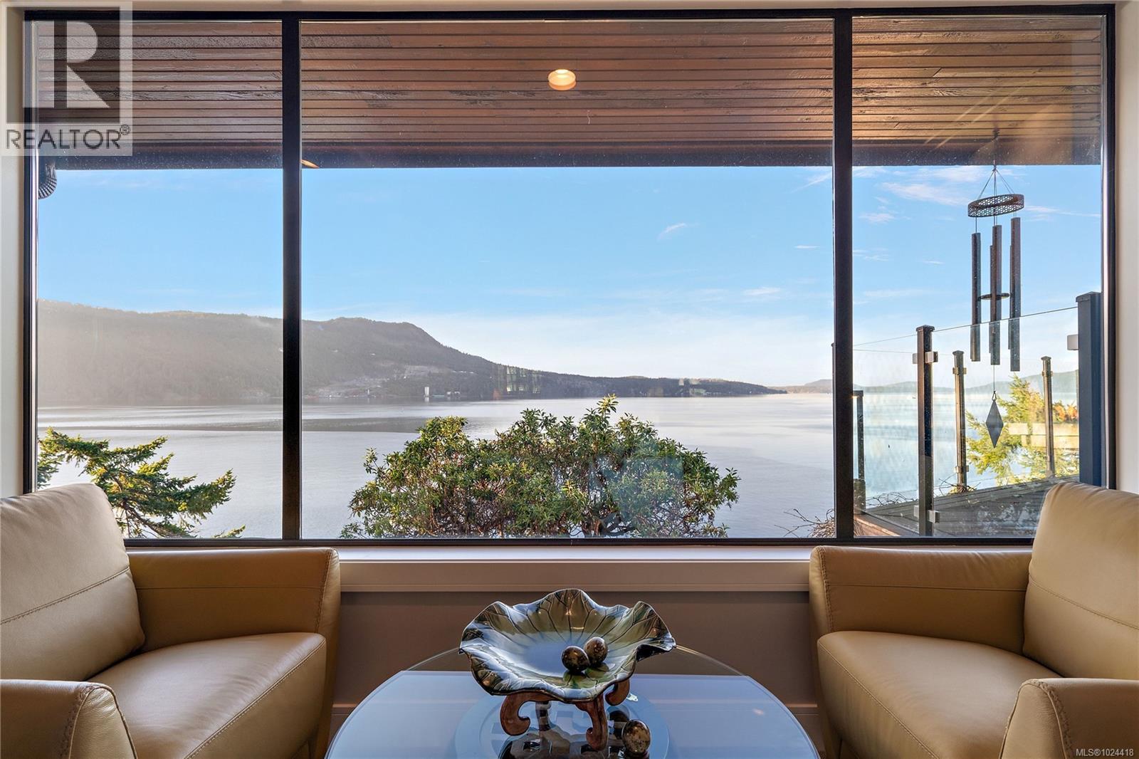 Discover this exceptional 3-bed, 4-bath, 7,091 sq ft custom-built waterfront estate on nearly an acre at the tip of Willis Point with a registered foreshore featuring a deep-water dock and slipway boat launch. Positioned to capture panoramic 180-degree Saanich Inlet views with west-facing exposure, this home bathes in natural light from sunrise to sunset. A grand 2-storey entrance greets you with a striking staircase and water feature setting a luxurious tone. Vaulted ceilings, floor-to-ceiling picture windows, and open-concept design create seamless indoor-outdoor living. Designer details include custom stone and millwork, refined crown molding, and luxurious finishes throughout. An entertainer's dream, the high-end chef's kitchen anchors the main level, where every principal room flows onto expansive decks overlooking protected inlet waters. The primary suite offers a private sanctuary with breathtaking views and spa-inspired ensuite. Lower level includes a media room, office, a kitchen and separate entrance making the addition of a suite simple. Meticulously terraced grounds provide easy waterfront access. The deep-water dock and slipway boat launch is perfect for kayaking, swimming, and boating. Tiered gardens with paver walkways showcase exceptional landscaping. Large accessory building accommodates RV/boat storage. Take advantage of the nearby wooded walking/biking trails, parks, lakes and beaches. This is more than a home—it's a lifestyle. An opportunity not to be missed for those seeking the ultimate in coastal luxury and year-round outdoor recreation. (id:2469)
