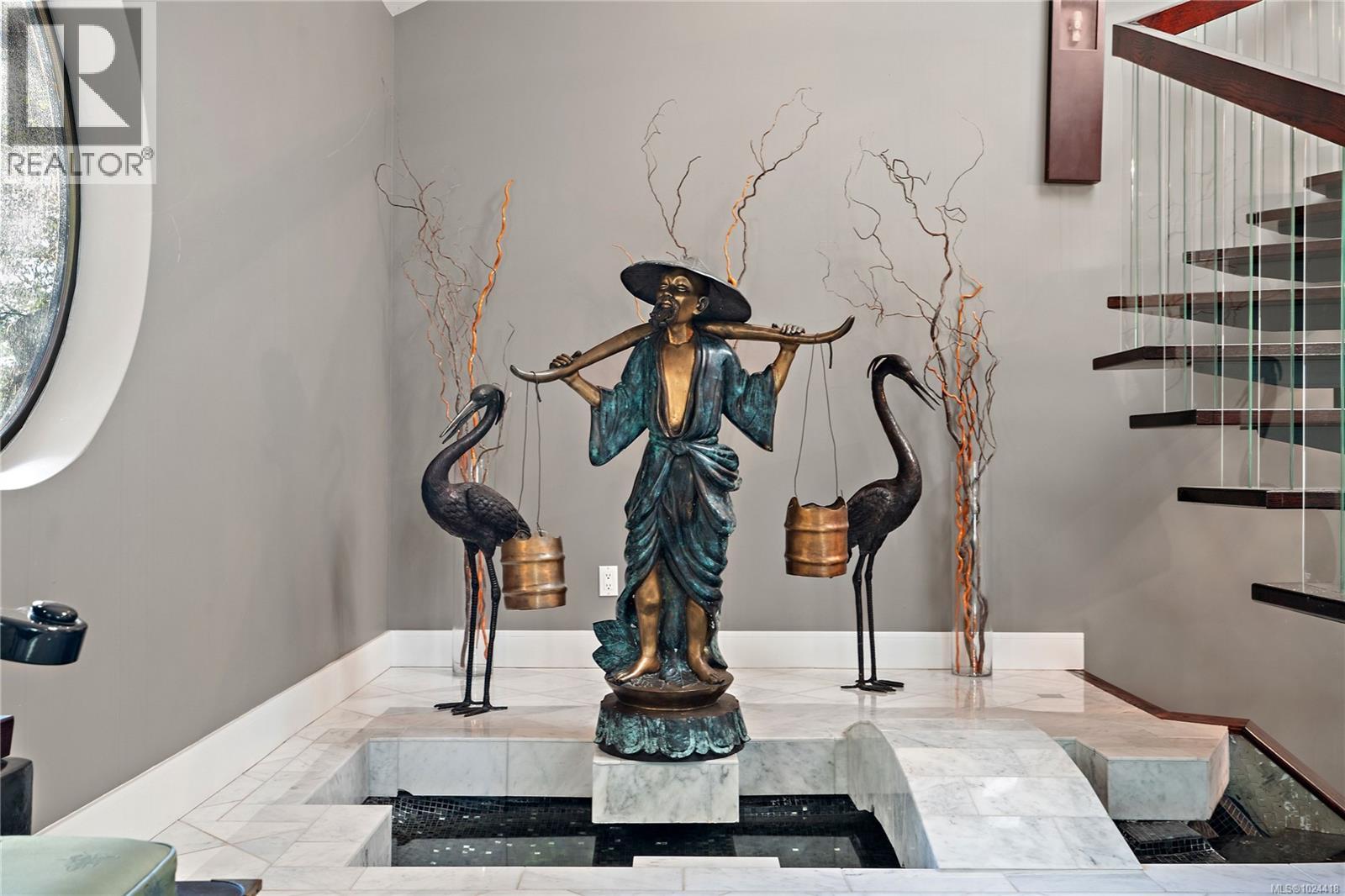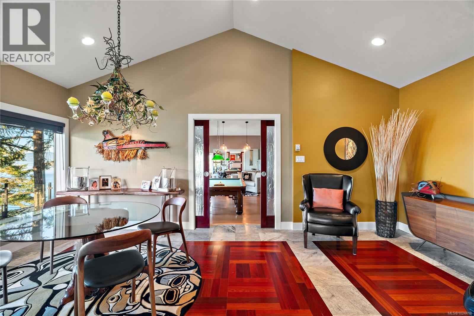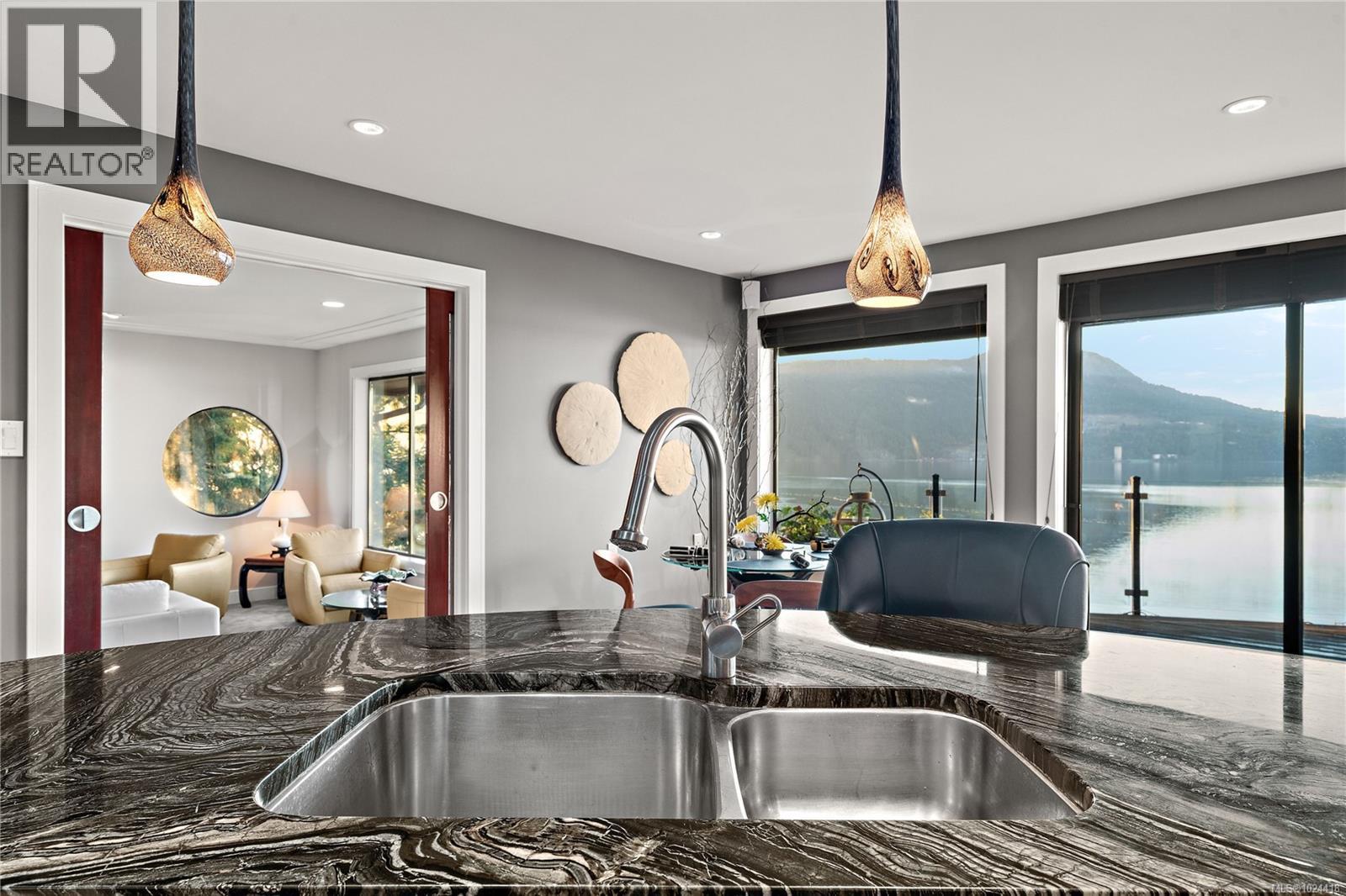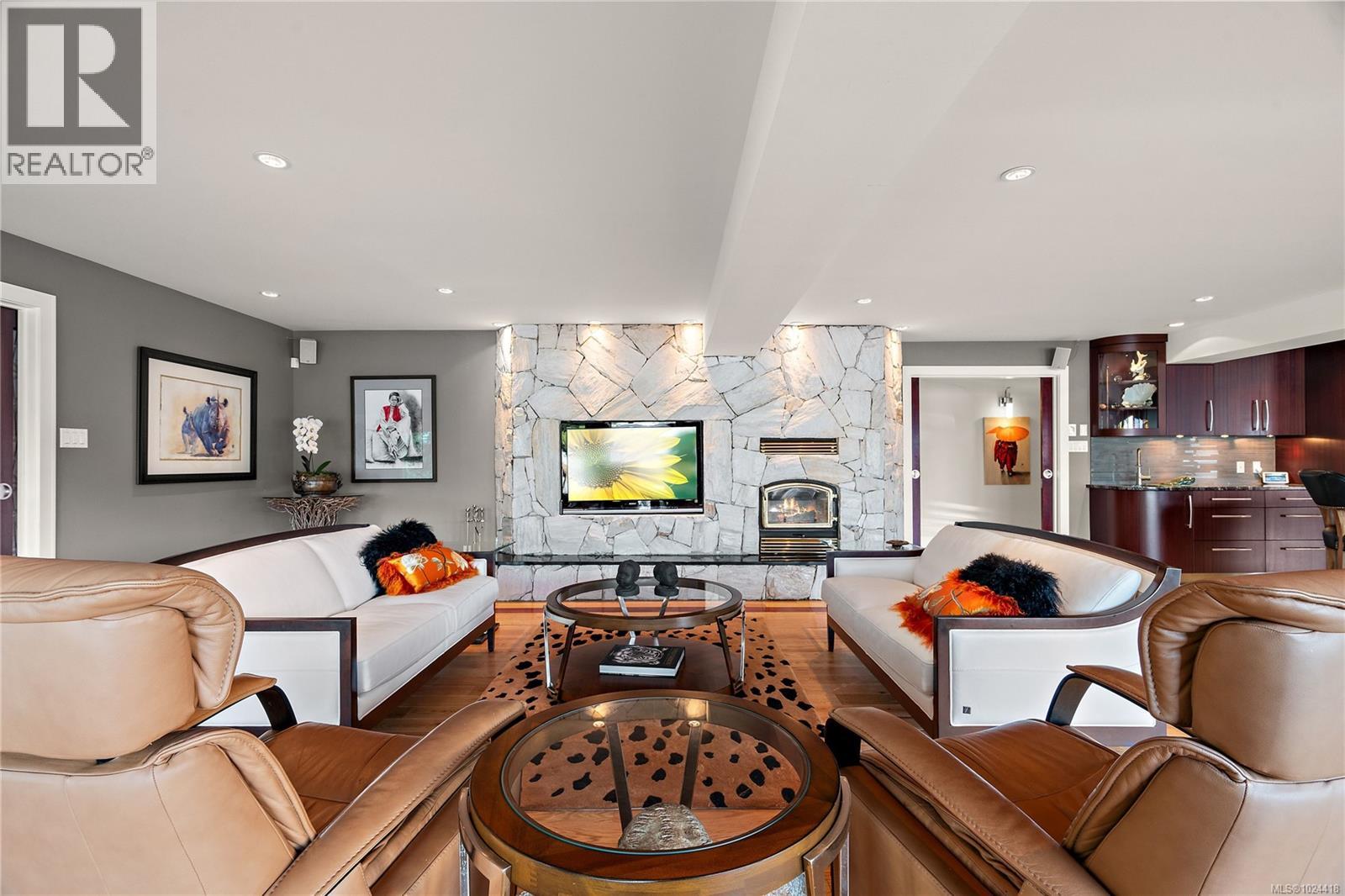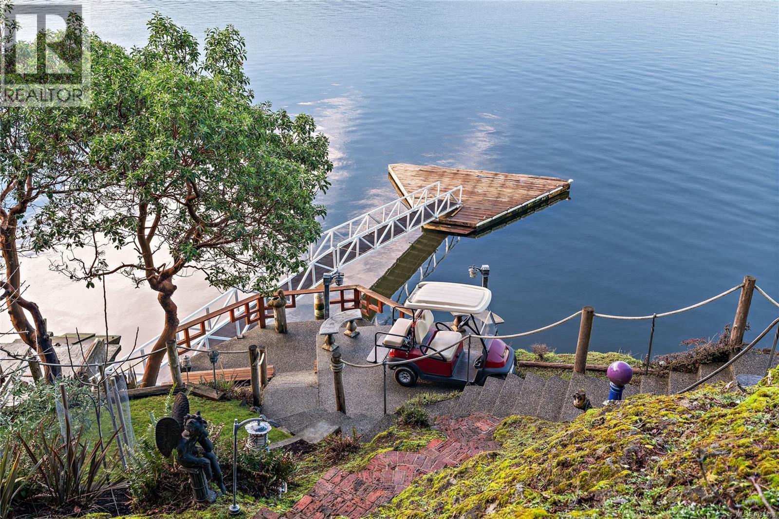 Discover this exceptional 3-bed, 4-bath, 7,091 sq ft custom-built waterfront estate on nearly an acre at the tip of Willis Point with a registered foreshore featuring a deep-water dock and slipway boat launch. Positioned to capture panoramic 180-degree Saanich Inlet views with west-facing exposure, this home bathes in natural light from sunrise to sunset. A grand 2-storey entrance greets you with a striking staircase and water feature setting a luxurious tone. Vaulted ceilings, floor-to-ceiling picture windows, and open-concept design create seamless indoor-outdoor living. Designer details include custom stone and millwork, refined crown molding, and luxurious finishes throughout. An entertainer's dream, the high-end chef's kitchen anchors the main level, where every principal room flows onto expansive decks overlooking protected inlet waters. The primary suite offers a private sanctuary with breathtaking views and spa-inspired ensuite. Lower level includes a media room, office, a kitchen and separate entrance making the addition of a suite simple. Meticulously terraced grounds provide easy waterfront access. The deep-water dock and slipway boat launch is perfect for kayaking, swimming, and boating. Tiered gardens with paver walkways showcase exceptional landscaping. Large accessory building accommodates RV/boat storage. Take advantage of the nearby wooded walking/biking trails, parks, lakes and beaches. This is more than a home—it's a lifestyle. An opportunity not to be missed for those seeking the ultimate in coastal luxury and year-round outdoor recreation. (id:2469)