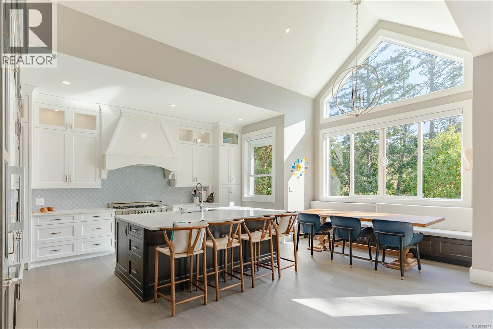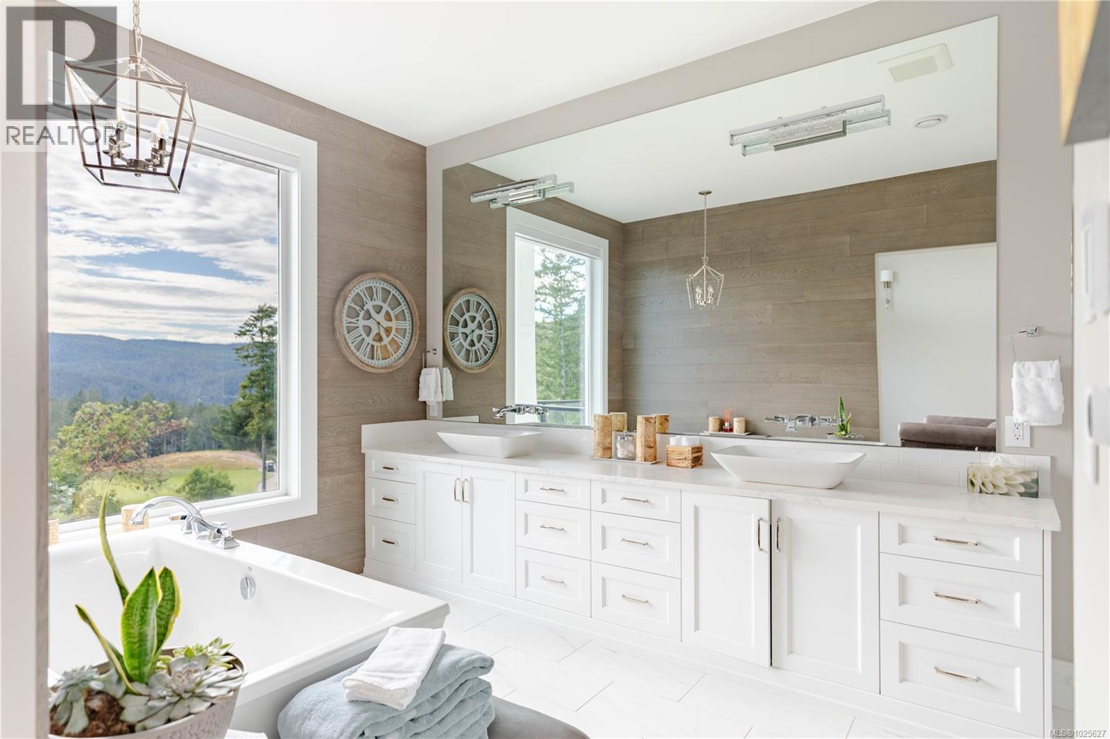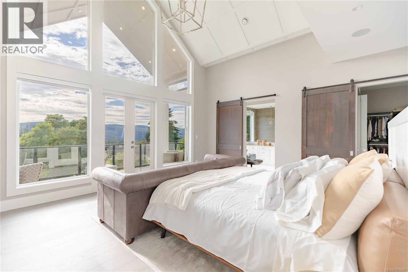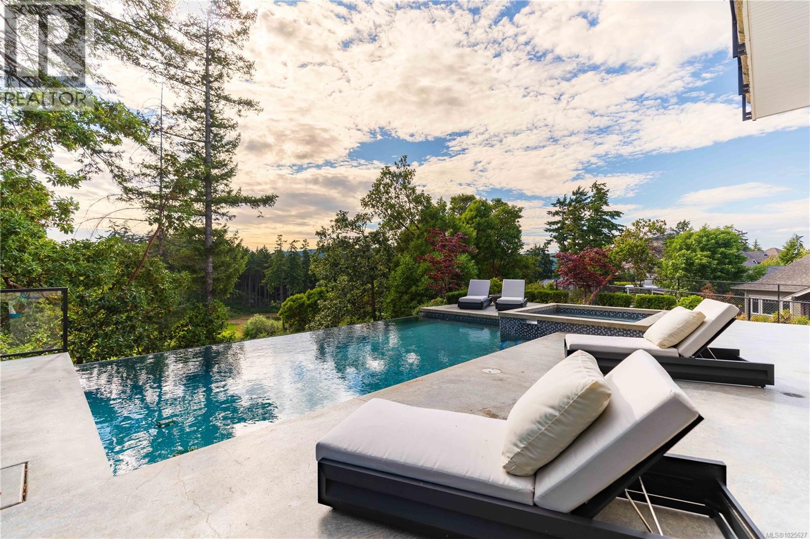 Set behind the gates of an exclusive enclave and backing directly onto Bear Mountain Golf Course, this exceptional estate offers an unrivaled blend of privacy, scale, and resort-calibre living. Spanning seven bedrooms and nine bathrooms, the residence is introduced by a striking roundabout driveway and vaulted porte-cochère, complemented by a quadruple garage and dedicated golf cart garage with direct course access. Designed for both grand entertaining and everyday enjoyment, the grounds are nothing short of spectacular, featuring a fully fenced sports court with rubberized surface, infinity pool and spa, and expansive patios that capture sweeping mountain and city vistas. Inside, dramatic vaulted and cathedral ceilings, floor-to-ceiling windows, and multiple heat pump systems create a bright, comfortable environment year-round. The main level showcases a breathtaking entry anchored by a towering two-way stone fireplace, a showpiece gourmet kitchen with walk-in pantry, a private office overlooking the drive, and a serene primary retreat with balcony, spa-inspired ensuite, and oversized walk-in shower. The lower level is purpose-built for recreation and guests, offering a central rec room with wet bar, tiered theatre, fully equipped gym, and guest suite—each with walk-out access to the pool deck. Completing the offering is a separate 550 sq ft guest suite with private entrance, balcony, open-concept living space, full bath, and laundry—ideal for extended family or visitors. Located minutes from top-tier schools, shopping, and dining, this remarkable estate delivers luxury living without compromise. (id:2469)