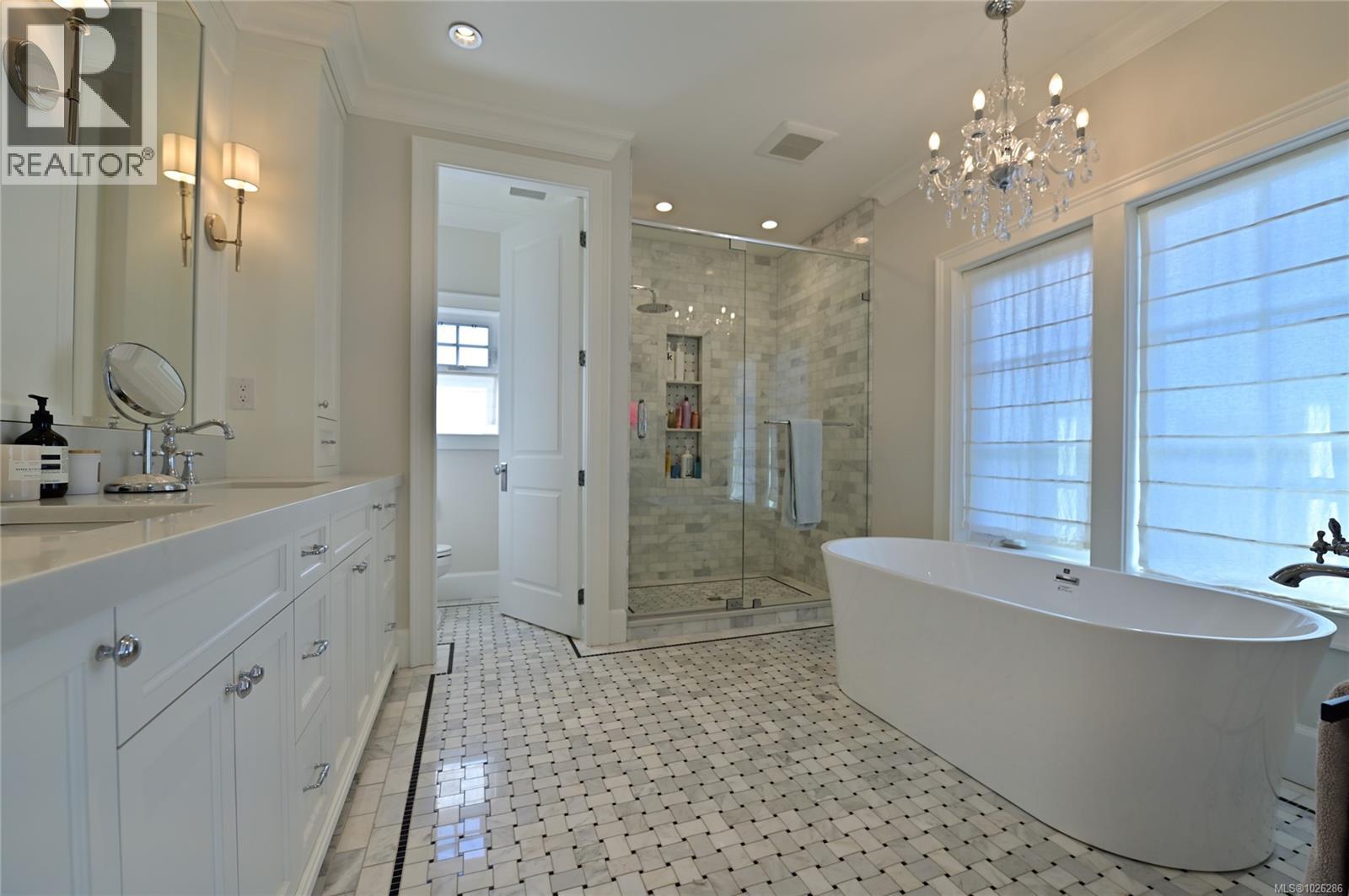 Oak Bay Mini Mansion! This exceptional 2019 built home is situated in the one of the most desirable neighbourhoods of Victoria, easy walk to Uplands Park, Willows Beach and Estevan Village. Custom designed throughout with outstanding finishing and superior attention to detail boasting 10ft ceilings on main and upper levels, chef’s kitchen with beautiful appliances, 5 bdrms, an office and 6 baths elegantly assembled over 4779 sq ft. The light Oak flooring weaves its way throughout the home. The Butler’s pantry has a second dishwasher and connects the dining room and the kitchen. Upper level has 3 bdrms each with ensuite & heated marble tile flrs, the master is magnificent with the ultimate in relaxation; deep soaker tub and walk in marble shower. The lower level has 9ft ceilings with a dazzling Entertainment room with wet bar and built in sound, two more bdrms and two 5 piece baths. Sunny back yard is fully fenced. 2 heat-pumps ensure all season comfort. Call today to arrange your tour! (id:2469)