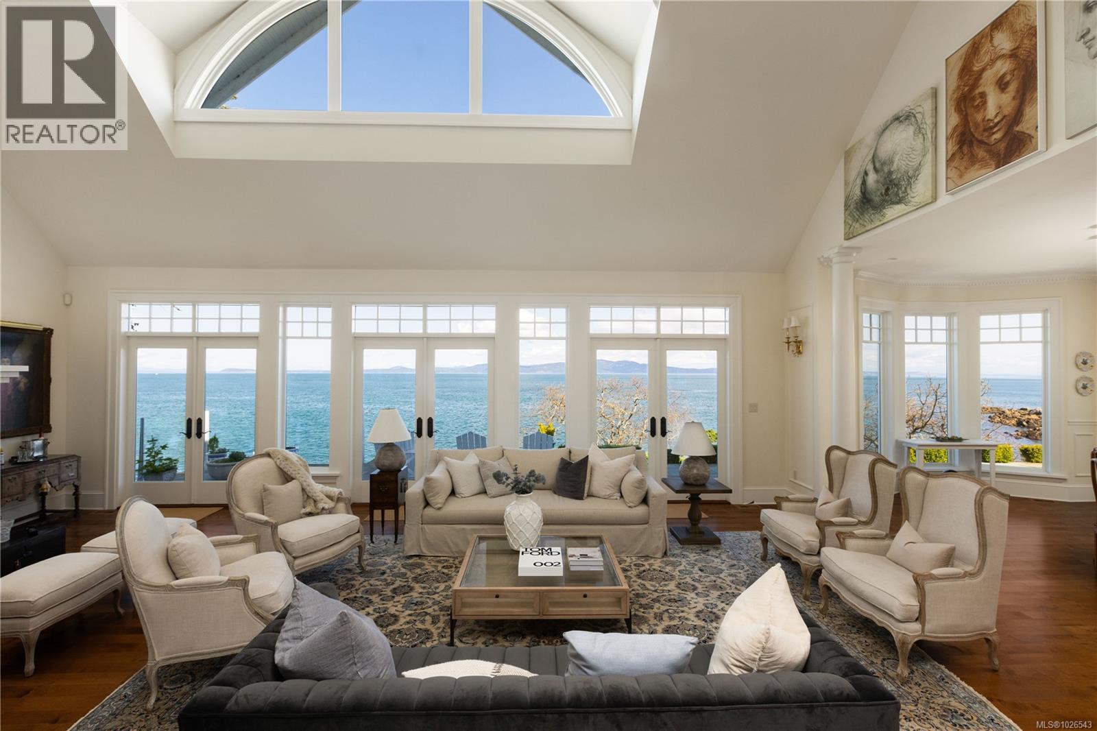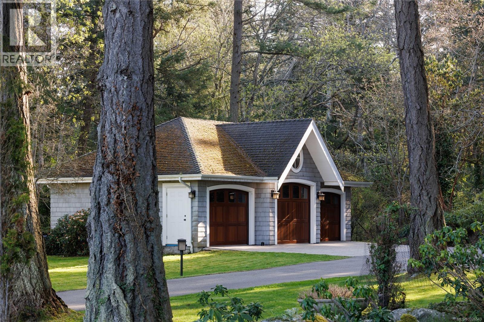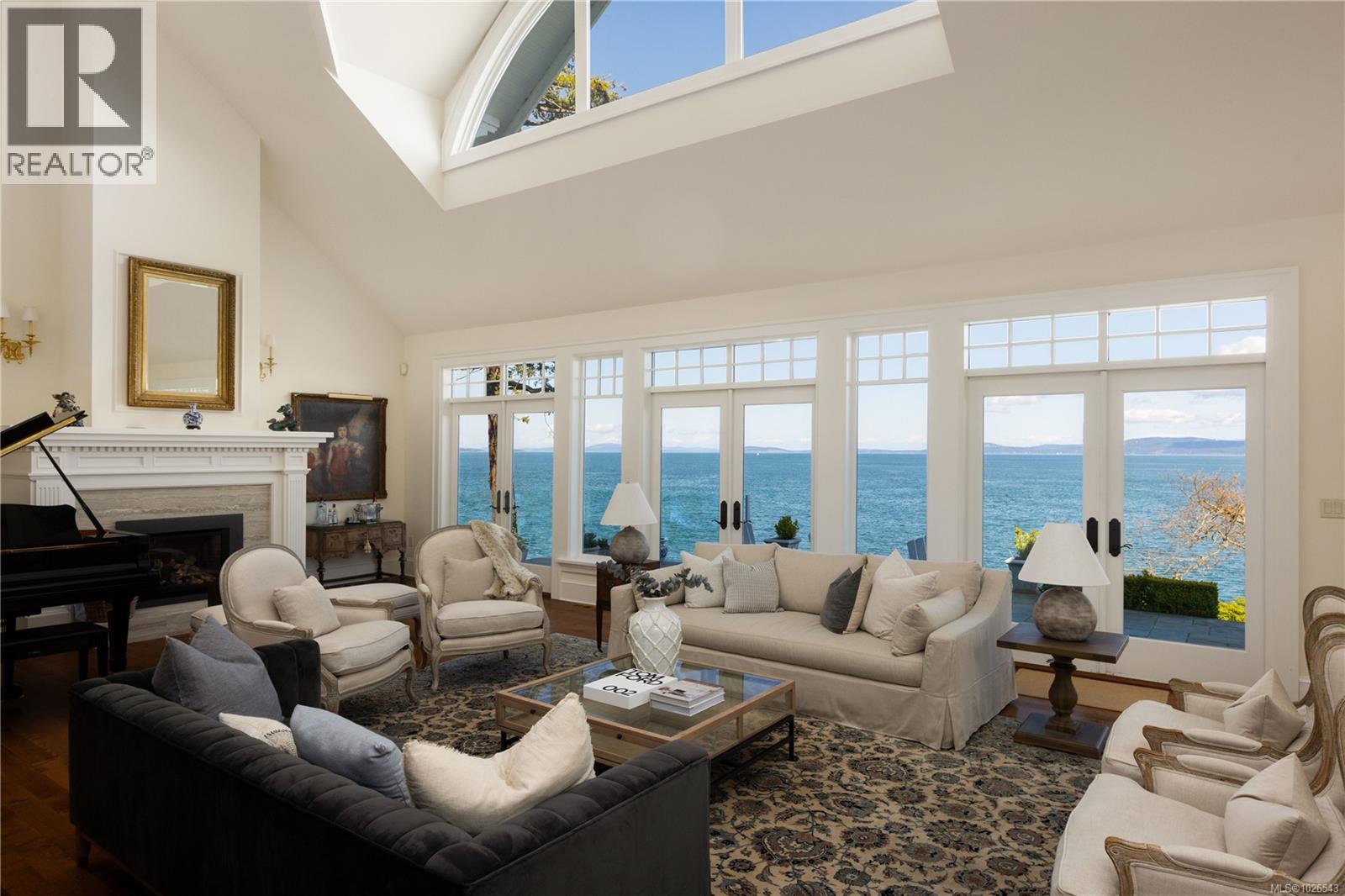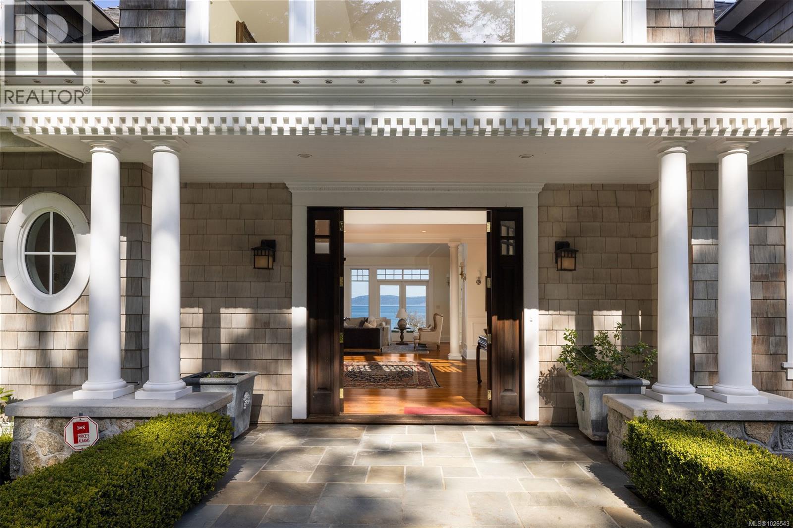 Welcome to 2600 Queenswood Drive, an extraordinary oceanfront retreat nestled on nearly 2.8 acres in one of Vancouver Island’s most prestigious enclaves. Gated and private, with the potential to subdivide, this timeless estate offers panoramic views of the Haro Strait, Gulf Islands, and Mt. Baker. The Hamptons-style residence blends classic East Coast charm with West Coast ease, featuring more than 6,000 sqft of beautifully curated living space. Soaring ceilings, expansive windows, and a seamless connection to the outdoors define the main level, which includes a sophisticated living room, elegant dining area, a hand built Walnut library/media room, and a chef’s kitchen designed for both function and flair. The main floor primary suite is a true sanctuary, while the upper level offers 3 additional bedrooms, 2 with ensuite. A walkout lower level includes a flexible studio or guest quarters. Lush landscaping, stone pathways, a private launch point for kayaking, and a detached 3-car heated garage with gardener’s toilet complete this rare seaside setting—just minutes to Cadboro Bay Village and UVic. (id:2469)