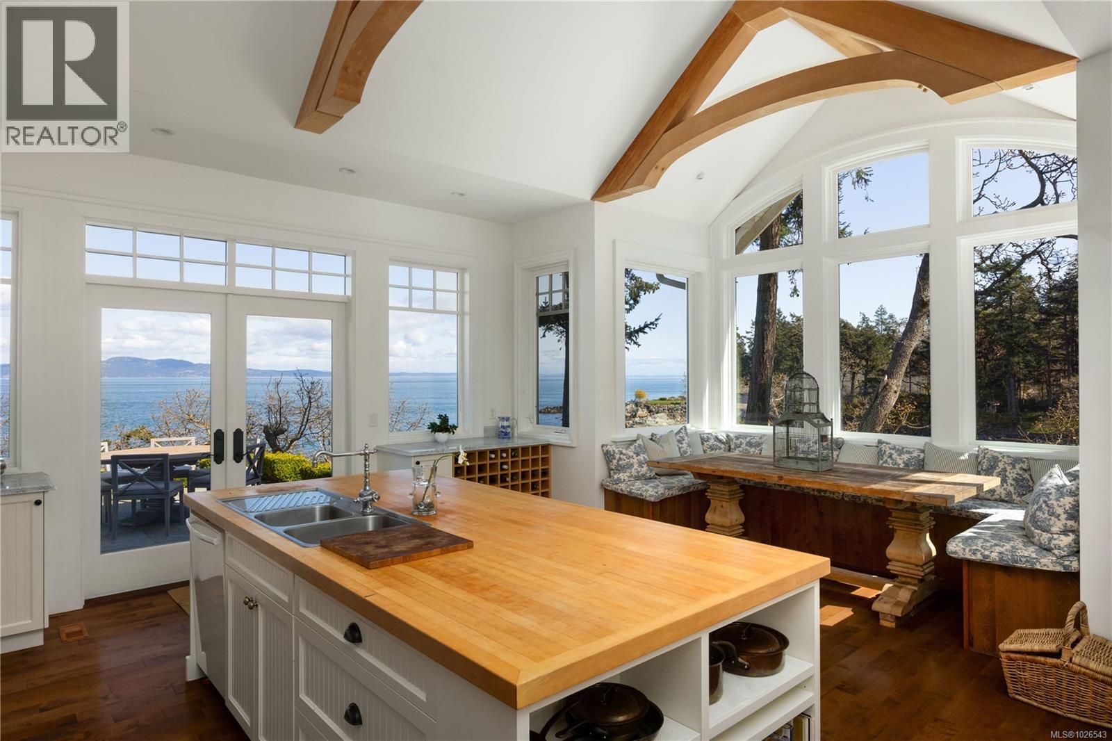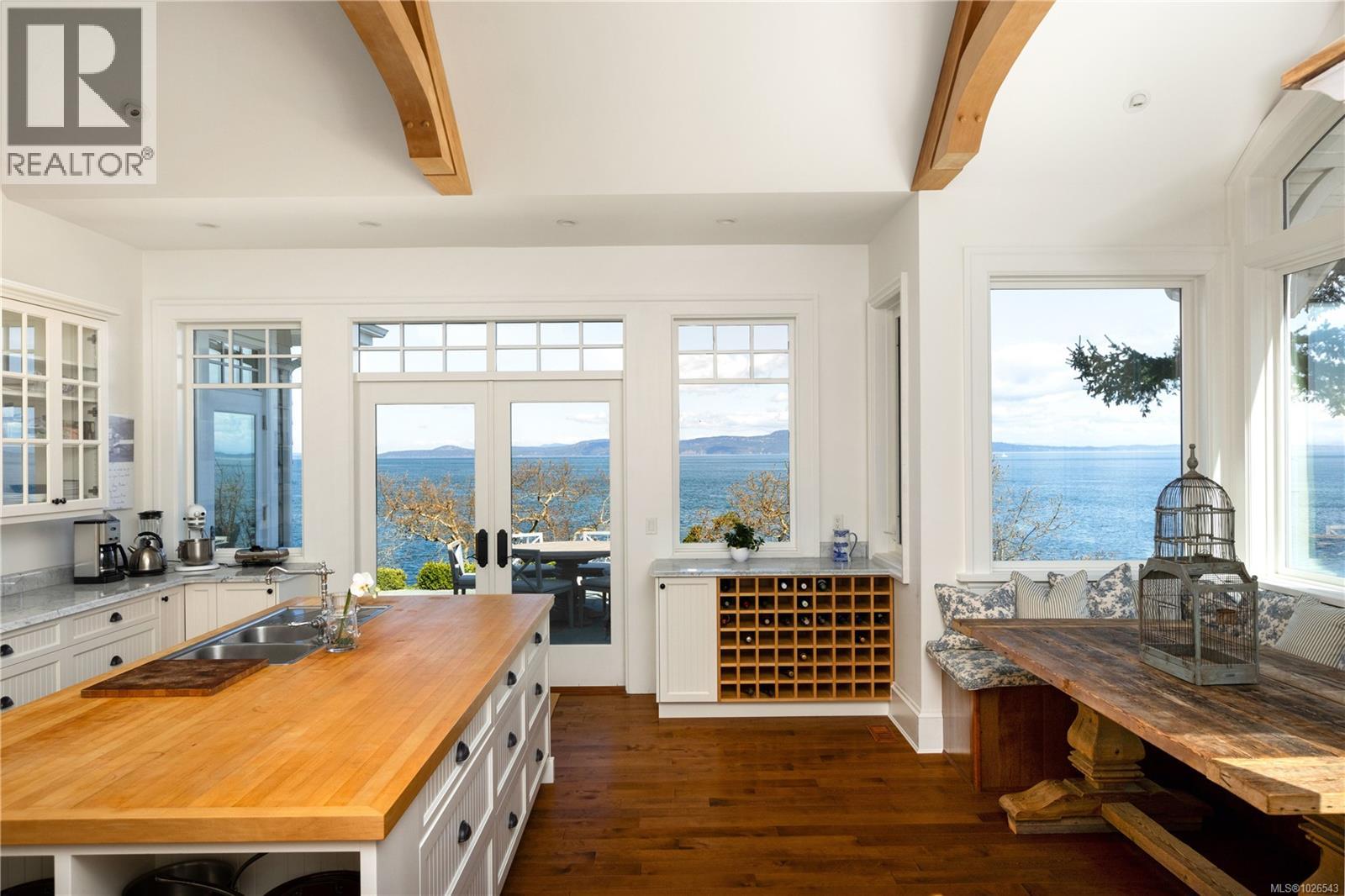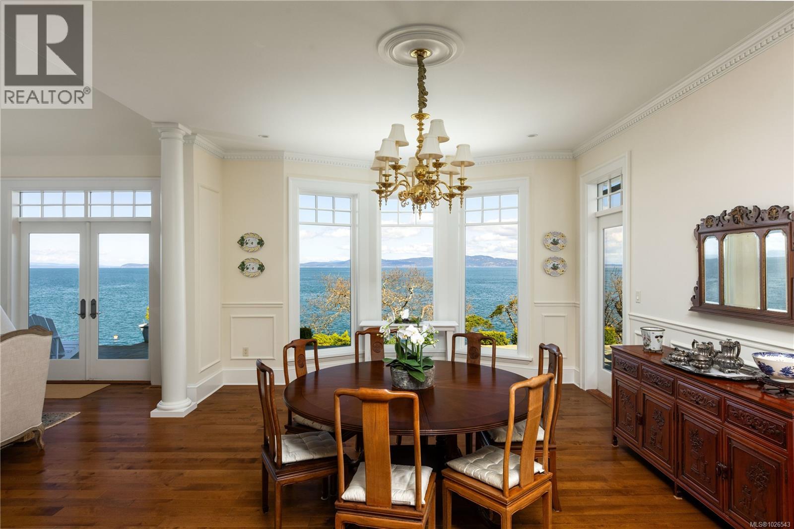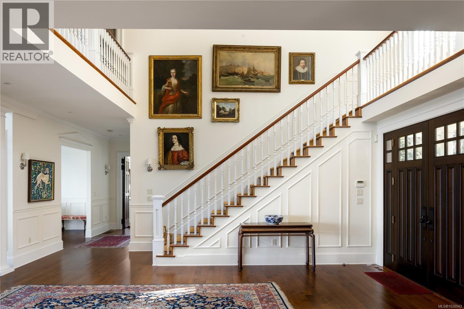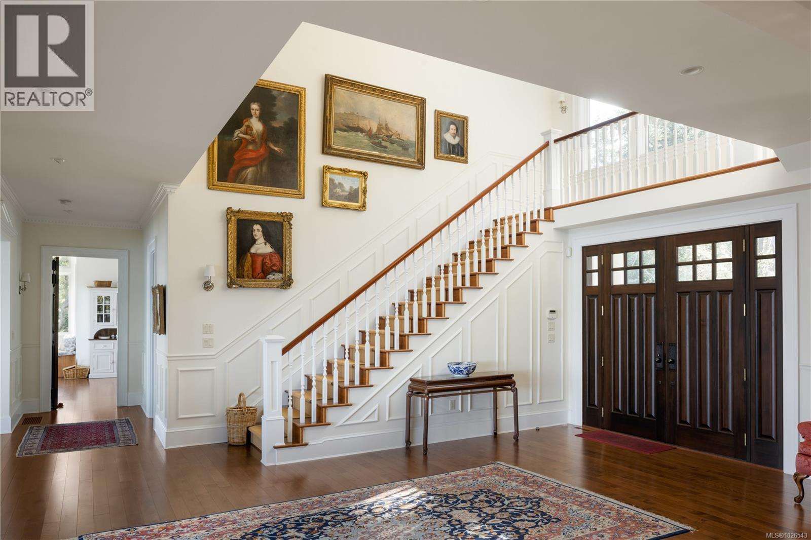 Welcome to 2600 Queenswood Drive, an extraordinary oceanfront retreat nestled on nearly 2.8 acres in one of Vancouver Island’s most prestigious enclaves. Gated and private, with the potential to subdivide, this timeless estate offers panoramic views of the Haro Strait, Gulf Islands, and Mt. Baker. The Hamptons-style residence blends classic East Coast charm with West Coast ease, featuring more than 6,000 sqft of beautifully curated living space. Soaring ceilings, expansive windows, and a seamless connection to the outdoors define the main level, which includes a sophisticated living room, elegant dining area, a hand built Walnut library/media room, and a chef’s kitchen designed for both function and flair. The main floor primary suite is a true sanctuary, while the upper level offers 3 additional bedrooms, 2 with ensuite. A walkout lower level includes a flexible studio or guest quarters. Lush landscaping, stone pathways, a private launch point for kayaking, and a detached 3-car heated garage with gardener’s toilet complete this rare seaside setting—just minutes to Cadboro Bay Village and UVic. (id:2469)