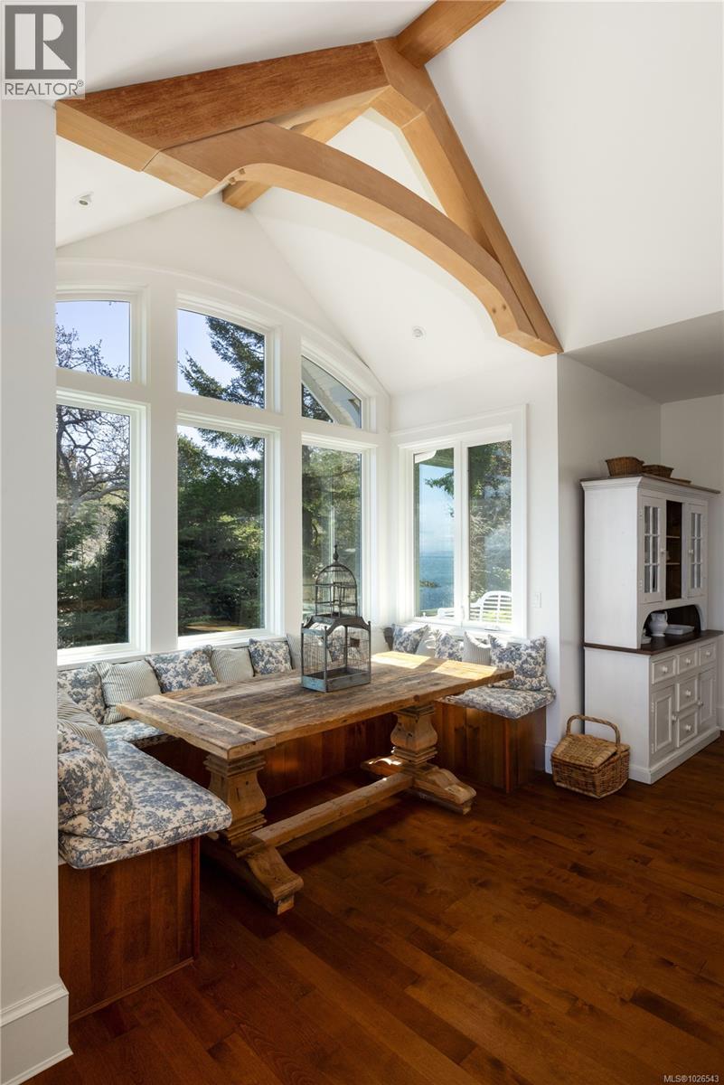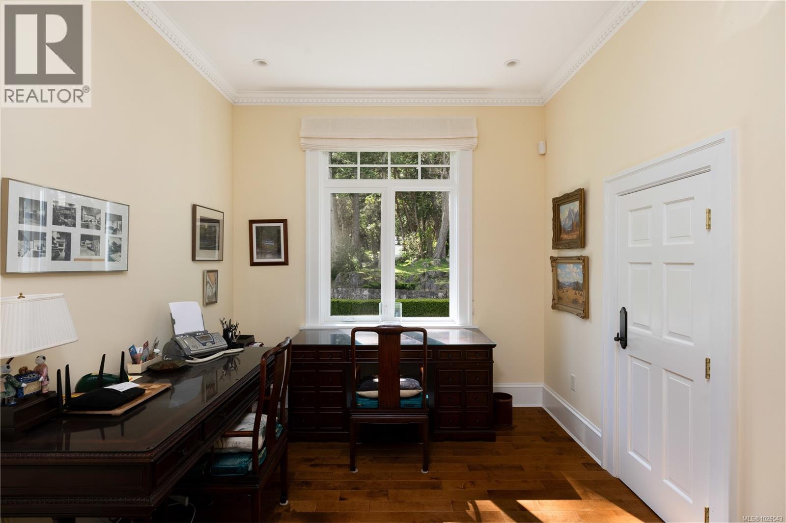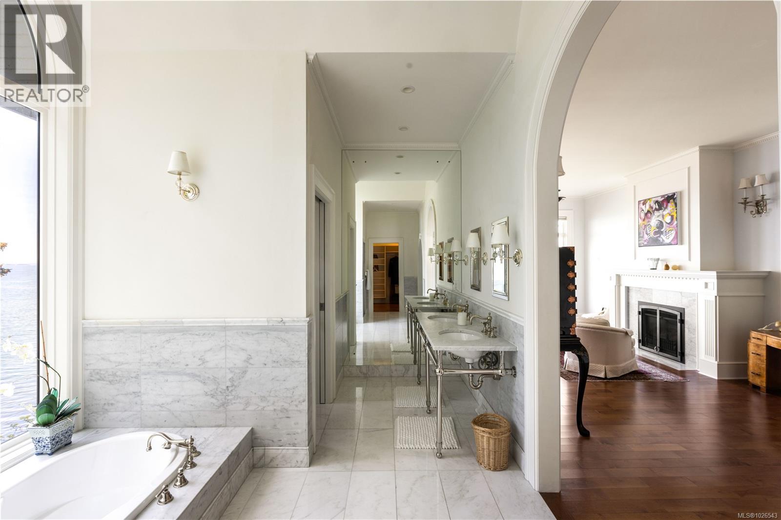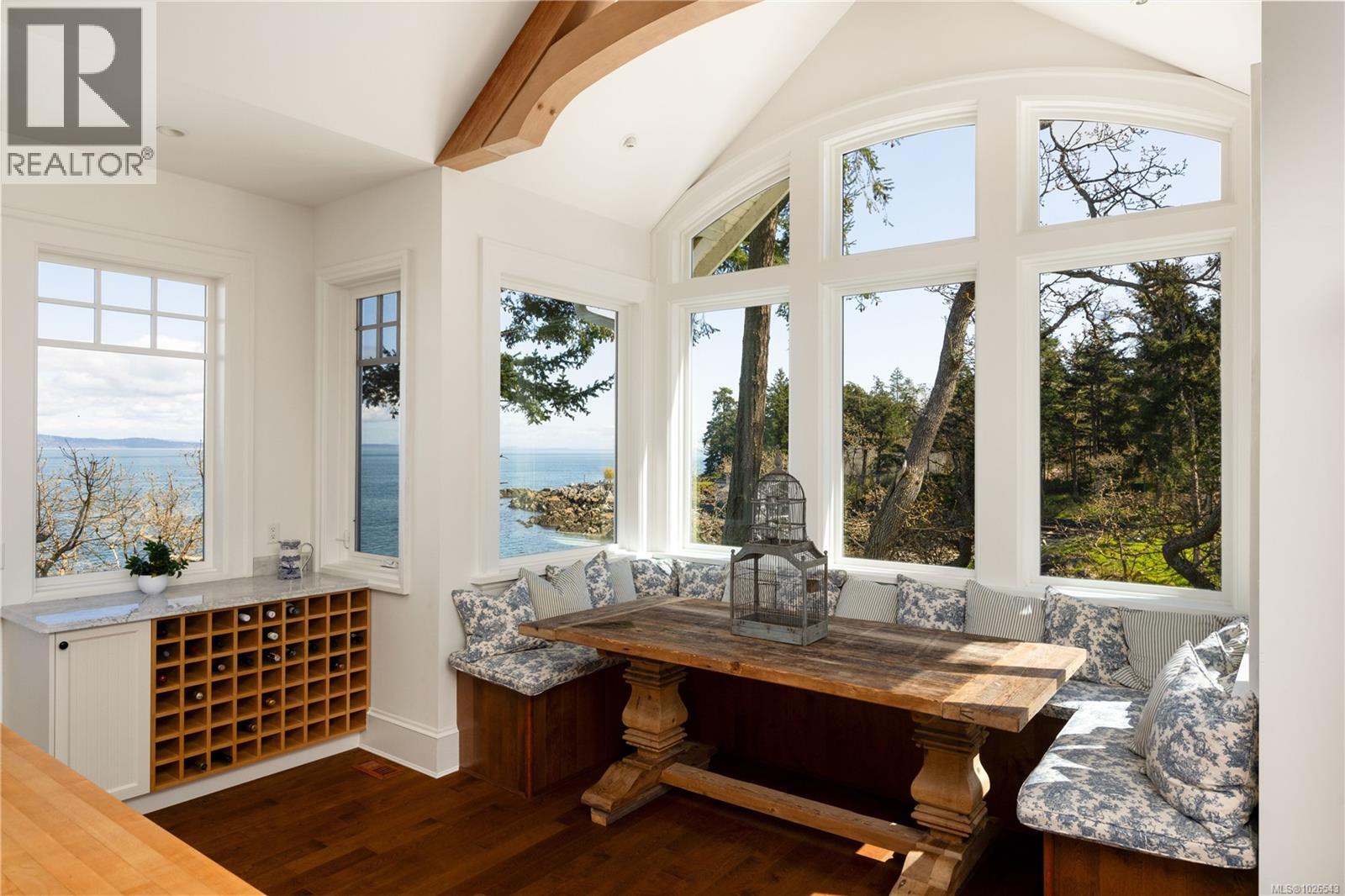 Welcome to 2600 Queenswood Drive, an extraordinary oceanfront retreat nestled on nearly 2.8 acres in one of Vancouver Island’s most prestigious enclaves. Gated and private, with the potential to subdivide, this timeless estate offers panoramic views of the Haro Strait, Gulf Islands, and Mt. Baker. The Hamptons-style residence blends classic East Coast charm with West Coast ease, featuring more than 6,000 sqft of beautifully curated living space. Soaring ceilings, expansive windows, and a seamless connection to the outdoors define the main level, which includes a sophisticated living room, elegant dining area, a hand built Walnut library/media room, and a chef’s kitchen designed for both function and flair. The main floor primary suite is a true sanctuary, while the upper level offers 3 additional bedrooms, 2 with ensuite. A walkout lower level includes a flexible studio or guest quarters. Lush landscaping, stone pathways, a private launch point for kayaking, and a detached 3-car heated garage with gardener’s toilet complete this rare seaside setting—just minutes to Cadboro Bay Village and UVic. (id:2469)
