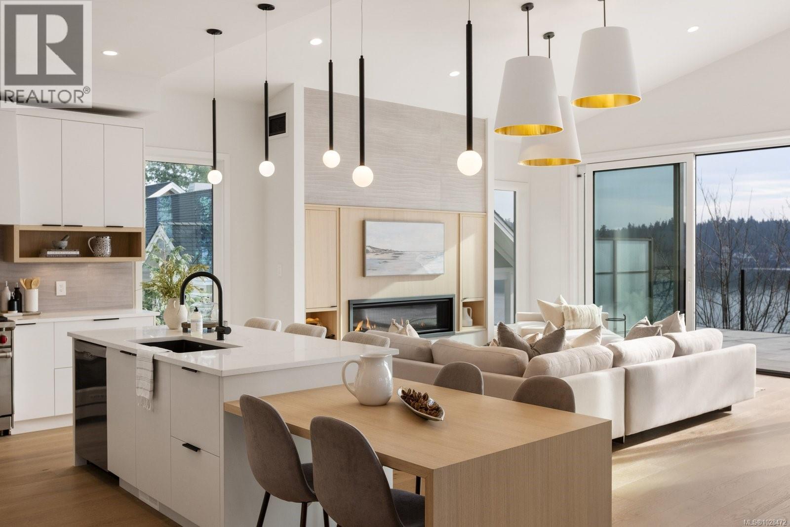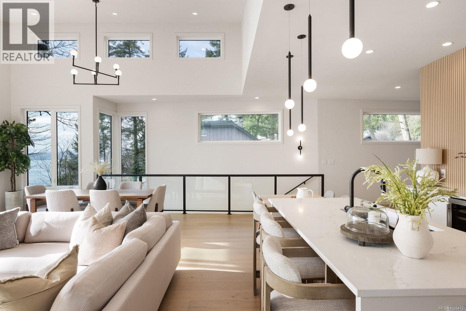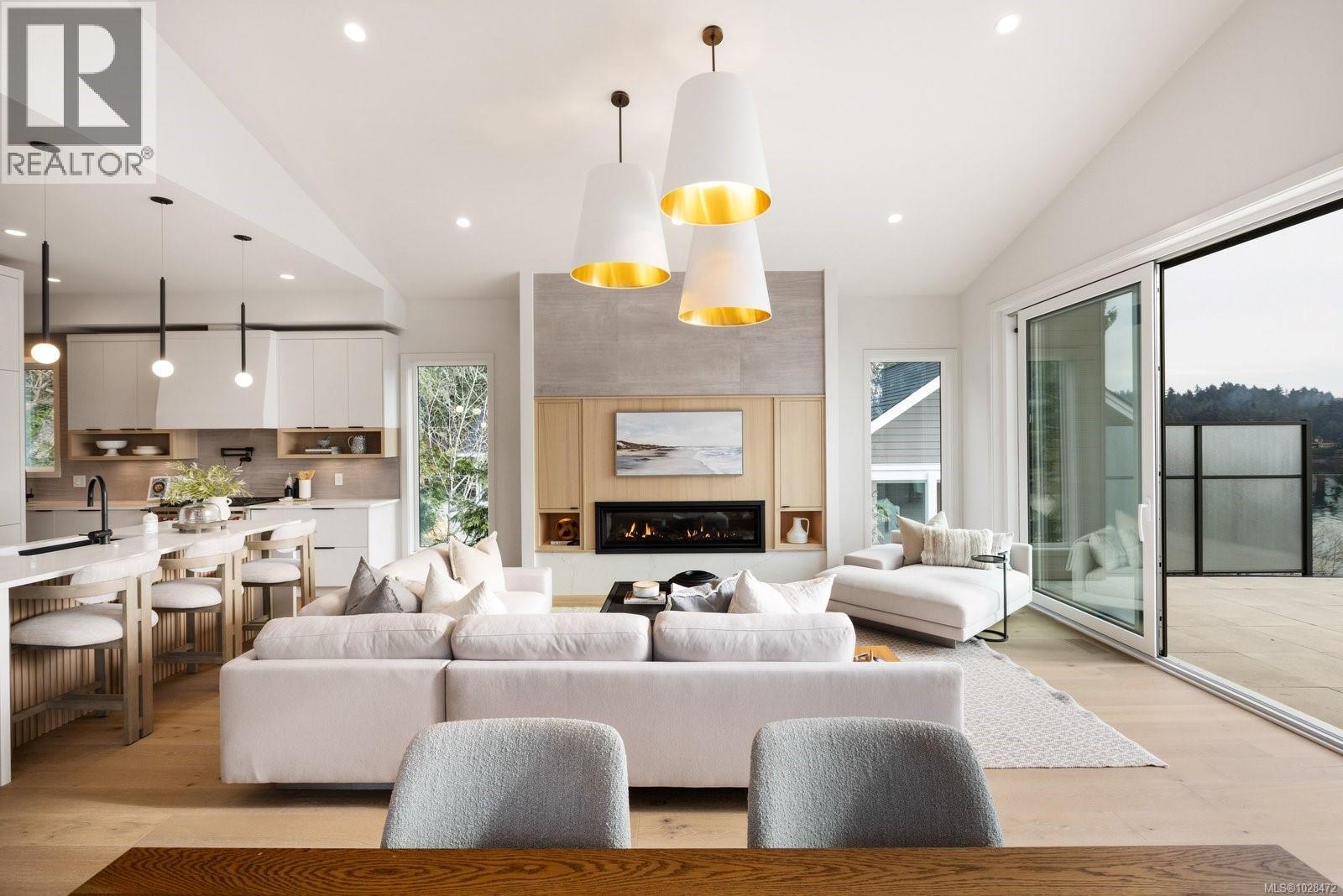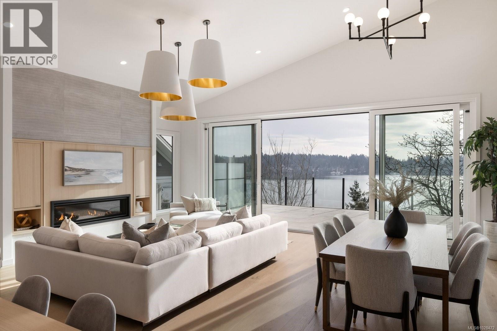 Set on 0.37 acres of southwest-facing waterfront in the coveted Deep Cove neighbourhood of North Saanich, this brand-new contemporary home offers protected ocean views, warm evening sun, and breathtaking sunsets. Built by Villamar Homes, the 3,151 sq.ft. residence blends refined modern design with natural coastal textures. The open-concept main level features soaring 10’–16’ ceilings, oversized sliding doors, and seamless indoor-outdoor living to a 400+ sq.ft. oceanfront sundeck. The primary bedroom is conveniently located on the main floor with a private courtyard and spa-inspired ensuite. A gourmet kitchen with premium appliances anchors the living space, ideal for entertaining. The lower level offers 10’ ceilings and a flexible layout with potential for a guest or family suite. Enjoy direct beach access for kayaking and paddle boarding, all within an idyllic, walkable seaside community just minutes to local beaches, winery, and café. (id:2469)