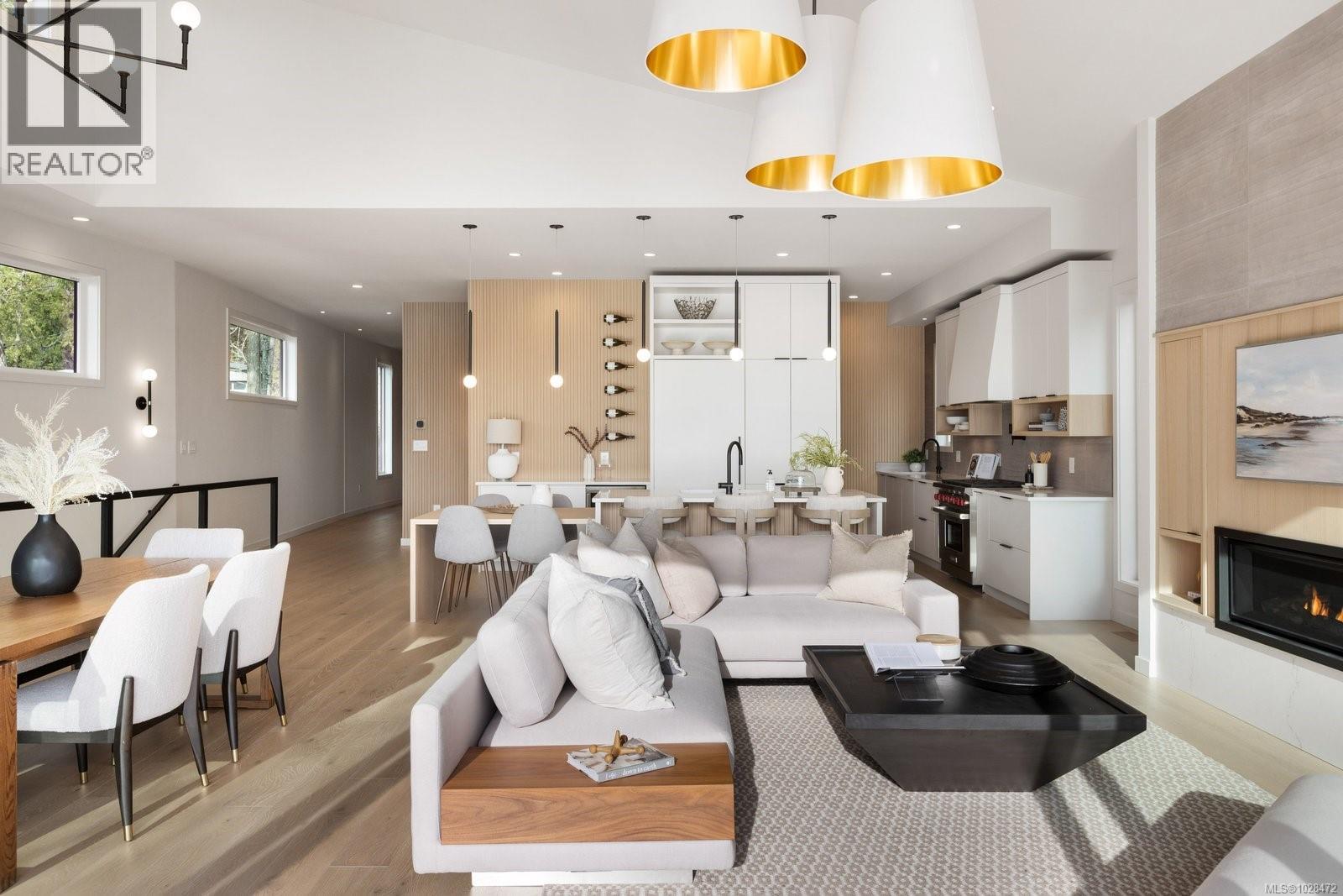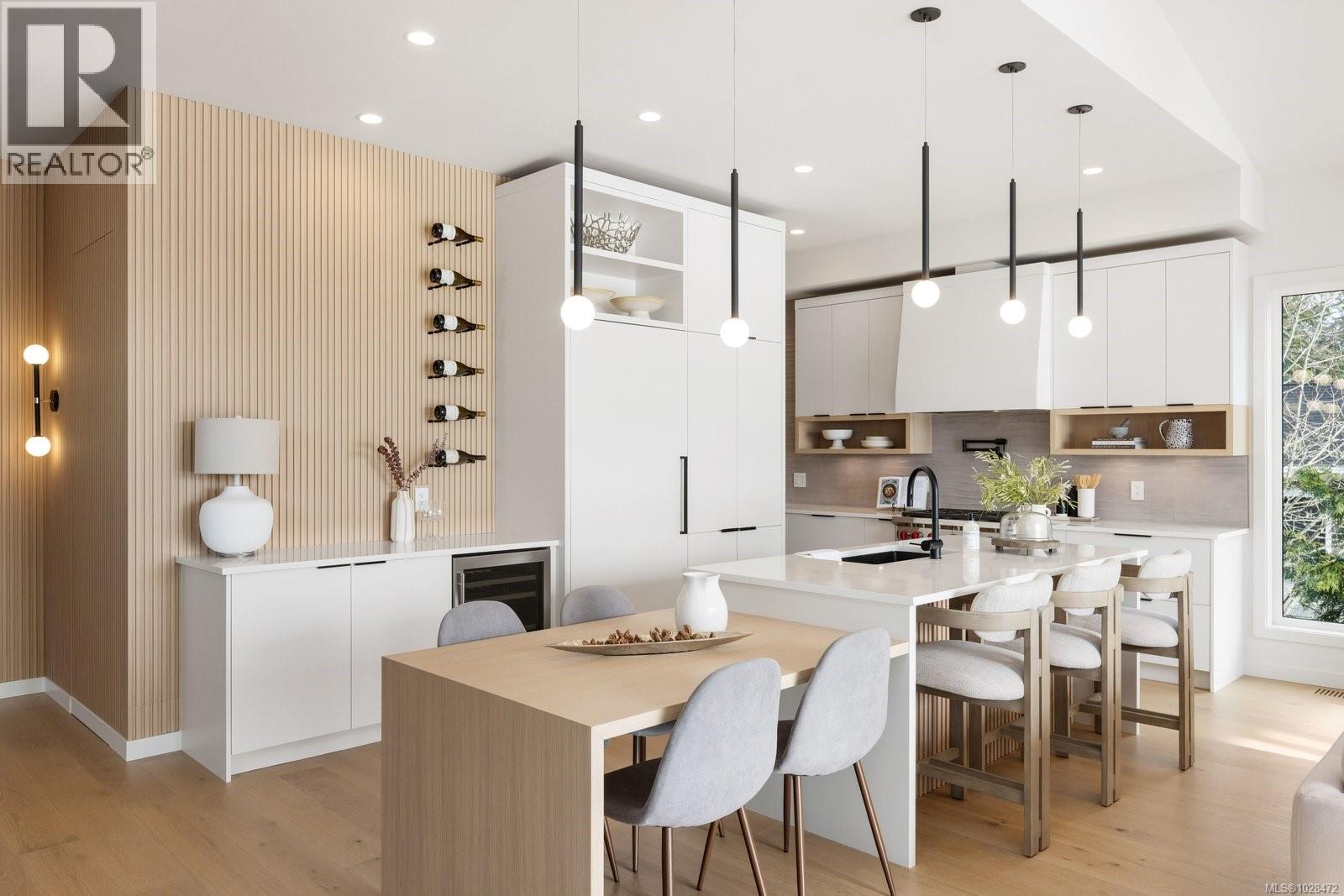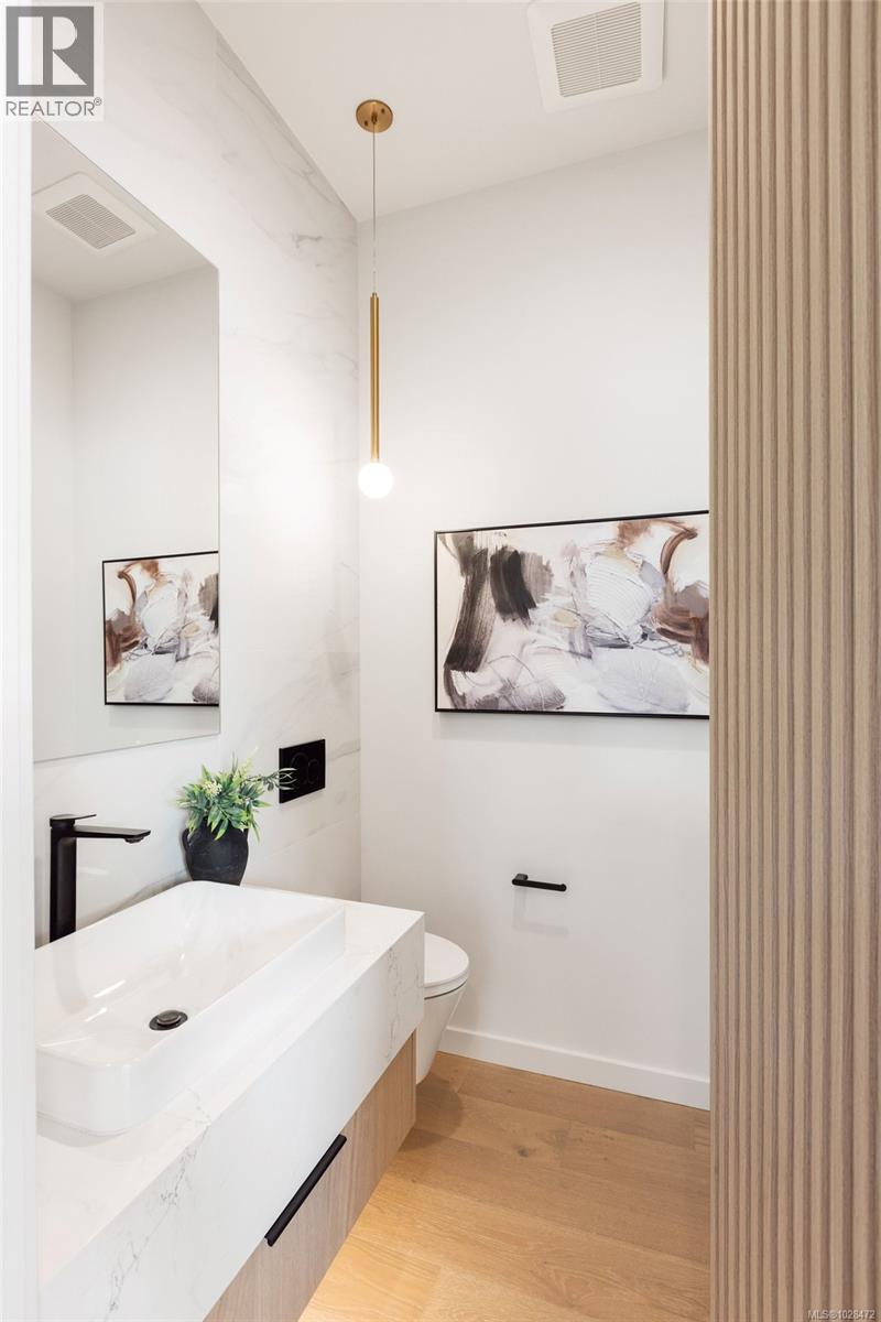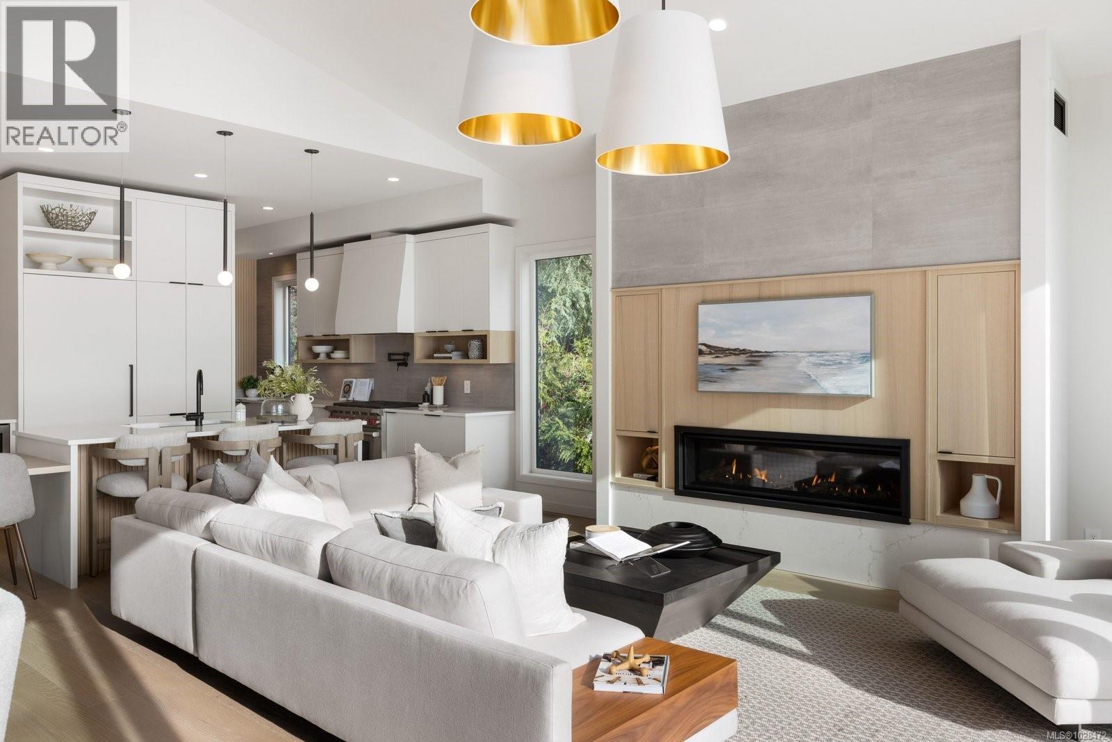 Set on 0.37 acres of southwest-facing waterfront in the coveted Deep Cove neighbourhood of North Saanich, this brand-new contemporary home offers protected ocean views, warm evening sun, and breathtaking sunsets. Built by Villamar Homes, the 3,151 sq.ft. residence blends refined modern design with natural coastal textures. The open-concept main level features soaring 10’–16’ ceilings, oversized sliding doors, and seamless indoor-outdoor living to a 400+ sq.ft. oceanfront sundeck. The primary bedroom is conveniently located on the main floor with a private courtyard and spa-inspired ensuite. A gourmet kitchen with premium appliances anchors the living space, ideal for entertaining. The lower level offers 10’ ceilings and a flexible layout with potential for a guest or family suite. Enjoy direct beach access for kayaking and paddle boarding, all within an idyllic, walkable seaside community just minutes to local beaches, winery, and café. (id:2469)