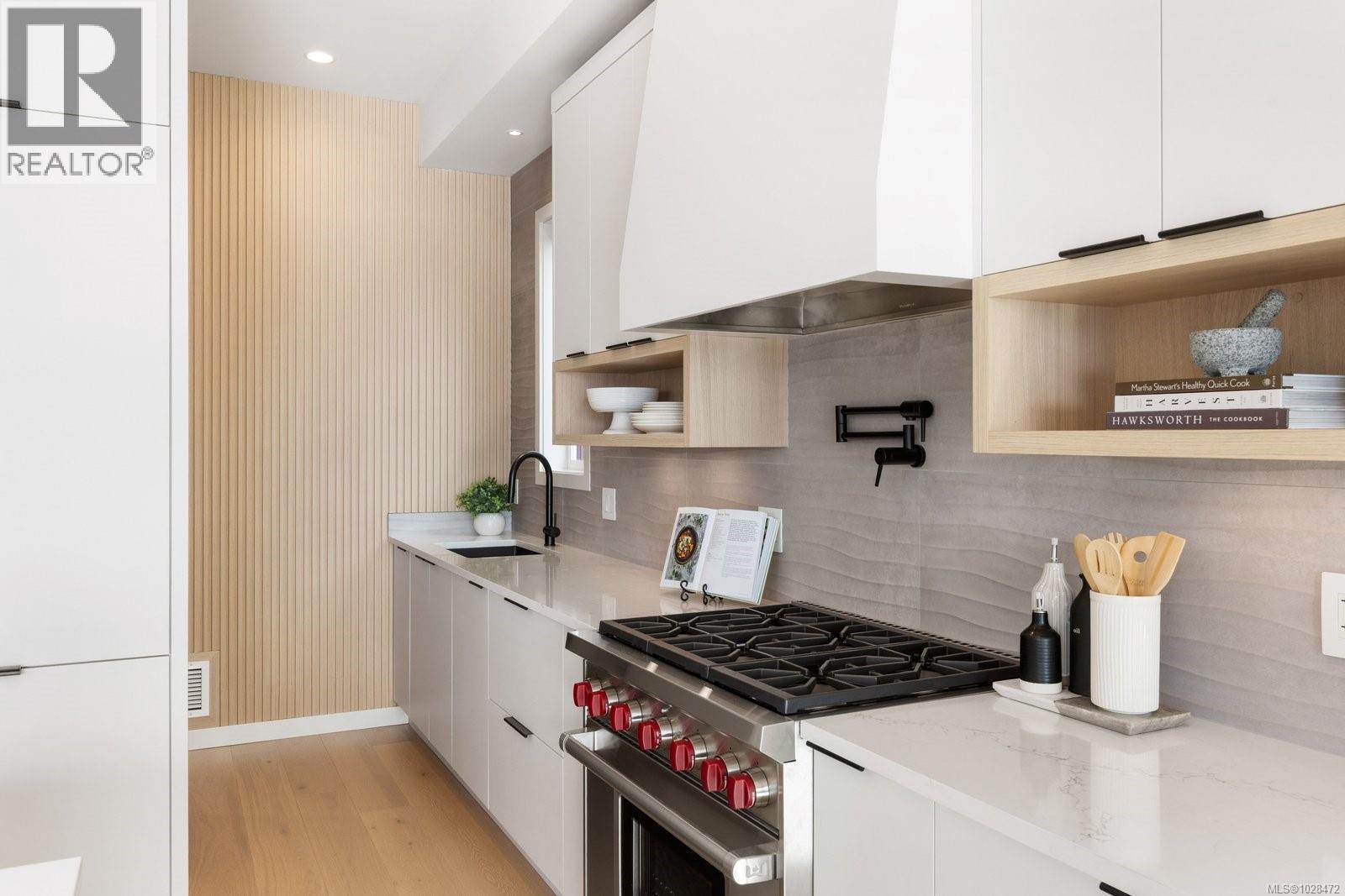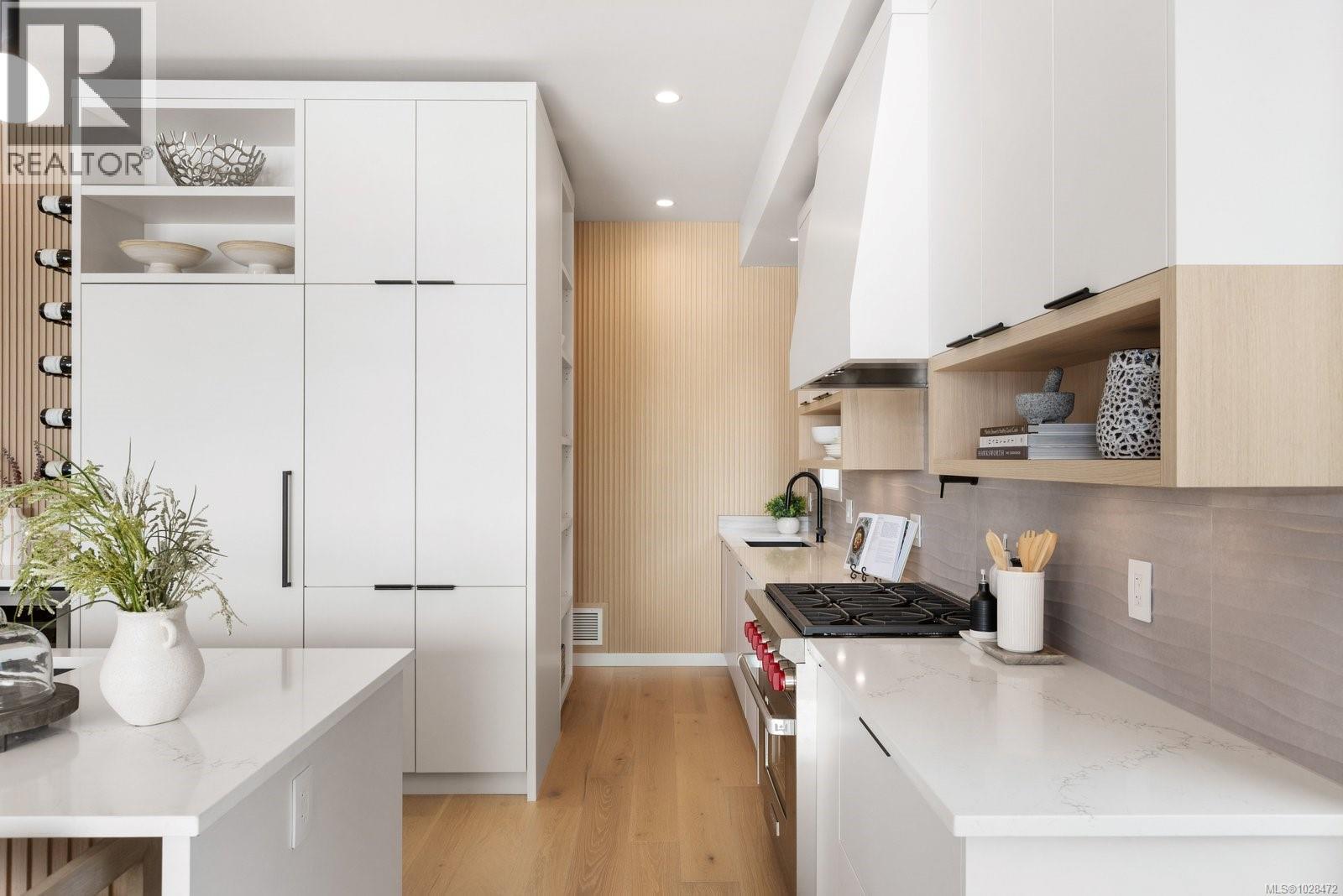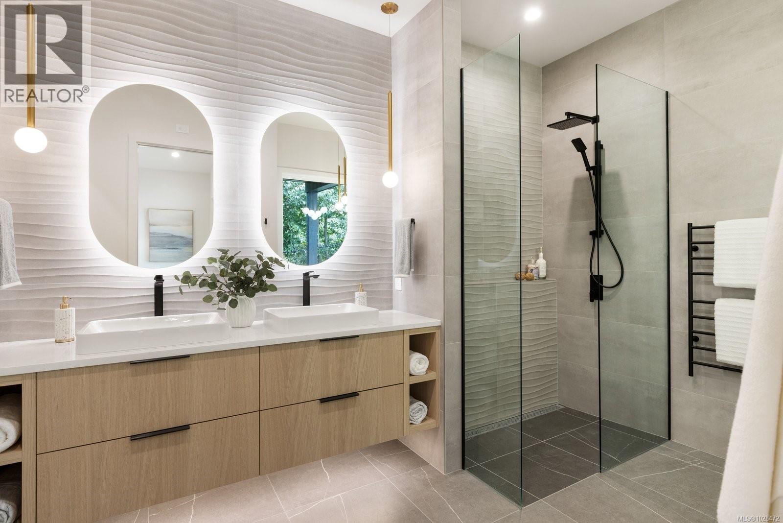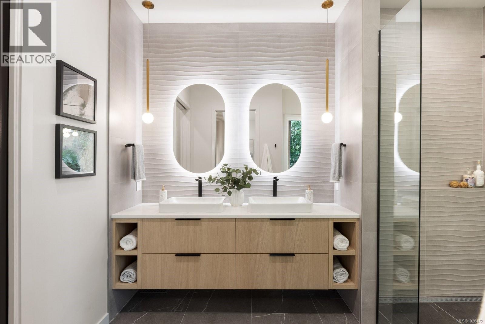 Set on 0.37 acres of southwest-facing waterfront in the coveted Deep Cove neighbourhood of North Saanich, this brand-new contemporary home offers protected ocean views, warm evening sun, and breathtaking sunsets. Built by Villamar Homes, the 3,151 sq.ft. residence blends refined modern design with natural coastal textures. The open-concept main level features soaring 10’–16’ ceilings, oversized sliding doors, and seamless indoor-outdoor living to a 400+ sq.ft. oceanfront sundeck. The primary bedroom is conveniently located on the main floor with a private courtyard and spa-inspired ensuite. A gourmet kitchen with premium appliances anchors the living space, ideal for entertaining. The lower level offers 10’ ceilings and a flexible layout with potential for a guest or family suite. Enjoy direct beach access for kayaking and paddle boarding, all within an idyllic, walkable seaside community just minutes to local beaches, winery, and café. (id:2469)
