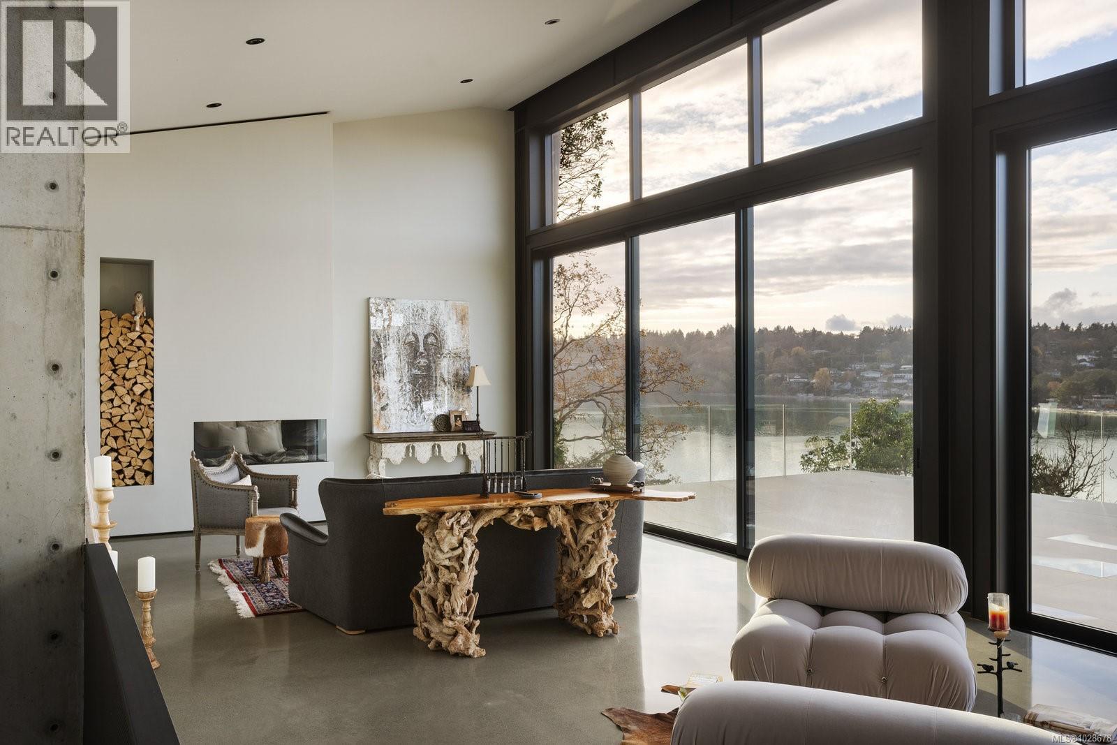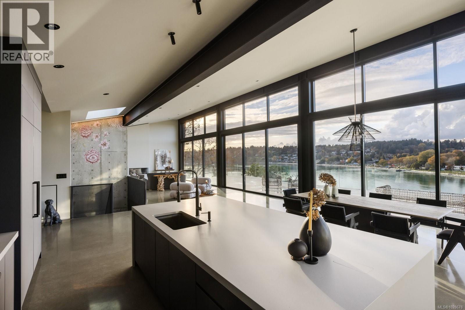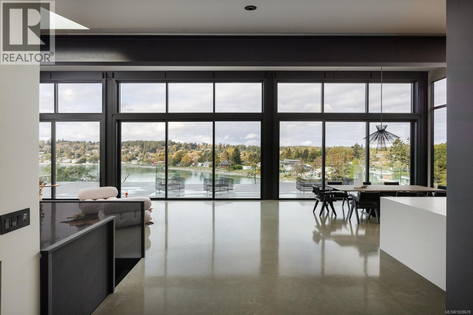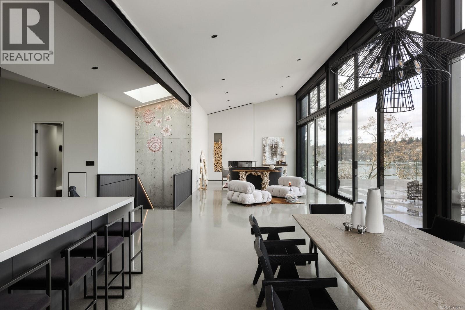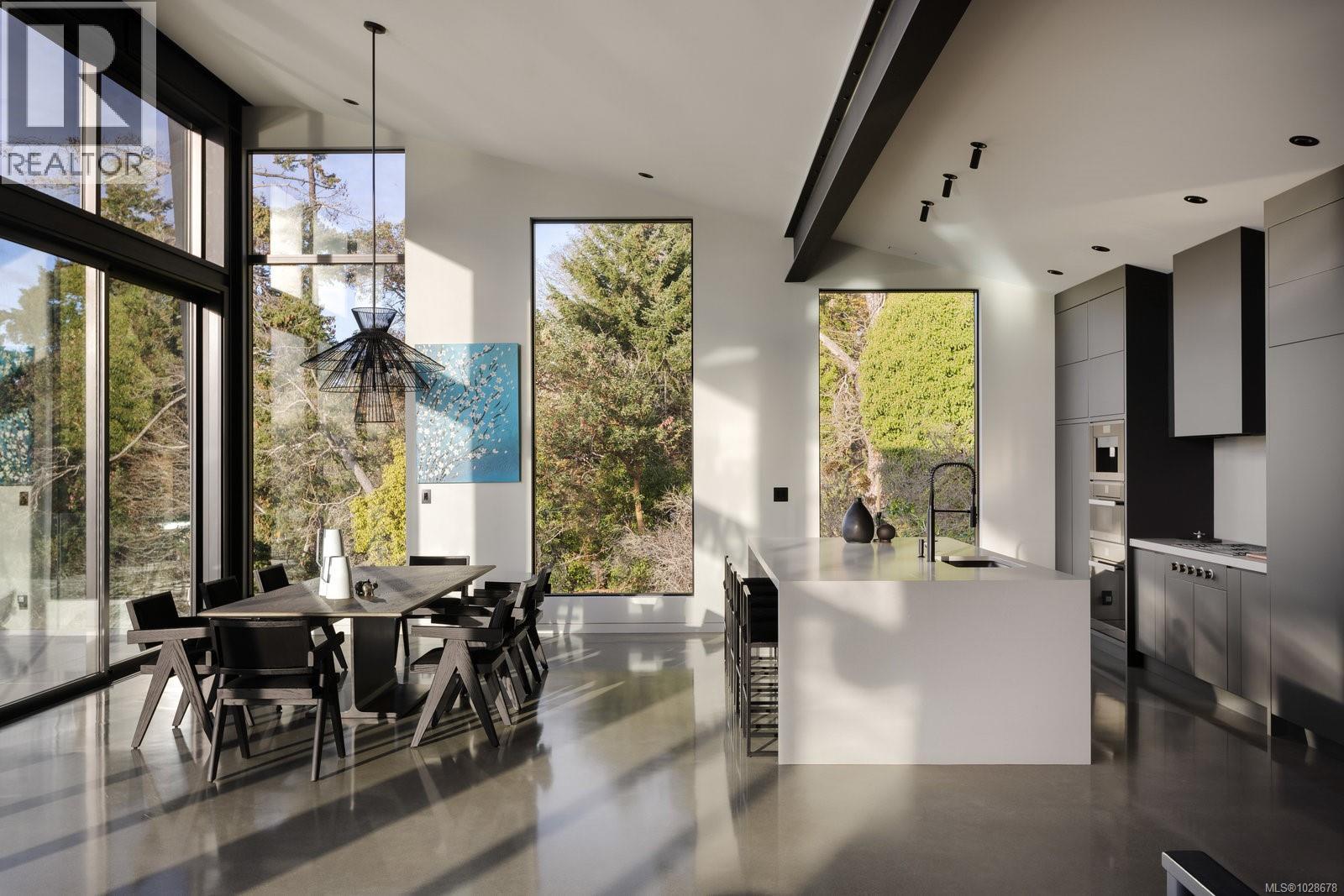Perched on a rare & private 0.6-acre ocean-view estate in prestigious Ten Mile Point, 2701 Sea View is a striking modern residence by Horizon Pacific, designed to capture breathtaking coastal panoramas. Completed in 2021, the home combines modern architecture w/ exceptional craftsmanship and modern luxury. Equipped w/ an integrated smart home system, allowing remote control of entry, lighting, blinds, and appliances. The main level opens into an expansive living room, elegant dining area, and chef-inspired kitchen, perfectly positioned to frame sweeping ocean views & fill the home with natural light. Floor-to-ceiling glazing enhances the connection between the interior spaces & the surrounding landscape, creating a seamless indoor-outdoor living experience. A private office provides a quiet space for work or study. A dramatic custom steel staircase leads to the lower level, where the primary suite offers a serene escape. This level also features 3 additional bedrooms, each with an ensuite, a central family lounge ideal for gatherings, and a world-class theatre room perfect for movie nights. The home also offers potential for an elevator, providing flexibility for multigenerational living and long-term accessibility. Downstairs, a private studio with a full ensuite, separate address (2701B), and gas & plumbing in place for a kitchen offers flexibility for a guest suite, office, gym, creative studio or rental space. Outdoors, the expansive terrace provides an exceptional setting for entertaining while enjoying ocean vistas. The side garden offers ample space to create a private resort-style retreat, with room for a pool, outdoor kitchen or lounge area. A pathway leading to the shoreline offers access for kayaks, perfect for the West Coast lifestyle. Surrounded by coastal trails & just minutes from Cadboro Bay Village & Gyro Beach, this remarkable Ten Mile Point estate blends privacy, architecture & coastal beauty in one of Victoria's most coveted seaside communities. (id:2469)