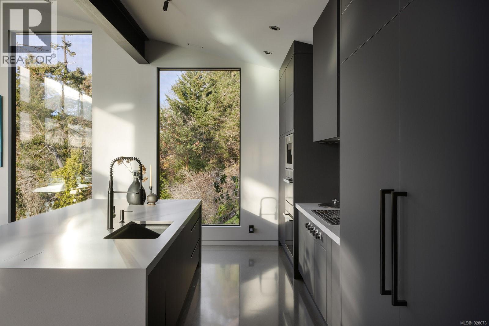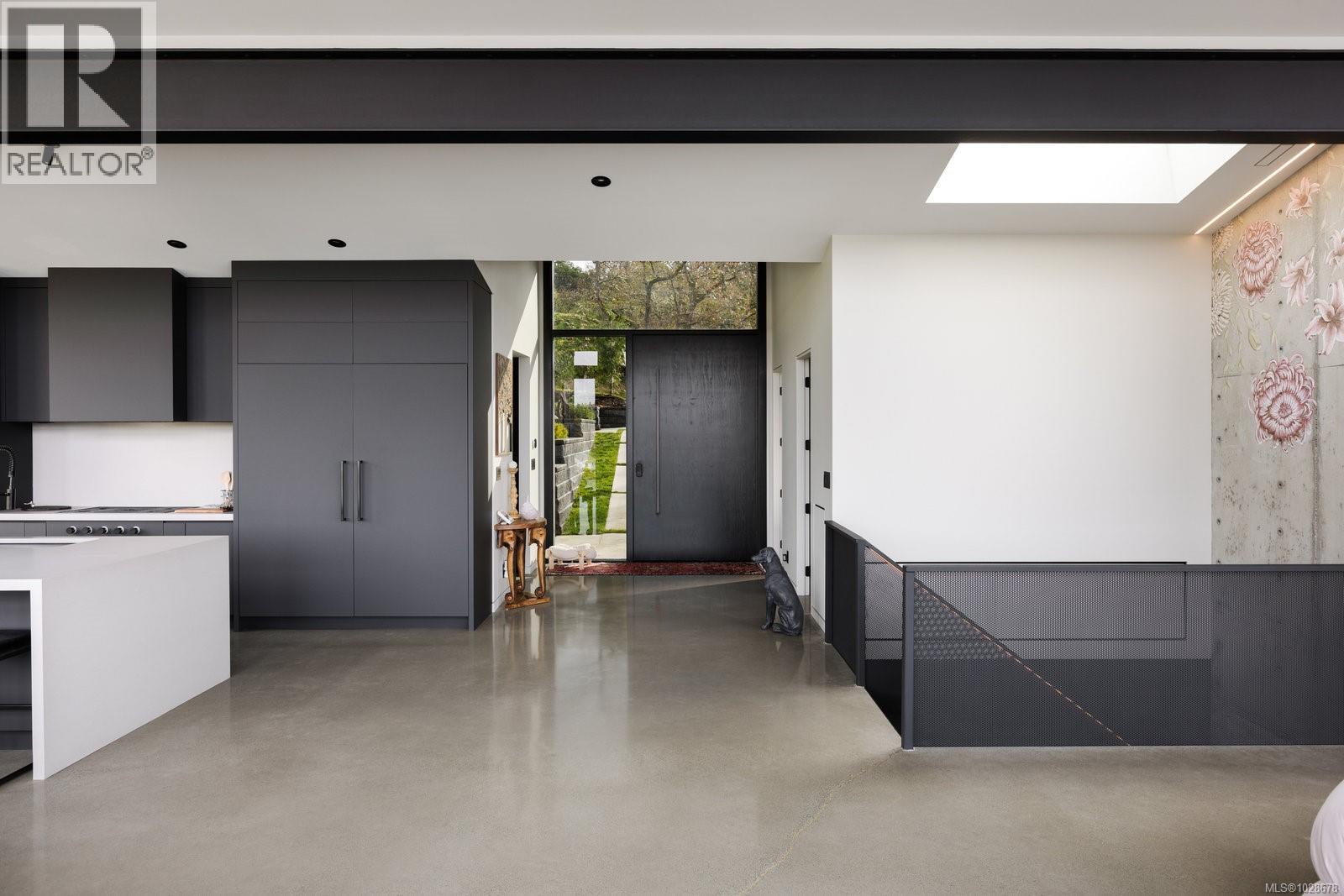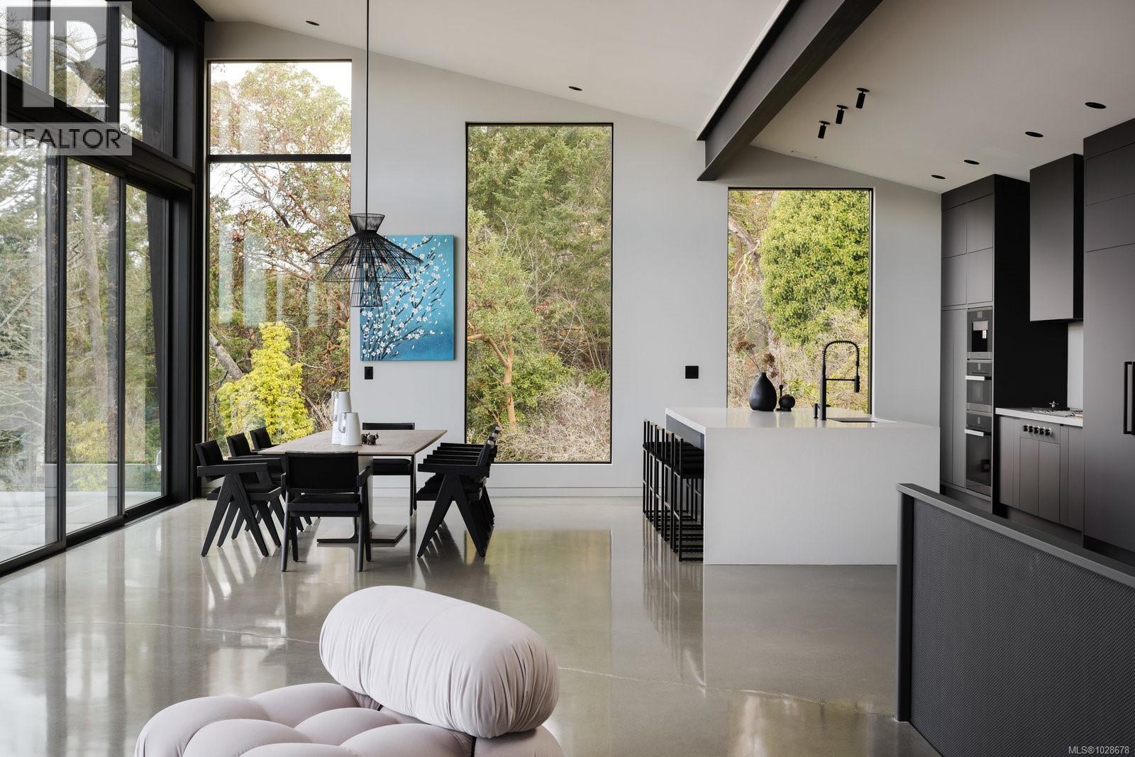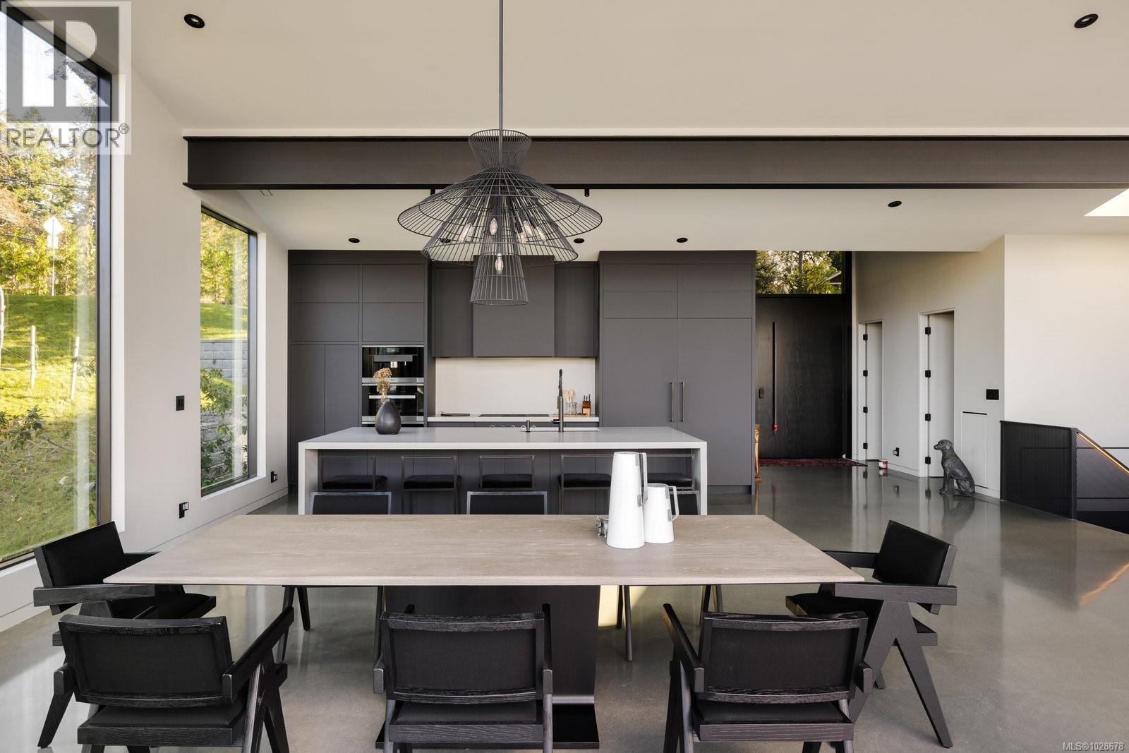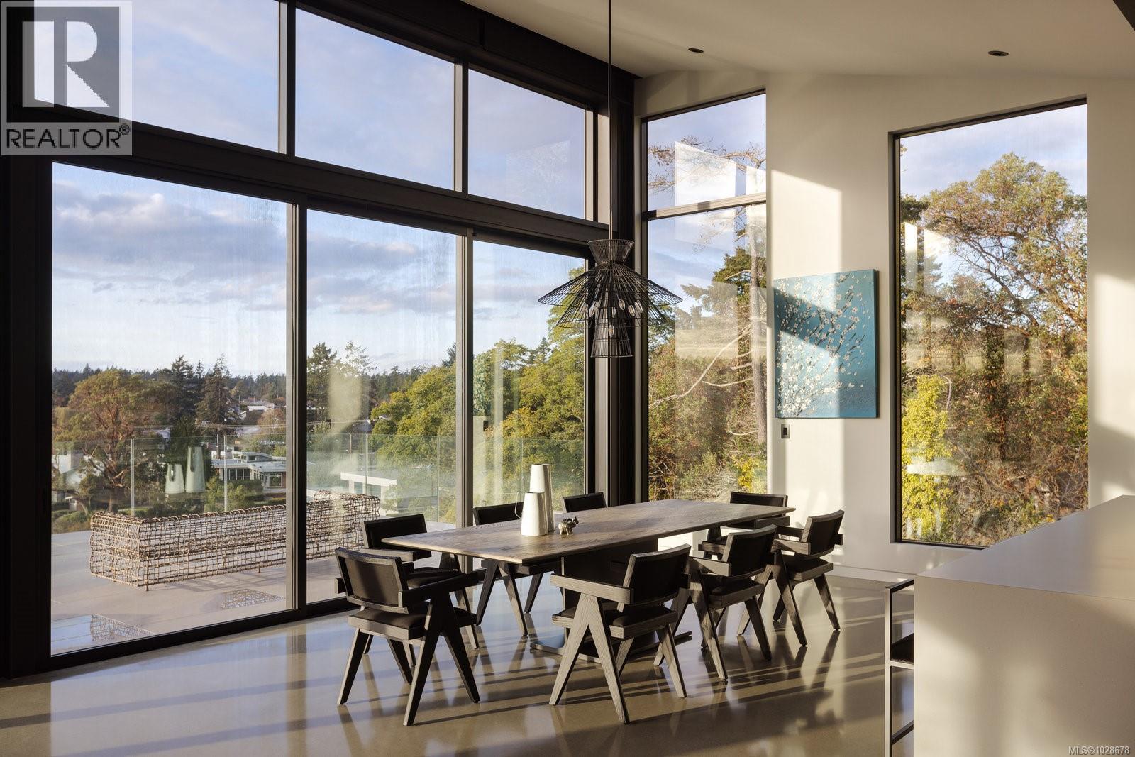 Perched on a rare & private 0.6-acre ocean-view estate in prestigious Ten Mile Point, 2701 Sea View is a striking modern residence by Horizon Pacific, designed to capture breathtaking coastal panoramas. Completed in 2021, the home combines modern architecture w/ exceptional craftsmanship and modern luxury. Equipped w/ an integrated smart home system, allowing remote control of entry, lighting, blinds, and appliances. The main level opens into an expansive living room, elegant dining area, and chef-inspired kitchen, perfectly positioned to frame sweeping ocean views & fill the home with natural light. Floor-to-ceiling glazing enhances the connection between the interior spaces & the surrounding landscape, creating a seamless indoor-outdoor living experience. A private office provides a quiet space for work or study. A dramatic custom steel staircase leads to the lower level, where the primary suite offers a serene escape. This level also features 3 additional bedrooms, each with an ensuite, a central family lounge ideal for gatherings, and a world-class theatre room perfect for movie nights. The home also offers potential for an elevator, providing flexibility for multigenerational living and long-term accessibility. Downstairs, a private studio with a full ensuite, separate address (2701B), and gas & plumbing in place for a kitchen offers flexibility for a guest suite, office, gym, creative studio or rental space. Outdoors, the expansive terrace provides an exceptional setting for entertaining while enjoying ocean vistas. The side garden offers ample space to create a private resort-style retreat, with room for a pool, outdoor kitchen or lounge area. A pathway leading to the shoreline offers access for kayaks, perfect for the West Coast lifestyle. Surrounded by coastal trails & just minutes from Cadboro Bay Village & Gyro Beach, this remarkable Ten Mile Point estate blends privacy, architecture & coastal beauty in one of Victoria's most coveted seaside communities. (id:2469)