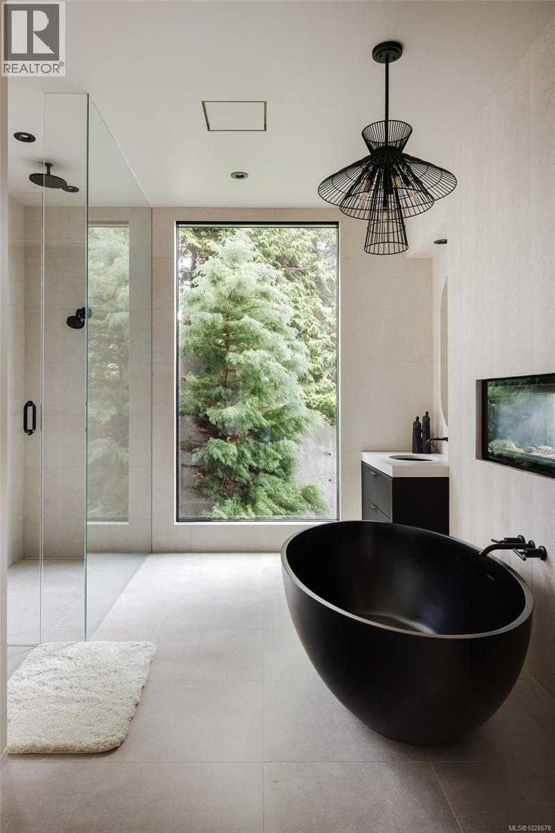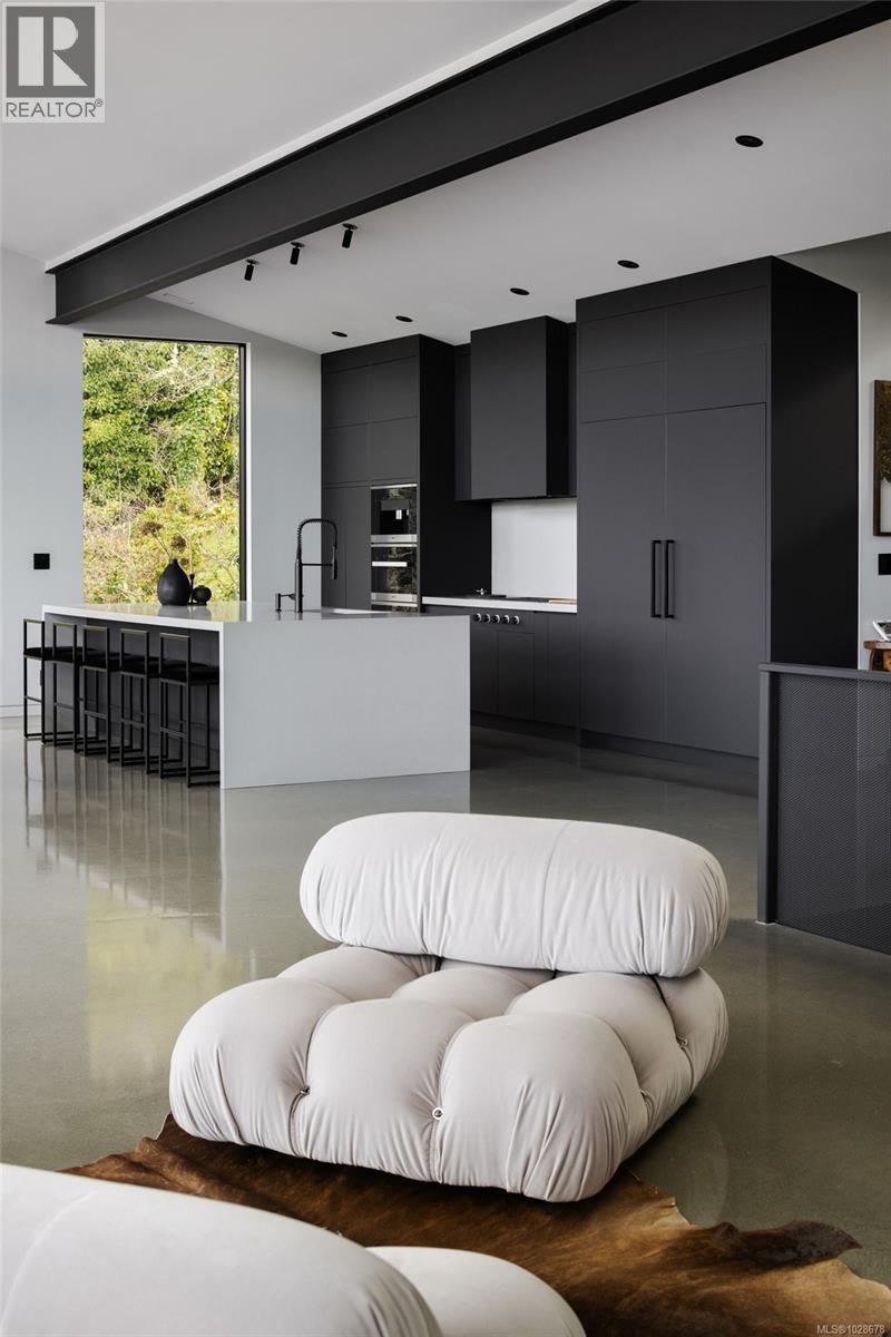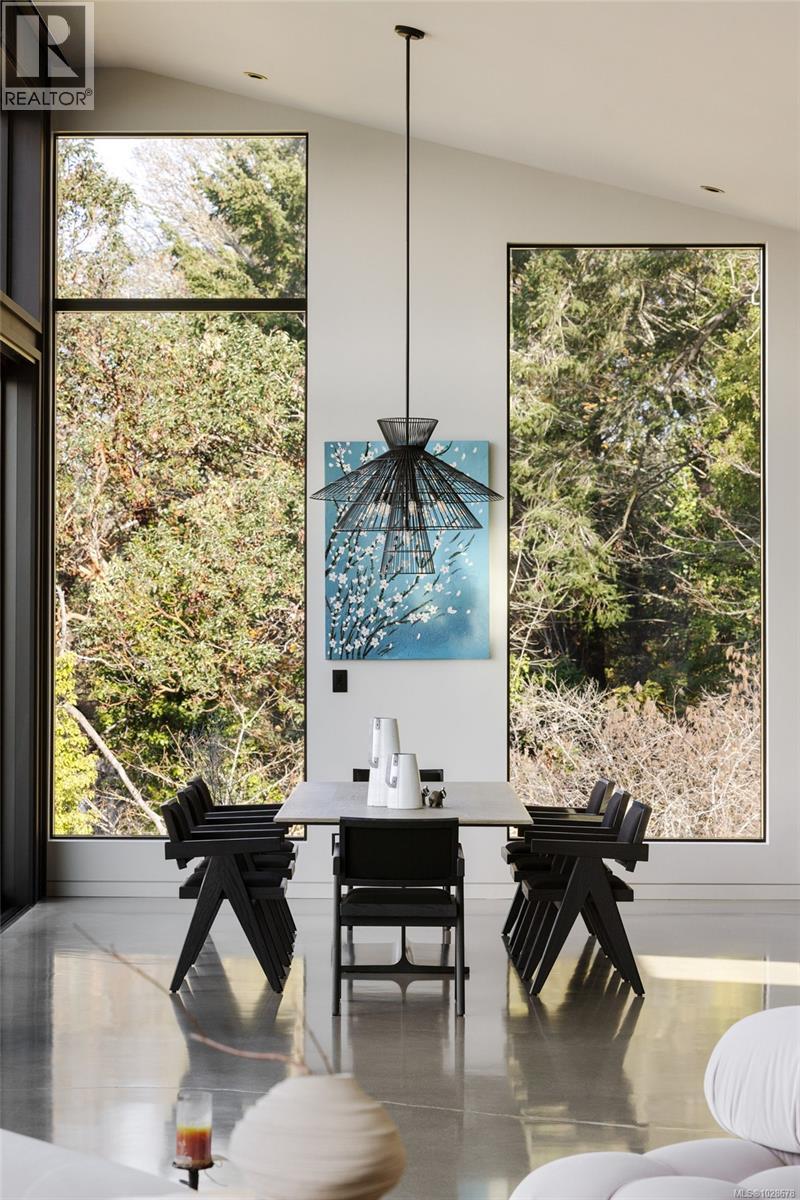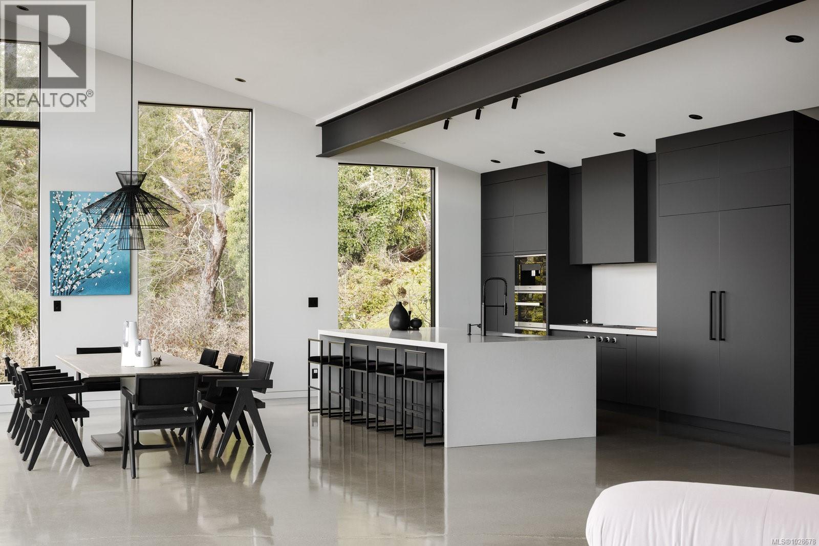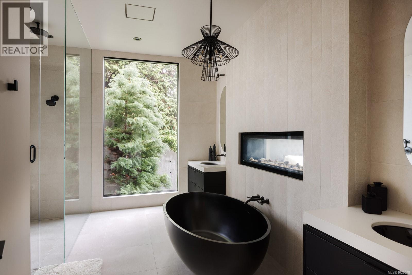 Perched on a rare & private 0.6-acre ocean-view estate in prestigious Ten Mile Point, 2701 Sea View is a striking modern residence by Horizon Pacific, designed to capture breathtaking coastal panoramas. Completed in 2021, the home combines modern architecture w/ exceptional craftsmanship and modern luxury. Equipped w/ an integrated smart home system, allowing remote control of entry, lighting, blinds, and appliances. The main level opens into an expansive living room, elegant dining area, and chef-inspired kitchen, perfectly positioned to frame sweeping ocean views & fill the home with natural light. Floor-to-ceiling glazing enhances the connection between the interior spaces & the surrounding landscape, creating a seamless indoor-outdoor living experience. A private office provides a quiet space for work or study. A dramatic custom steel staircase leads to the lower level, where the primary suite offers a serene escape. This level also features 3 additional bedrooms, each with an ensuite, a central family lounge ideal for gatherings, and a world-class theatre room perfect for movie nights. The home also offers potential for an elevator, providing flexibility for multigenerational living and long-term accessibility. Downstairs, a private studio with a full ensuite, separate address (2701B), and gas & plumbing in place for a kitchen offers flexibility for a guest suite, office, gym, creative studio or rental space. Outdoors, the expansive terrace provides an exceptional setting for entertaining while enjoying ocean vistas. The side garden offers ample space to create a private resort-style retreat, with room for a pool, outdoor kitchen or lounge area. A pathway leading to the shoreline offers access for kayaks, perfect for the West Coast lifestyle. Surrounded by coastal trails & just minutes from Cadboro Bay Village & Gyro Beach, this remarkable Ten Mile Point estate blends privacy, architecture & coastal beauty in one of Victoria's most coveted seaside communities. (id:2469)