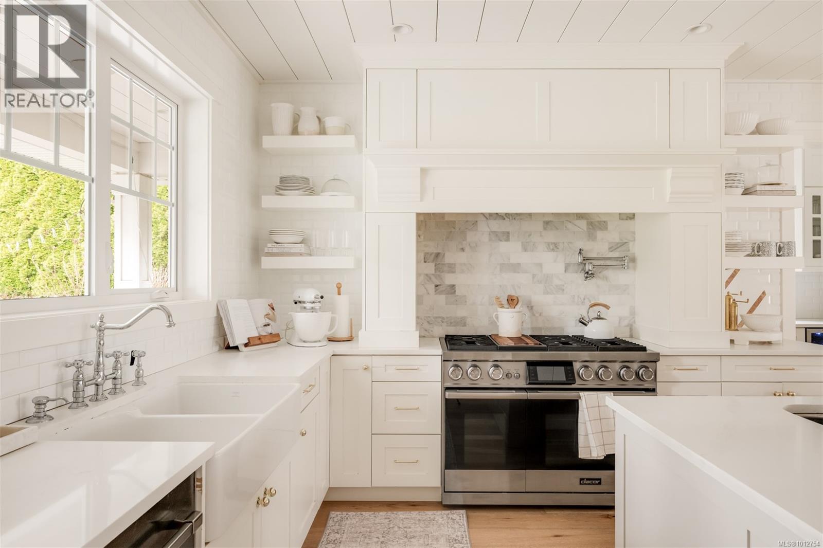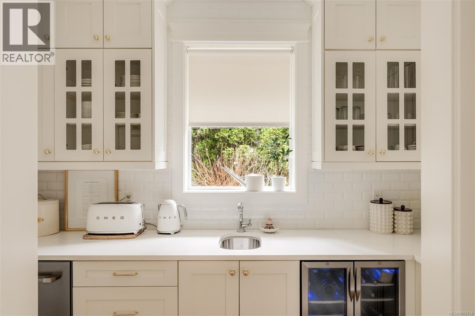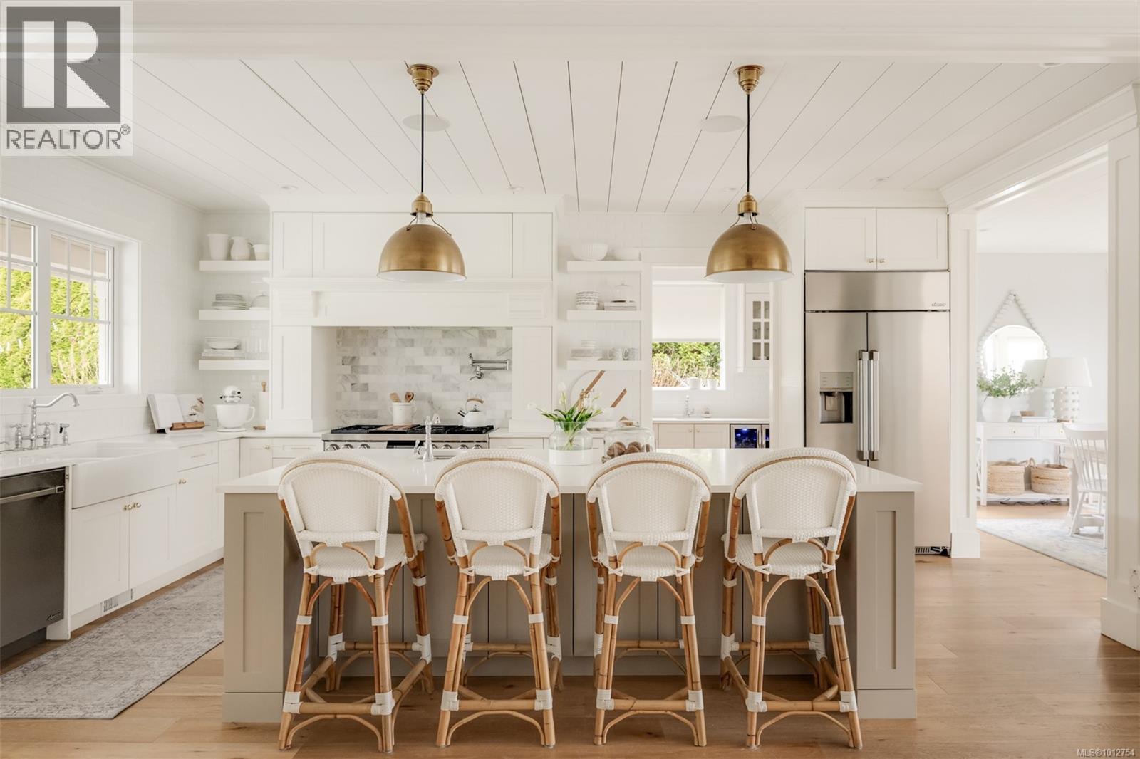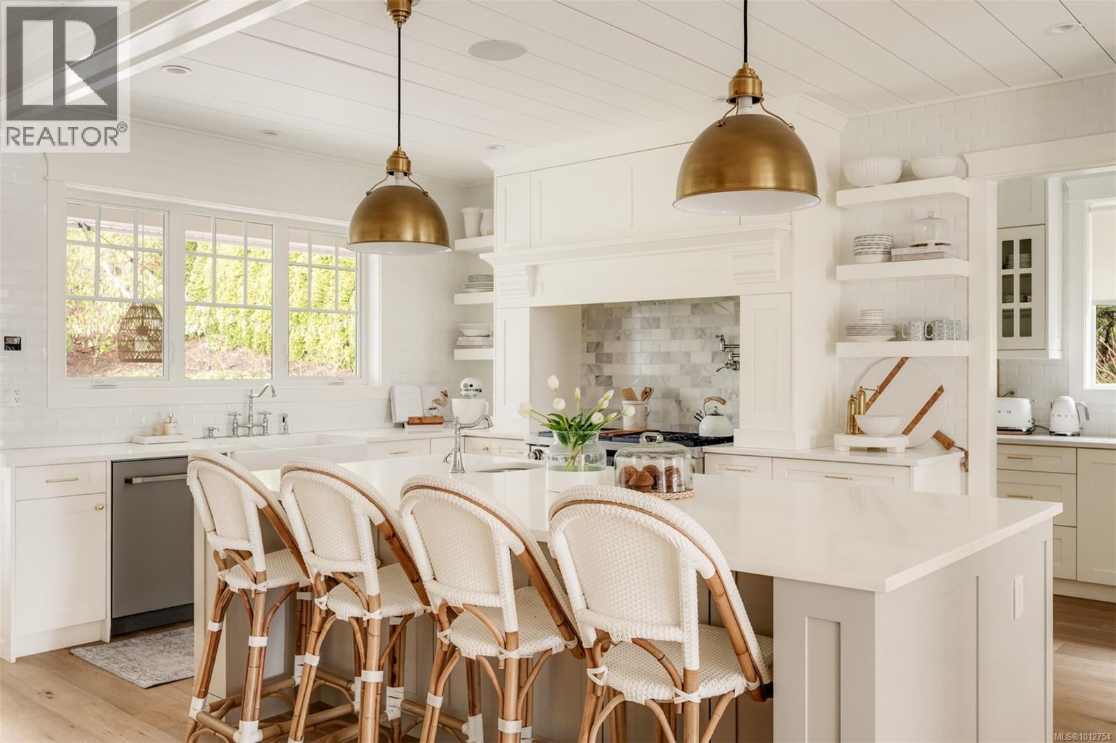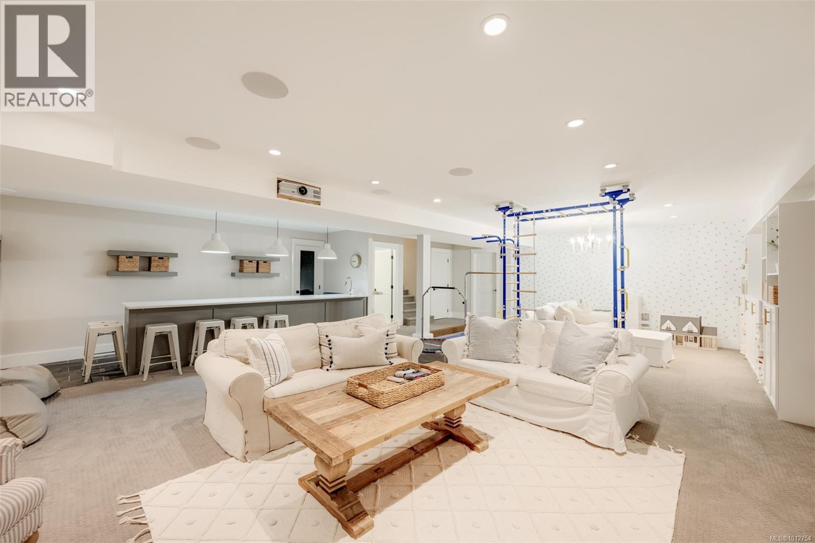 Nestled on a quiet cul-de-sac, this stunning coastal family home is surrounded by an abundance of green space. Steps away from a network of hiking trails and breathtaking viewpoints. Thoughtfully designed and styled by the owners of Nest and Nook Housewares and Design, every detail has been carefully thought out. This home features 4 spacious bedrooms and 5 bathrooms. On the top floor you will find the Primary bedroom with a stunning 4 piece en-suite, spacious walk in closet, and beautiful views of the sunrise, Sidney Spit, and Mount Baker. The other upper two bedrooms each have their own full bathrooms, and to complete the top floor the fully appointed upstairs laundry area makes family life easier. The functional floor plan allows for a growing family with an additional private bedroom and its own bathroom, perfect for in-laws, guests, or a nanny. On the main floor, the magazine worthy chef's kitchen is equipped with a Dacor double oven, 2 dishwashers, a large butler pantry, and leads out to a large covered back patio with outdoor kitchen. This is the perfect home for hosting large gatherings or intimate family dinners. The dining and great room are also spacious with large windows, taking in the view of the ocean and mountains. The basement area is fully finished with a play area, theatre area, bar area, and workout room. The garden area is beautifully landscaped with mature plants and full of sunshine. The backyard is practically maintenance free with mostly synthetic lawn and partial playground that can easily be converted to a full synlawn. The back yard provides a great play area as well as an entertainment area and is fully fenced for Fido. This spectacular home backs onto lush green space offering additional privacy and a playground for both children and adults. All this in a dream location, near Dean Park, Coles Bay Park, beaches, and near schools and rec centre. Certainly one of the finest homes offered in this area. (id:2469)