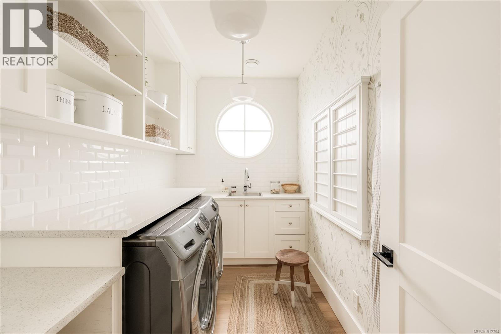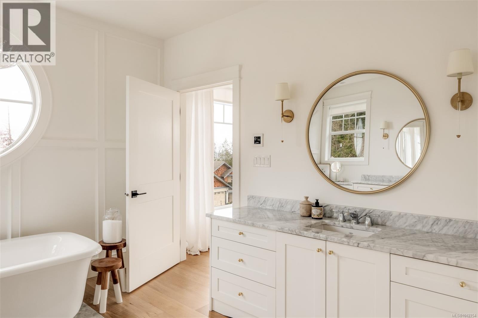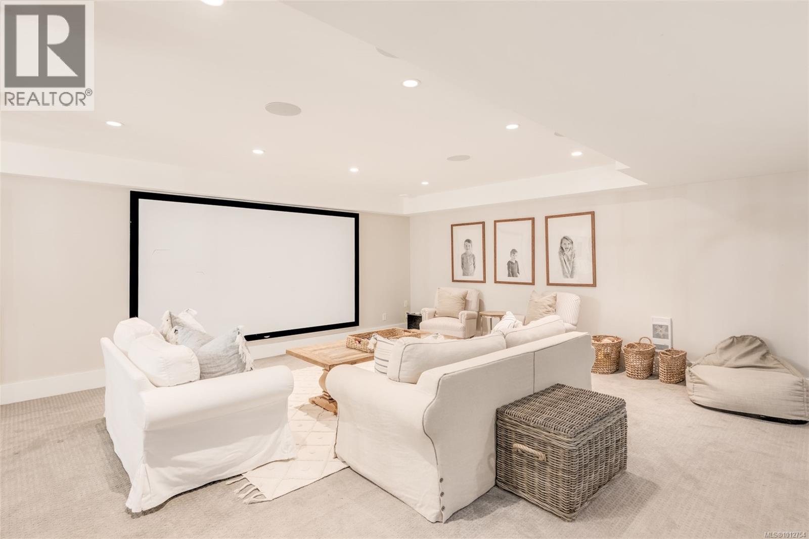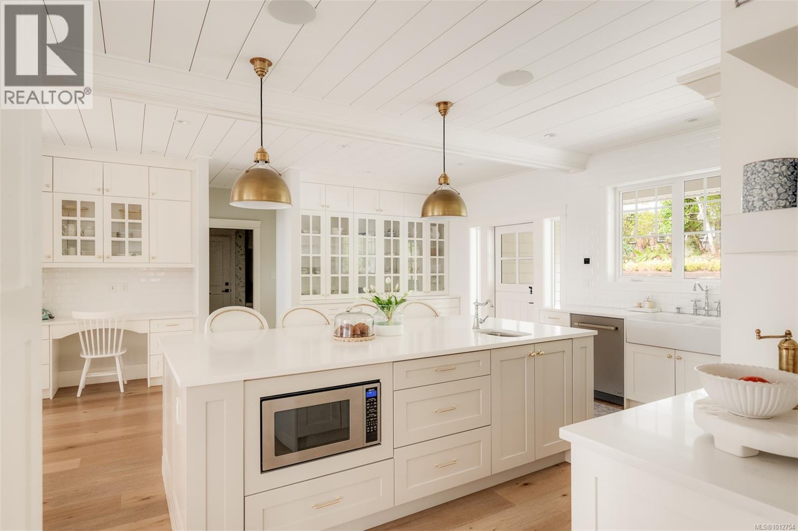 Nestled on a quiet cul-de-sac, this stunning coastal family home is surrounded by an abundance of green space. Steps away from a network of hiking trails and breathtaking viewpoints. Thoughtfully designed and styled by the owners of Nest and Nook Housewares and Design, every detail has been carefully thought out. This home features 4 spacious bedrooms and 5 bathrooms. On the top floor you will find the Primary bedroom with a stunning 4 piece en-suite, spacious walk in closet, and beautiful views of the sunrise, Sidney Spit, and Mount Baker. The other upper two bedrooms each have their own full bathrooms, and to complete the top floor the fully appointed upstairs laundry area makes family life easier. The functional floor plan allows for a growing family with an additional private bedroom and its own bathroom, perfect for in-laws, guests, or a nanny. On the main floor, the magazine worthy chef's kitchen is equipped with a Dacor double oven, 2 dishwashers, a large butler pantry, and leads out to a large covered back patio with outdoor kitchen. This is the perfect home for hosting large gatherings or intimate family dinners. The dining and great room are also spacious with large windows, taking in the view of the ocean and mountains. The basement area is fully finished with a play area, theatre area, bar area, and workout room. The garden area is beautifully landscaped with mature plants and full of sunshine. The backyard is practically maintenance free with mostly synthetic lawn and partial playground that can easily be converted to a full synlawn. The back yard provides a great play area as well as an entertainment area and is fully fenced for Fido. This spectacular home backs onto lush green space offering additional privacy and a playground for both children and adults. All this in a dream location, near Dean Park, Coles Bay Park, beaches, and near schools and rec centre. Certainly one of the finest homes offered in this area. (id:2469)
