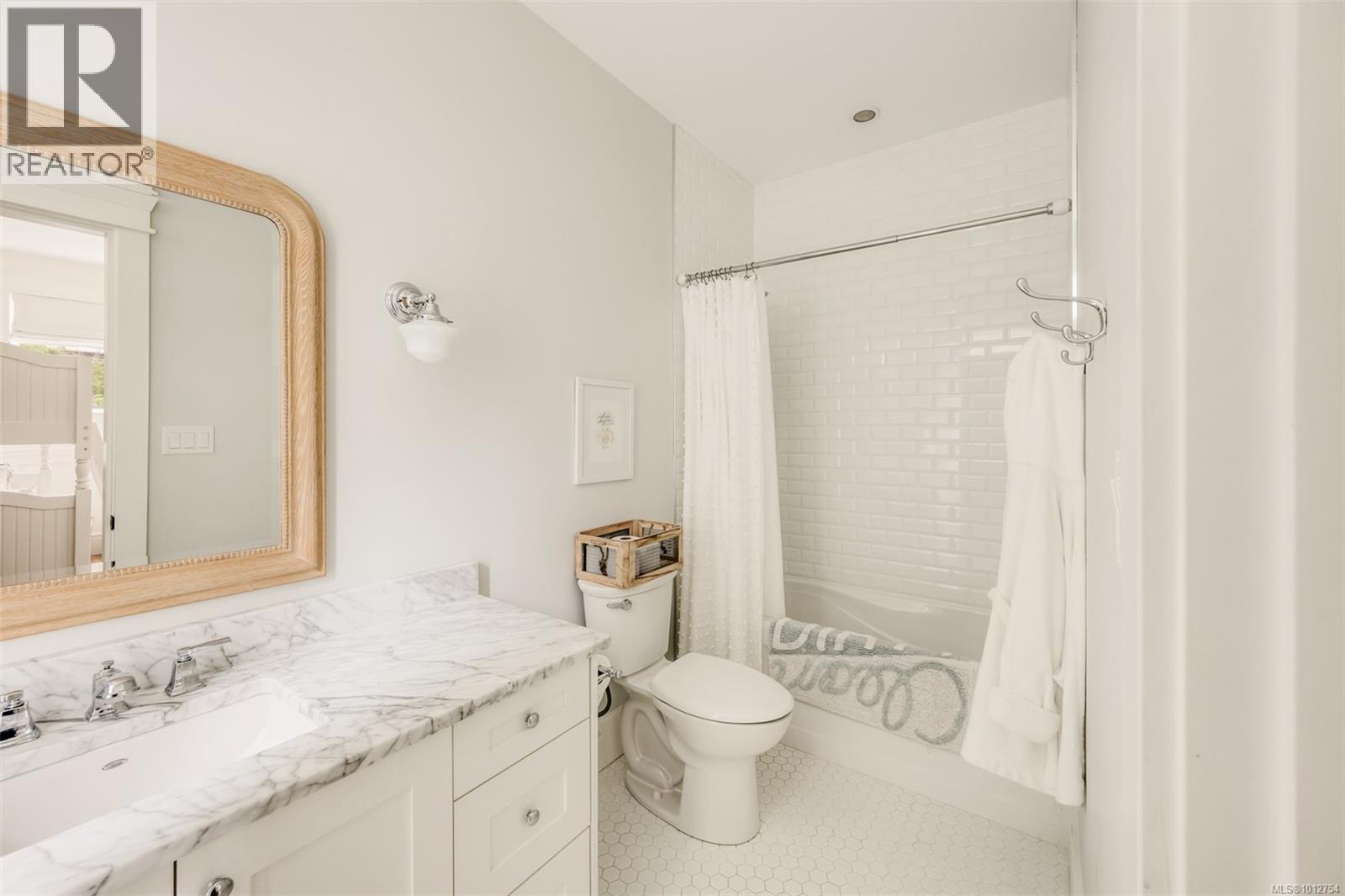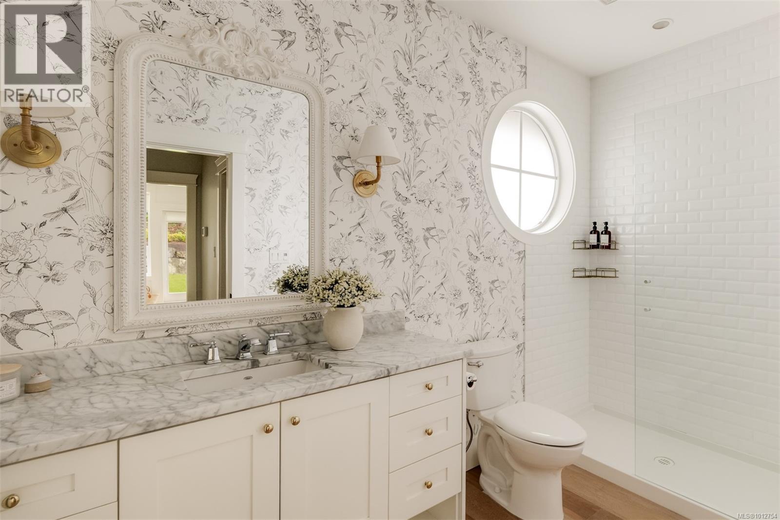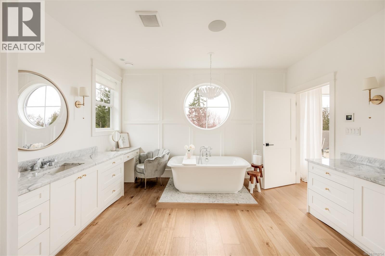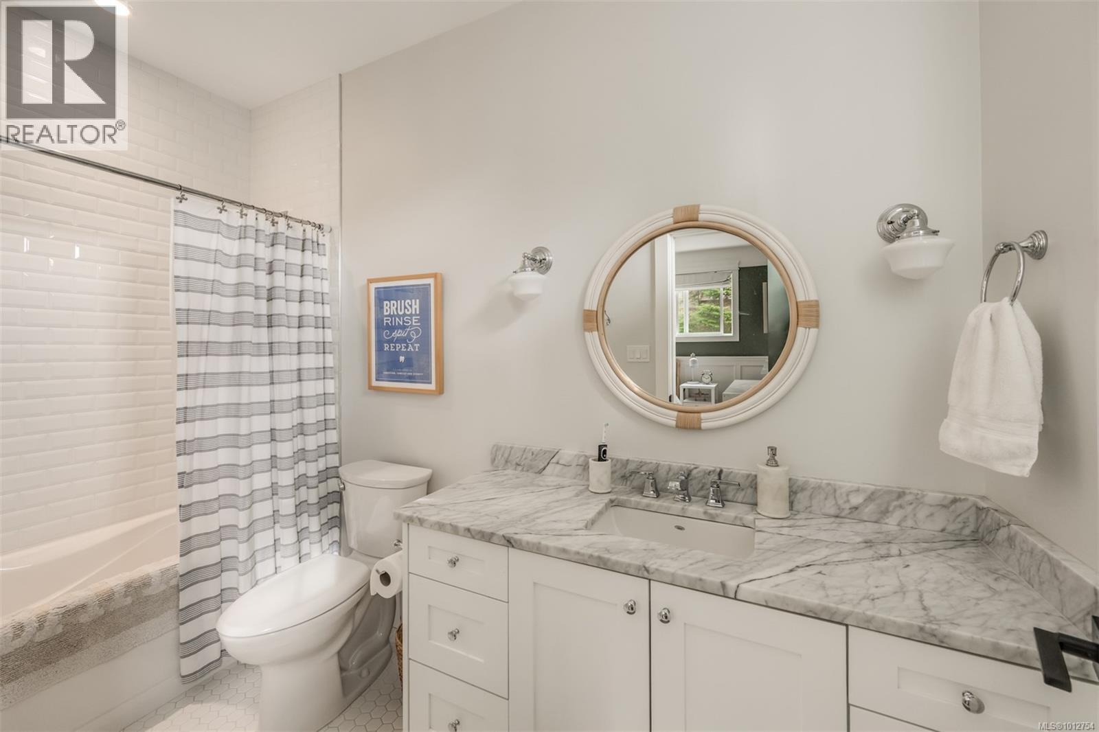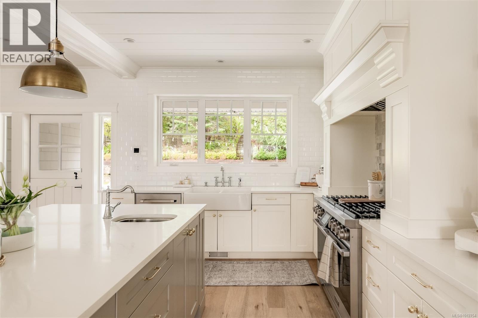 Nestled on a quiet cul-de-sac, this stunning coastal family home is surrounded by an abundance of green space. Steps away from a network of hiking trails and breathtaking viewpoints. Thoughtfully designed and styled by the owners of Nest and Nook Housewares and Design, every detail has been carefully thought out. This home features 4 spacious bedrooms and 5 bathrooms. On the top floor you will find the Primary bedroom with a stunning 4 piece en-suite, spacious walk in closet, and beautiful views of the sunrise, Sidney Spit, and Mount Baker. The other upper two bedrooms each have their own full bathrooms, and to complete the top floor the fully appointed upstairs laundry area makes family life easier. The functional floor plan allows for a growing family with an additional private bedroom and its own bathroom, perfect for in-laws, guests, or a nanny. On the main floor, the magazine worthy chef's kitchen is equipped with a Dacor double oven, 2 dishwashers, a large butler pantry, and leads out to a large covered back patio with outdoor kitchen. This is the perfect home for hosting large gatherings or intimate family dinners. The dining and great room are also spacious with large windows, taking in the view of the ocean and mountains. The basement area is fully finished with a play area, theatre area, bar area, and workout room. The garden area is beautifully landscaped with mature plants and full of sunshine. The backyard is practically maintenance free with mostly synthetic lawn and partial playground that can easily be converted to a full synlawn. The back yard provides a great play area as well as an entertainment area and is fully fenced for Fido. This spectacular home backs onto lush green space offering additional privacy and a playground for both children and adults. All this in a dream location, near Dean Park, Coles Bay Park, beaches, and near schools and rec centre. Certainly one of the finest homes offered in this area. (id:2469)